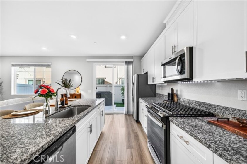 MOVE-IN READY CONDO IN HEIRLOOM FARMS WITH SOLAR! Welcome to this modern 3 bedroom, 2.5 bathroom condominium located in the highly desirable Heirloom Farms community of Temecula. Offering approximately 1,504 sq ft of living space and a backyard, along with a 2-car attached garage and energy-efficient upgrades throughout. The main living area features a bright, open-concept layout with seamless flow between the kitchen, dining, and living spaces. The kitchen is well-appointed with white cabinetry, granite countertops, EVP flooring, and Whirlpool stainless steel appliances. A convenient half bath and private backyard complete the main level, ideal for everyday living and entertaining. Upstairs, the home offers three spacious bedrooms, including a primary suite with ample closet space and an en-suite bathroom. Additional features include retractable blinds throughout, a tankless water heater, and smart home technology, including a SafeStreet security system, plus keypad entry with remote access. Residents of Heirloom Farms enjoy resort-style amenities including pools, parks, BBQ areas, playgrounds, and greenbelts. HOA covers structural insurance and exterior maintenance, including roof, paint, and front landscaping. Conveniently located near I-15 and I-215, shopping, dining, Old Town Temecula, and Temecula Wine Country, and within the Temecula Valley Unified School District.