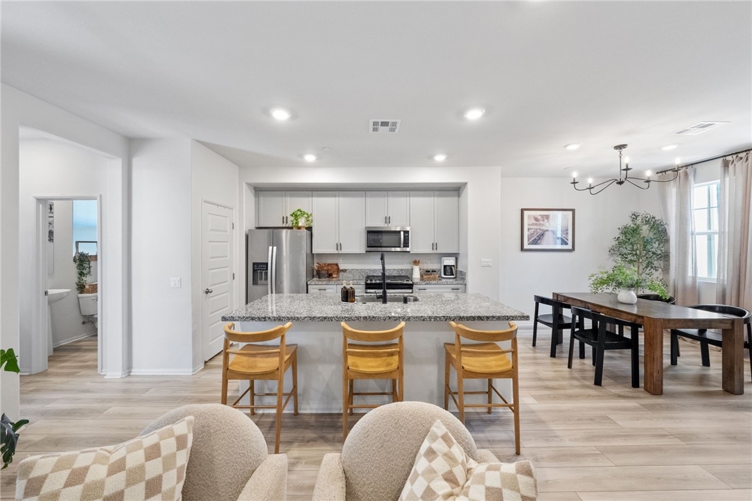 Welcome to 40545 Melrose Drive, a gorgeous 3-story townhome in the desirable Heirloom Farms community, ideally located in the heart of Temecula near Lake Harveston. Lowest priced home in this brand new community, purchase confidently with instant equity! This stunning Sultana Plan 1 offers 2 bedrooms, 2.5 bathrooms, and a perfect blend of style, comfort, and convenience. Built in 2023, this home feels like new - but better - featuring a beautifully landscaped front porch, custom lighting, upgraded window coverings, and fully owned solar panels for maximum energy efficiency. As you enter, you'll find a welcoming foyer with easy access to the garage. Head upstairs to the bright and spacious open-concept living area, designed to maximize natural light. The kitchen is equipped with modern appliances and sleek finishes, making it perfect for both everyday living and entertaining. Plus, the home comes complete with a washer, dryer, and refrigerator, so you can move in with ease. Upstairs, you'll discover two generously sized bedrooms, each with its own en-suite bathroom, offering ultimate privacy and comfort. The spacious primary suite features a walk-in closet and a luxurious bath with dual vanities. Additional highlights include an in-unit laundry area, a private balcony ideal for morning coffee or evening relaxation, and an attached 2-car garage for extra convenience. This home is equipped with top-tier energy-saving features, including spray foam insulation, an advanced thermostat, LED lighting, insulated garage doors, water-efficient faucets, flow-smart showerheads, and a tankless water heater. The fully owned solar panels are a huge plus, providing you with savings on electricity bills while helping to reduce your carbon footprint. Heirloom Farms offers a wealth of amenities, such as a pool, spa, BBQ area, picnic spaces, and multiple parks - plus a fun zipline! Situated just minutes from Temecula’s renowned wineries, the Promenade Temecula Mall, Old Town shops, and top-rated schools in the Temecula Unified School District, this townhome offers a lifestyle of convenience and excitement. With easy access to the I-15 freeway, commuting is a breeze. Whether you're a first-time buyer, downsizing, or an investor, this is an opportunity you won’t want to miss in one of Southern California’s most desirable locations!