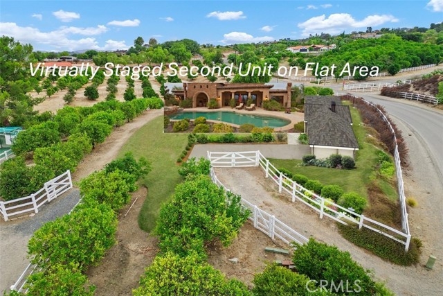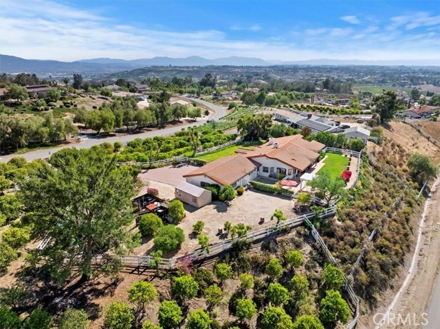 OPEN HOUSE SUNDAY 11/2/25 FROM 1:00-3:00 ***Build a second unit fully private from the main house with its own street access on this all-usable, flat view property in the heart of Temecula’s prestigious GlenOak Hills community!*** Welcome to this stunning single-story estate, freshly painted and beautifully maintained, offering panoramic 360-degree views of Wine Country, the mountains, breathtaking sunsets, and twinkling city lights. Perfectly positioned on a prime corner lot, this gated and fully fenced 2.21-acre property combines luxury, privacy, and flexibility. Inside, you’ll find a bright, open floor plan designed for both elegant entertaining and comfortable living. The home features a formal dining room, a spacious living room with a fireplace, and a dramatic family room with a floor-to-ceiling brick fireplace and a custom wet bar. Every room offers sweeping views and the sight of hot-air balloons drifting above the vineyards in the morning. Kitchen showcases hand-finished oak cabinetry, granite countertops, stainless steel appliances (including a brand-new refrigerator), a wine cooler, a large dining nook, and a walk-in pantry. Hickory hardwood flooring adds warmth and sophistication throughout the main living areas. The primary suite is a private retreat with French doors opening to the patio and Wine Country views. The spa-style bathroom features a soaking tub, travertine finishes, and a generous walk-in closet. Secondary bathrooms are equally luxurious, featuring travertine tile, designer glass enclosures, and granite countertops. Outside, the possibilities are endless. The flat, fully usable land is ideal for a second dwelling or an ADU, pool, vineyard, and horses. Multiple gated access points and RV hookups with 50-amp power provide exceptional flexibility. The oversized 3-car garage, which has one finished bay with vinyl flooring, cabinetry, and A/C, is perfect for a home gym or office and can be easily converted to a Junior Dwelling Unit with its own entrance. Enjoy mature fruit trees, low HOA fees, and a low property tax area. GlenOak Hills offers residents two tennis courts, a clubhouse, horse arena, and children’s playground. Minutes from Temecula’s finest wineries along the De Portola Wine Trail, including Leoness, Altisima, Fazeli, and Renzoni. A rare combination of views, usability, and luxury. This property must be seen to be truly appreciated.