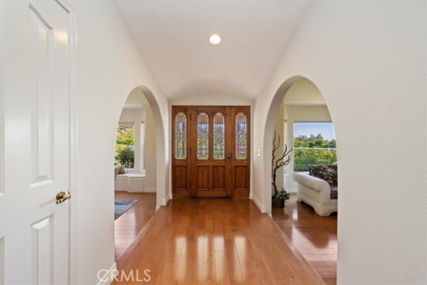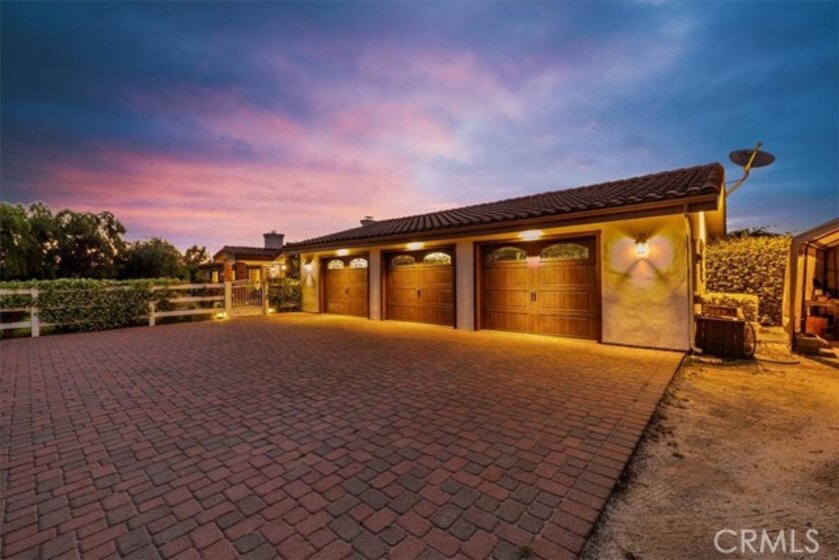 Gorgeous single-story estate offering panoramic 360-degree views of Temecula Wine Country, mountains, city lights, hot air balloons, and breathtaking sunsets. Located in the prestigious community of GlenOak Hills. Perfectly positioned on a prime corner lot, this gated and fully fenced 2.21-acre property combines luxury, privacy, and flexibility. All flat, usable land makes it ideal for building a second unit (ADU) with its own street access. Inside, you’ll find a bright, open floor plan designed for both elegant entertaining and comfortable living. The home features a formal dining room, a spacious living room with a fireplace, and a dramatic family room with a floor-to-ceiling brick fireplace and a custom wet bar. Every room offers sweeping views and the sight of hot-air balloons drifting above the vineyards in the morning. The kitchen showcases hand-finished oak cabinetry, granite countertops, stainless steel appliances including a new refrigerator, a wine cooler, large dining nook, and a walk-in pantry. Hickory hardwood flooring adds warmth and sophistication throughout the main living areas. The primary suite is a private retreat with French doors opening to the patio and Wine Country views. The spa-style bathroom features a soaking tub, travertine finishes, and a generous walk-in closet. Secondary bathrooms are equally luxurious, featuring travertine tile, designer glass enclosures, and granite countertops. Freshly painted and beautifully maintained. Outside, the possibilities are endless. The flat, fully usable land is ideal for an ADU, pool, vineyard, and horses. Multiple gated access points and RV hookups with 50-amp power provide exceptional flexibility. The oversized 3-car garage, which has one finished bay with vinyl flooring, cabinetry, and A/C, is perfect for a home gym or office and can be easily converted to a Junior Dwelling Unit with its own entrance. Enjoy mature fruit trees, low HOA fees, and a low property tax area. GlenOak Hills offers two tennis courts, a clubhouse, horse arena, and children’s playground. Minutes from Temecula’s finest wineries along the De Portola Wine Trail, including Leoness, Altisima, Fazeli, and Renzoni. A rare combination of views, usability, and luxury. Must see.