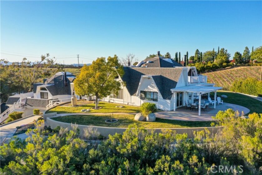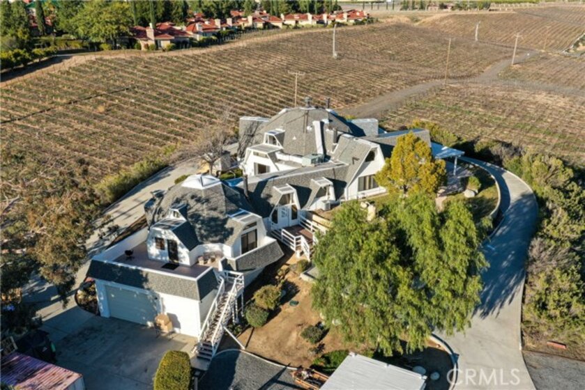 Stunning Architectural Gem Located in the heart of Temecula Wine Country. This Unique Style Property Offers High Ceilings and Multidimensional Walls, Angles and Skylights. Walk to the Award Winning Wineries, Enjoy Beautiful Wine Country Views, Sunrises and Catch a Glimpse of Hot Air Balloons Flying Above. Main Residence Includes Three Bedrooms and Three Bathrooms. Separate Entrance Guest Quarters Include Another Bedroom/Loft, Living Area, Full Bathroom, Small Kitchen and Balcony. Office Area Includes Several Small Offices, Workshops, "Harry Potter Room" for Storage, Large Bedroom and Bathroom. Three Car Garage is Oversized with High Ceilings and Tall Garage Doors. Multiple Storage Sheds on the Property. Current County Land Use is Wine Grape Vineyard. Seller would consider a lease back @ $15,000 per month for one, two or three years.