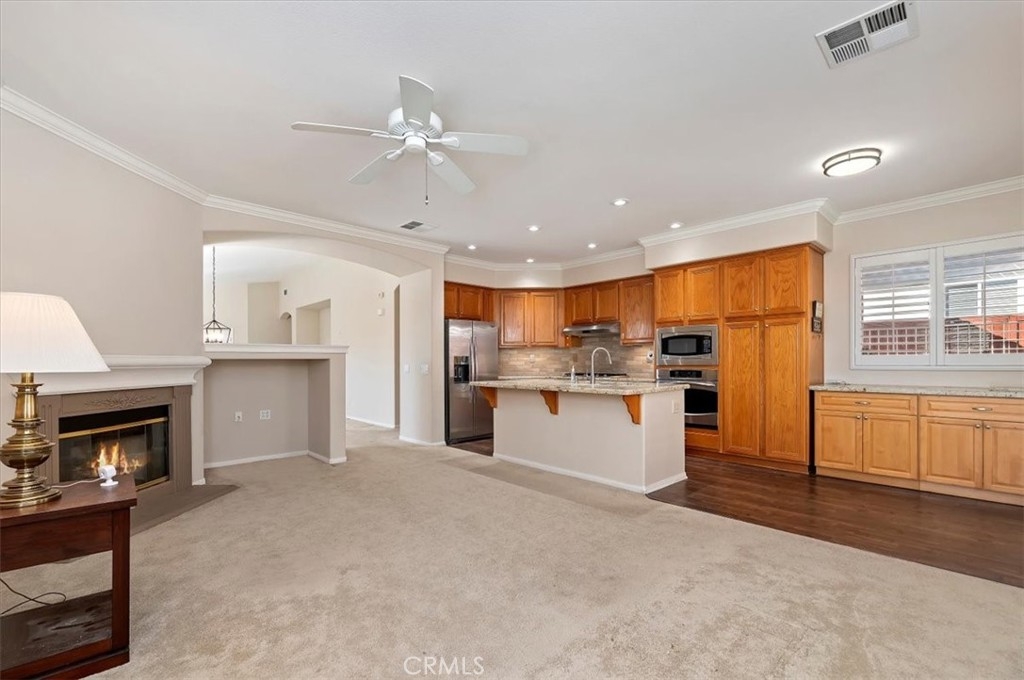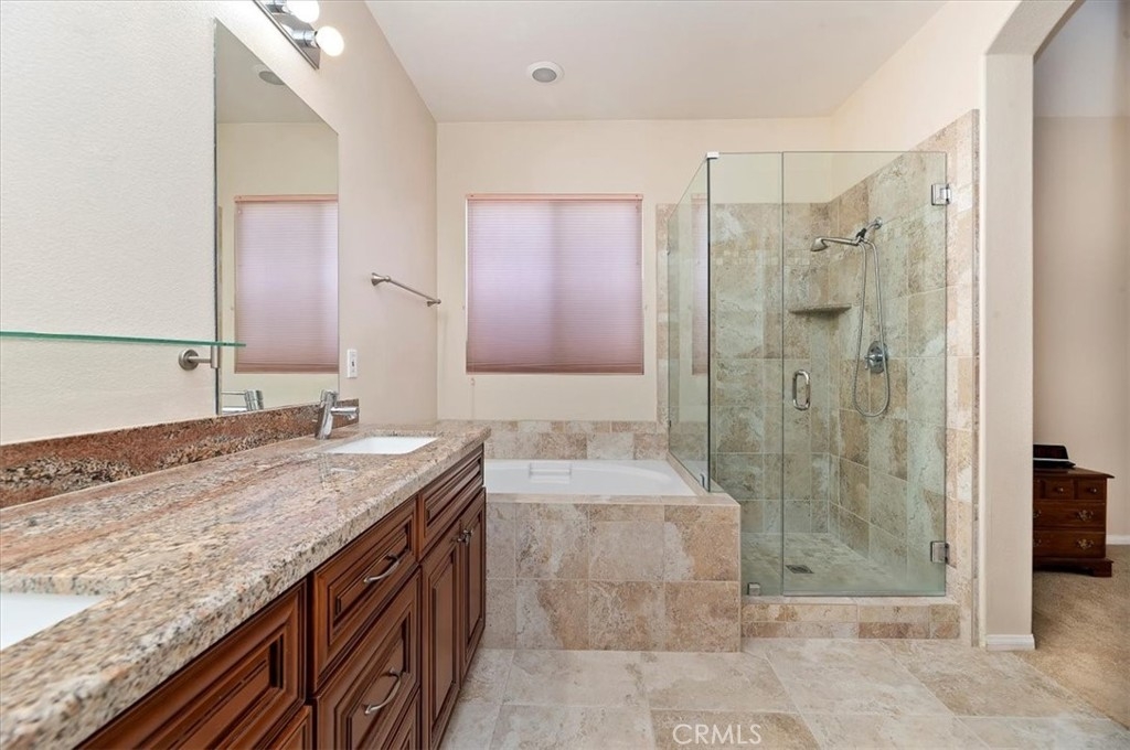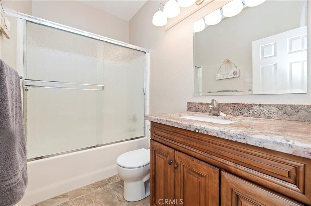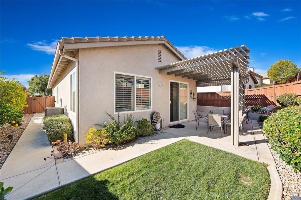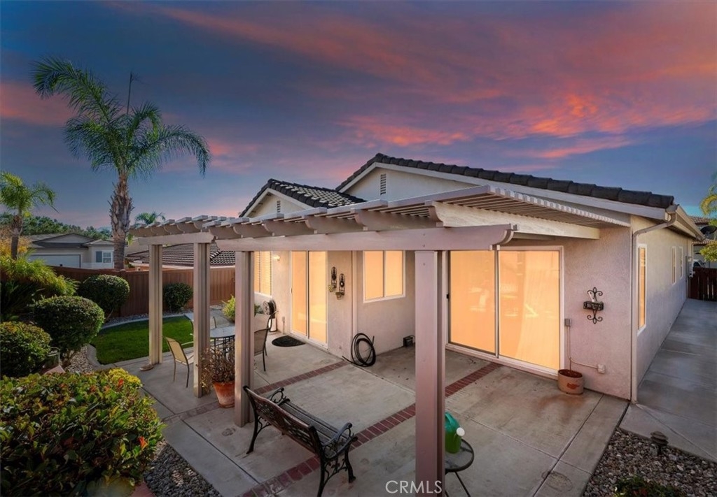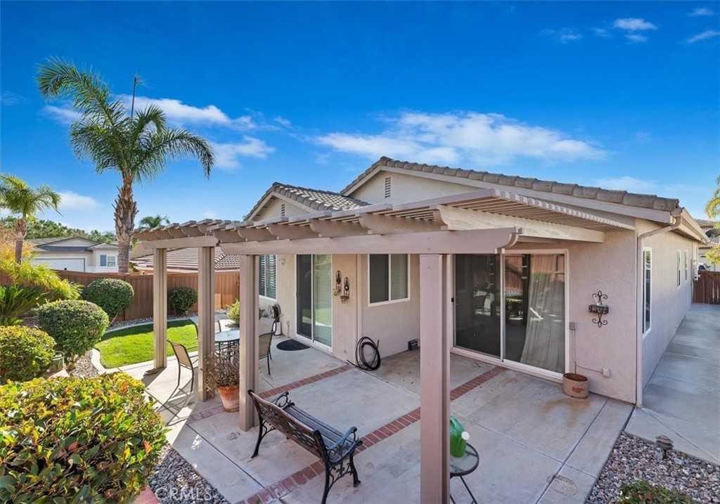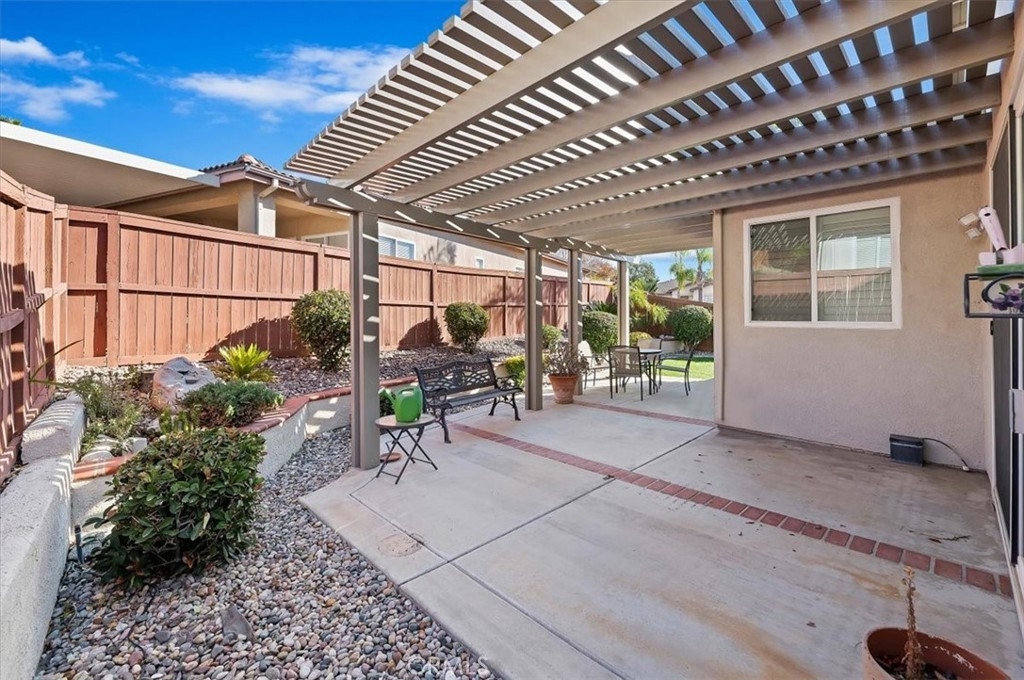Welcome to Temeku Hills! This beautifully maintained single-story home greets you with a charming front porch, perfect for relaxing and with the option to be enclosed for added privacy and enjoyment. The home features paid solar, plantation shutters, and tasteful upgrades throughout, offering a blend of style and efficiency. The open floor plan, free of interior steps, is designed for comfortable living. Upon entering, you'll find a spacious formal dining and TV sitting area, while two bedrooms and an upgraded bathroom are situated toward the front of the home. The primary bedroom and bathroom, located at the back, ensures a private retreat. The upgraded kitchen boasts stylish countertops and an island that opens into the inviting family room with a cozy gas fireplace. The backyard is perfectly sized for low maintenance with orange and lemon trees and includes a patio cover, newer alumawood fencing, an updated HVAC system, and a water filtration system. The garage is equipped with a workbench and cabinets, offering ample storage and functionality. Enjoy low HOA fees, low taxes, and easy living in this fantastic community! The HOA amenities are impressive, featuring a resort-style pool, gym, pickleball, tennis and basketball courts, a game room for cards, pool, and ping-pong, plus scenic park areas.! If you’re a golf enthusiast then check out Legends Golf Club which offers 18 holes and has five lakes. Temeku Hills is ideally located in central Temecula, right off Rancho California Road, providing easy access to shopping, freeways, top-rated schools, and Southern California’s own wine country. Welcome home!
