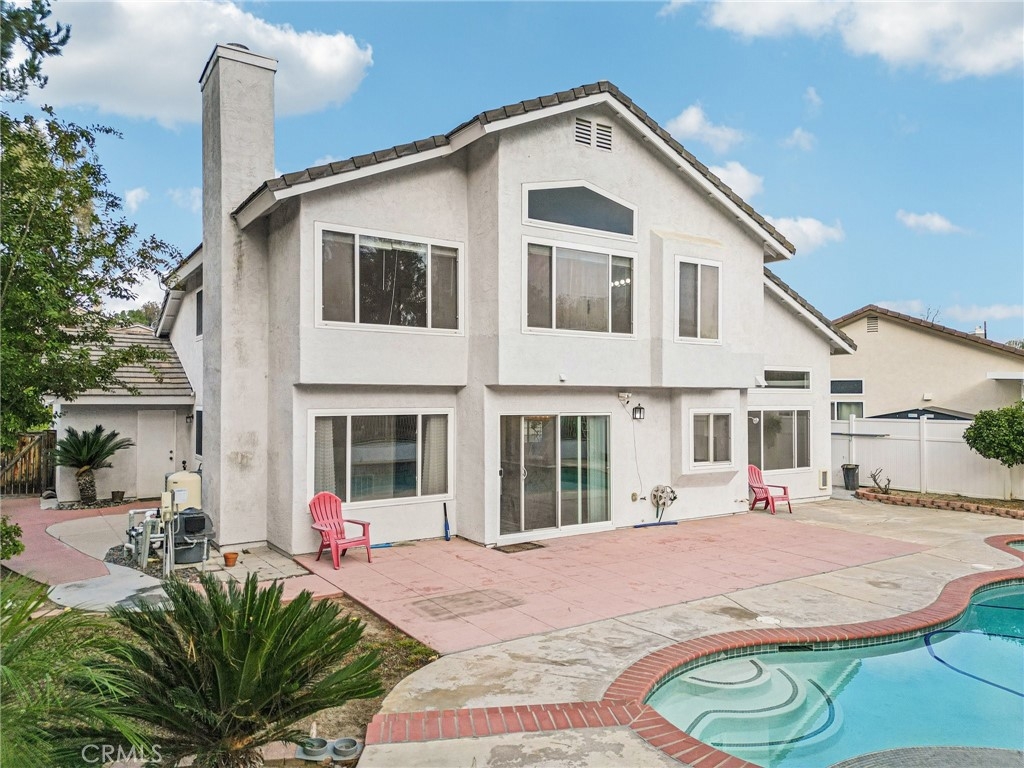 VERY LOW TAXES. VERY LOW HOA. OWNED SOLAR. POOL HOME- On a Cul De Sac with no rear neighbors and a Bedroom and Bathroom downstairs! Say what?! This remodeled home with a 3 Car Garage CHECKS ALL THE BOXES. Stepping in, you will enjoy an open floorplan with new gray LVP throughout. The Gourmet Kitchen showcases White Shaker Cabinets, Quartz Counters with a large island and additional cabinets for storage, Black Stainless Appliances, smart lighting powered through your phone or Alexa, and a hidden pantry with a Barn Door! There is a NEW AC AND FURNACE in this home and it also has NEW WINDOWS and a NEW SLIDER. Upstairs you will find 2 Bedrooms with a remodeled Jack and Jill Bathroom. The Primary Suite is generously sized with a HUGE Walk In Closet that has organizers and a retreat. The Primary Bath has also been remodeled. In the backyard you will enjoy a sparkling pool and spa with a slide. There's even multi color lighting to get the party started! This Home has no rear Neighbors and it's situated near Veteran's Park. The Freeway is minutes away along with all major shopping. Of course, you're 10-15 Minutes to the local Wineries and you get to be in District for Temecula's coveted Schools. Come see this Home today!