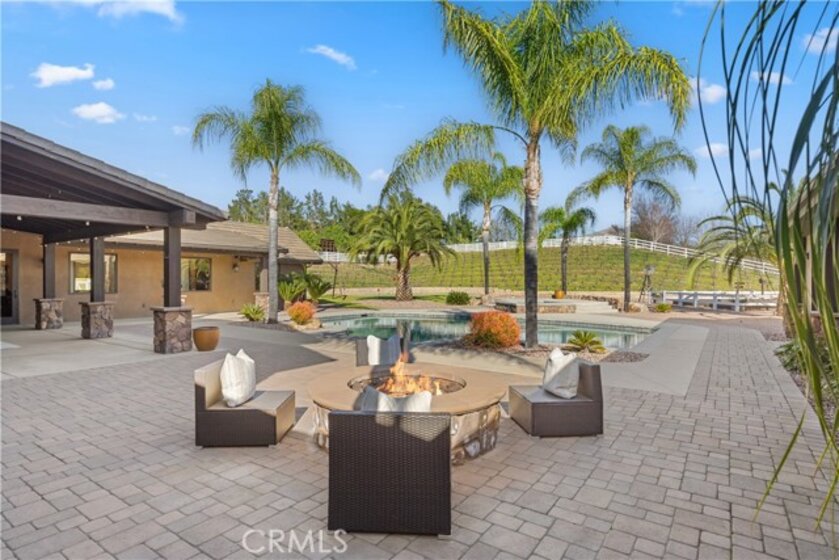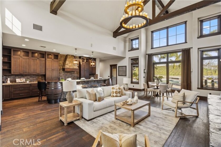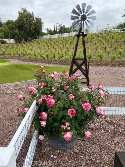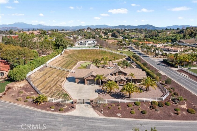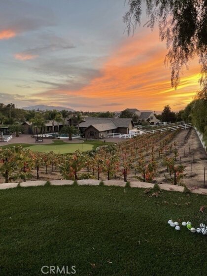 Premier Wine Country Estate with Vineyard & Multi-Generational Design. This exceptional Temecula estate offers 6 bedrooms, 5 bathrooms, and approximately 5,031 square feet of thoughtfully designed living space, perfectly suited for multi-generational living or flexible use. The home is intelligently divided into two distinct wings: the main wing features four oversized bedrooms along with a theater room or office, while the secondary wing functions as a private living suite complete with two bedrooms, a full kitchen, dining and living areas, a shared bath, and direct garage access—ideal for extended family, guests, or potential rental use. The gourmet kitchen showcases a Wolf range, Sub-Zero refrigerator, wine fridge, and rich custom wood cabinetry, complemented by durable commercial-grade wood plank flooring and soaring two-story ceilings that flood the home with natural light. Nearly every room overlooks the heart of the property—an entertainer’s dream featuring a saltwater PebbleTec pool, putting green, gas fire pit, full outdoor kitchen, and approximately three-quarters of an acre of income-producing vineyard. Additional highlights include a luxury lighted chicken coop, raised garden beds, powered storage shed, oversized three-car garage with extensive storage, and a fully finished attic large enough for a future game or bonus room. Fully gated with RV parking and hookups, low-maintenance landscaping, and the rare advantage of city water, natural gas, and sewer—with no HOA—this one-of-a-kind property is just minutes from Temecula Wine Country, shopping, and freeway access. A truly special offering that blends luxury, functionality, and lifestyle.
