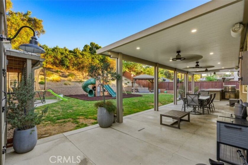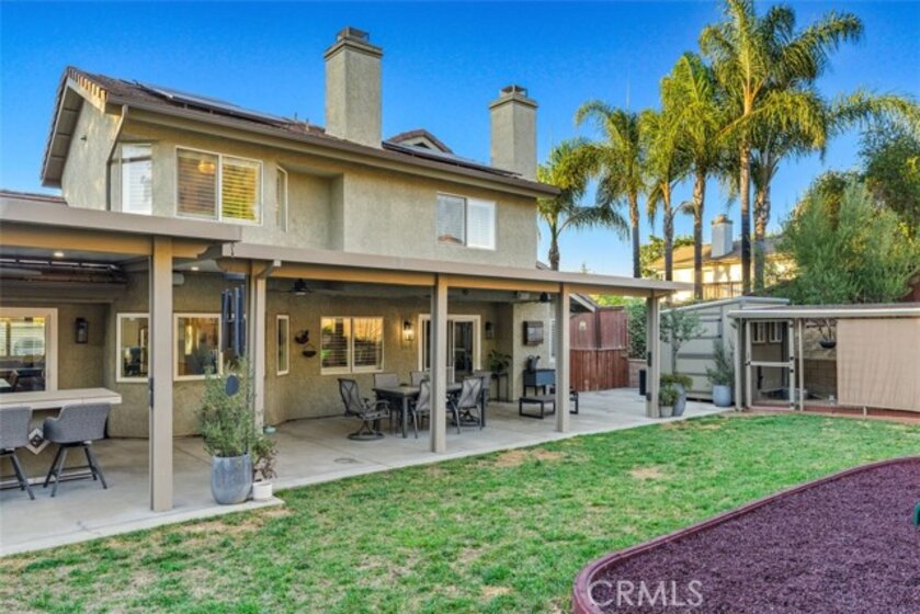Nestled In The Sought-After Villa Avanti Community In Temecula, CA, This Stunning Two-Story Home Offers An Exceptional Blend Of Luxury And Comfort. Boasting 28 Seller-Paid Solar Panels, This Energy-Efficient Residence Features Custom Shutters, Luxury Vinyl Plank Flooring, And A Beautiful Custom Staircase. The Remodeled Kitchen Is A Chef’s Dream, Equipped With Stainless Steel Appliances, Double Ovens, A 5-Burner Gas Range, And Translucent Quartzite Countertops. It Also Includes Custom Pendant Lighting, Soft-Close Drawers, A Butler’s Pantry, And Newer Windows In Kitchen With A Sliding Glass Door. The Inviting Great Room Centers Around Cozy Fireplace, Perfect For Relaxing Evenings. The Backyard Is An Entertainer’s Paradise With A Fully Covered Alumawood Patio, Complete With Recessed Lighting And Custom Fans. The Outdoor Space Includes A BBQ Island With A Fridge, Sink, Bar Top Seating, Outdoor Speakers, A Gazebo With Lights, A Fire Table, And Even A Chicken Coop. A Playground With Mulch And Rubber Curbing Adds A Fun Touch For The Little Ones. Upstairs, The Spacious Primary Bedroom Is A Serene Retreat With A Double-Door Entry, High Ceilings, A Walk-In Closet, Mirrored Wardrobe Doors, And A Private Fireplace. The Luxurious Primary Bathroom Features Quartz Countertops, A Custom Shower With Two Shower Heads, And A Separate Soaking Tub. Bedroom 2 Offers A Walk-In Closet, While Bedroom 3 Includes Mirrored Wardrobe Doors. A Remodeled Third Bathroom With Double Sinks Completes The Upper Level. Additionally, There's A Remodeled ½ Bathroom Downstairs With Shiplap And Ample Storage For Linens Upstairs. This Home Combines Modern Elegance With Practical Features, Making It An Ideal Choice For Discerning Buyers.