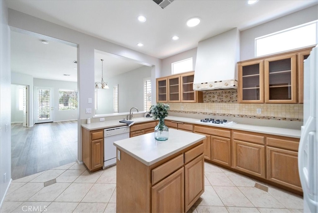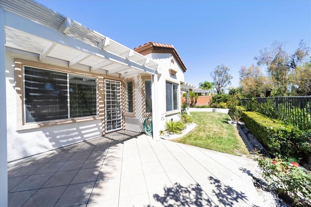 Honey, STOP the car! Welcome to 41766 Colonial Ct in Temecula, located in a quiet cul-de-sac directly across from the clubhouse within the beautiful Temeku Hills community. This 2-bedroom, 2-bathroom home also features a versatile bonus room that can easily be used as a third bedroom or office. As you enter, you're greeted by natural light and fresh neutral paint. To the left, you’ll find the secondary bedroom and full bathroom. Continue down the hallway into the spacious primary suite, which includes direct access to the backyard, a large walk-in closet, and a beautifully upgraded en-suite bathroom featuring quartz countertops, dual sinks, a vanity area with a full-wall mirror, a walk-in shower, a separate soaking tub, and a private toilet room. The kitchen is bright and open with a skylight, Corian countertops, and plenty of cabinet space, and it opens directly to the family room so you’re always part of the conversation. In the kitchen, you’ll find the walk-in pantry, the door to the laundry room, and just beyond that, access to the garage creating a smart and functional layout for daily living. The family room features a cozy fireplace perfect for crisp fall mornings, and a nearby door leads out to the backyard where you’ll enjoy a peaceful setting with breathtaking sunrise views over the city and surrounding hills. The bonus room near the living area includes a full-sized built-in desk and shelves, making it ideal for a home office or third bedroom if needed. The home features laminate and tile flooring throughout, an alumawood patio cover for shaded outdoor relaxation, and vinyl fencing for added privacy. Enjoy the peaceful lifestyle Temeku Hills offers along with community amenities like a golf course, tennis courts, clubhouse, pool, spa, and more. This home is a must see!