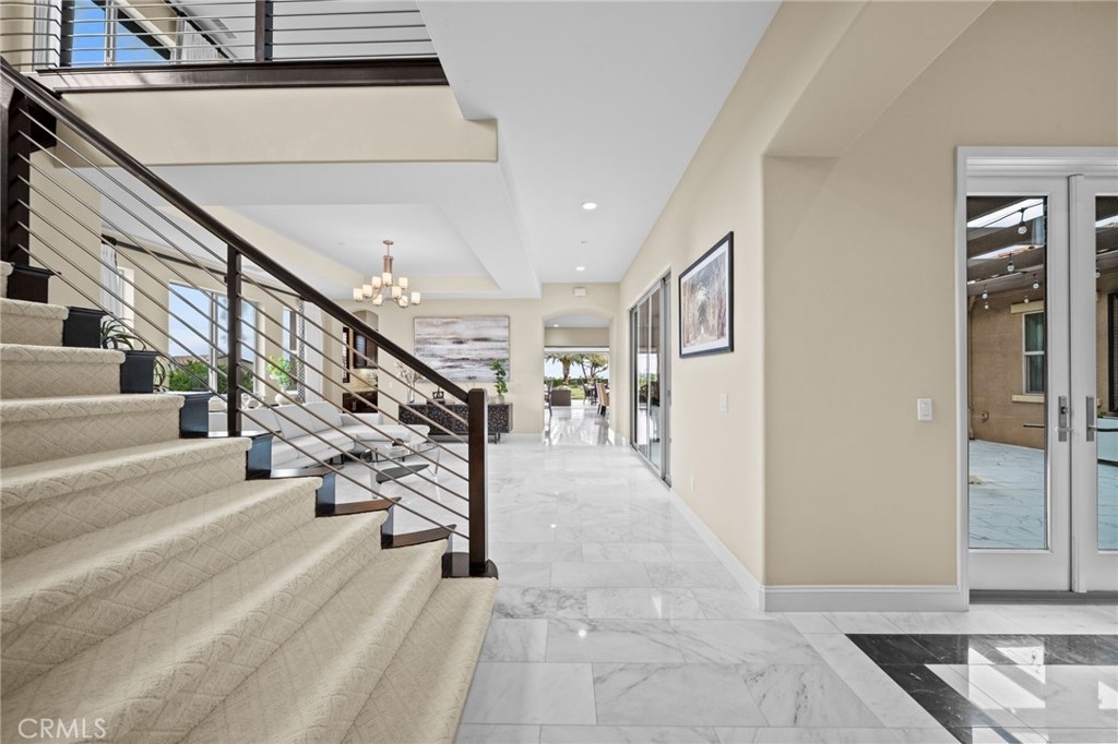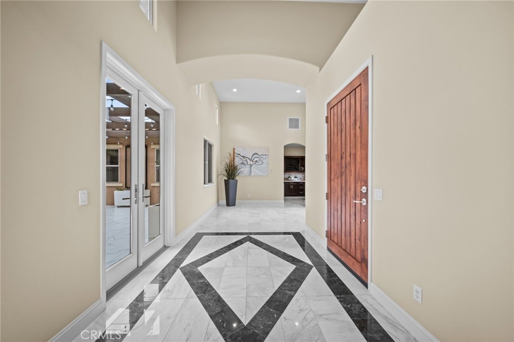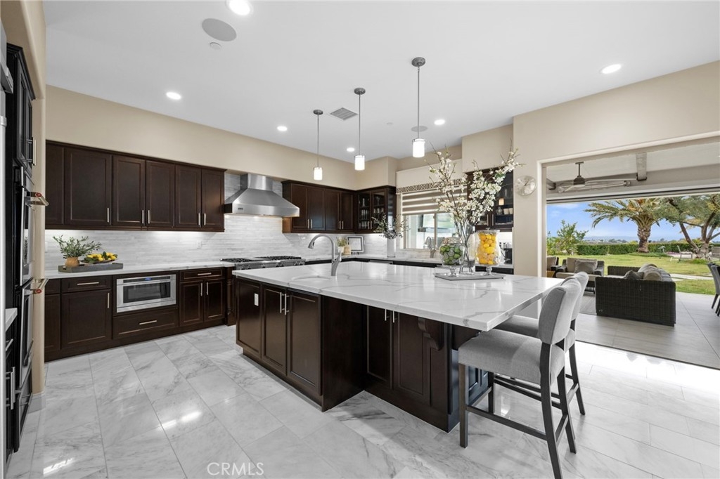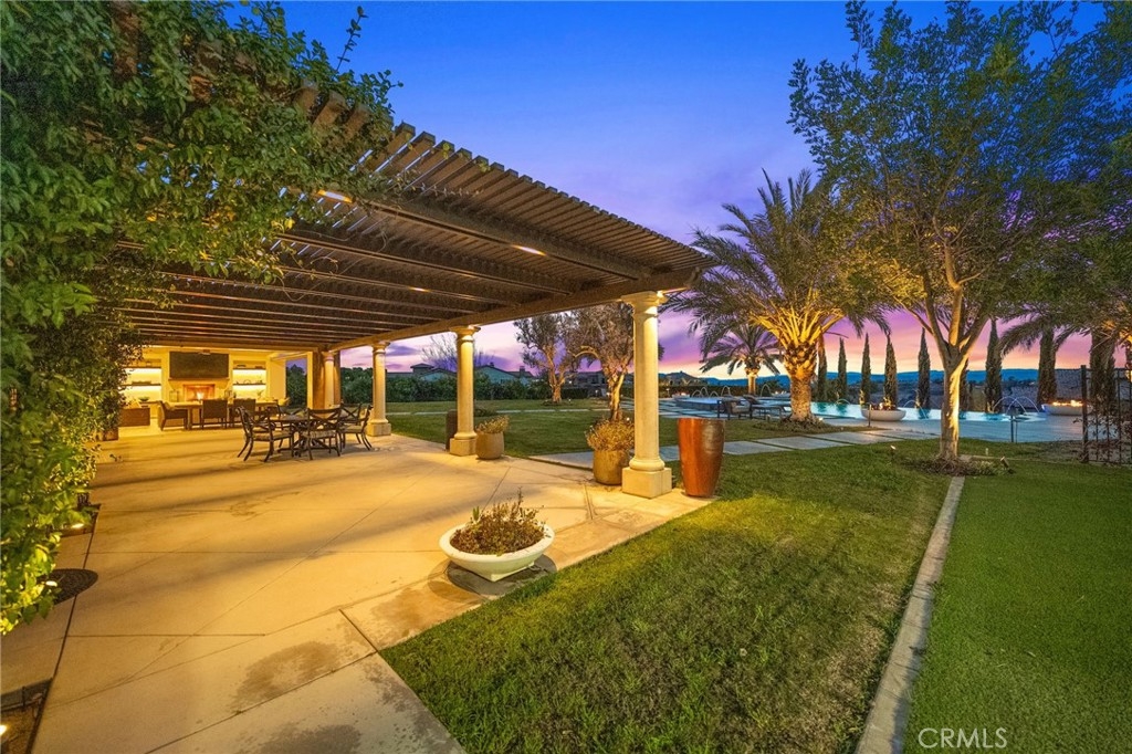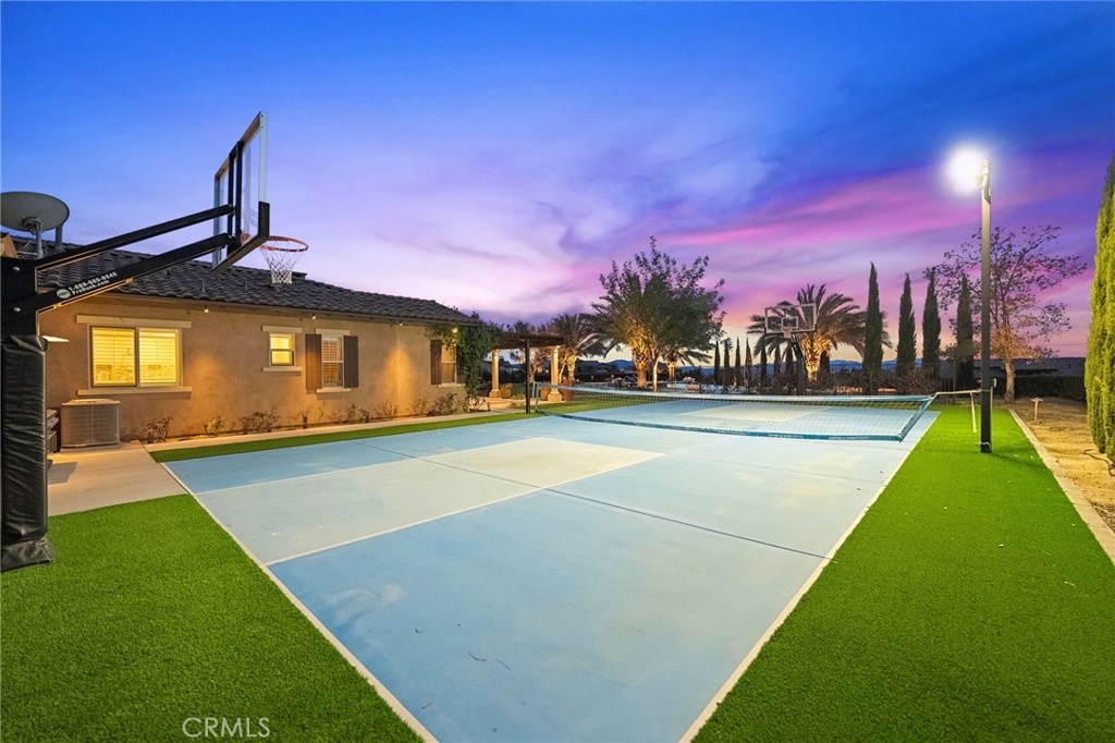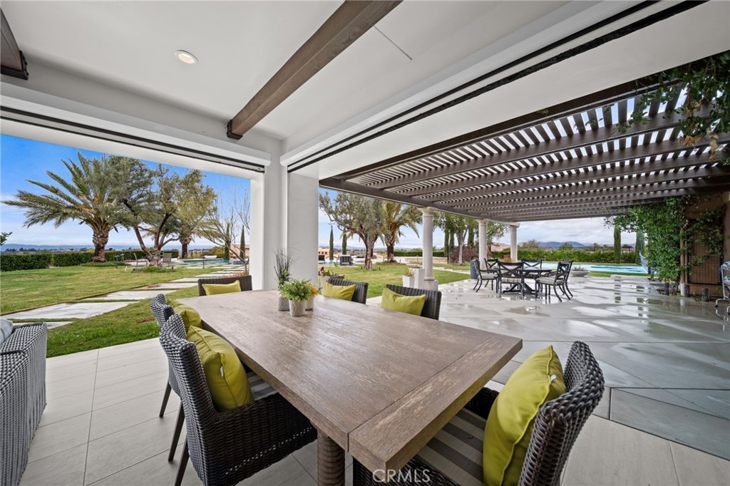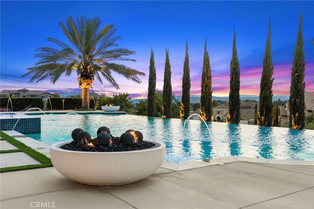 Welcome to luxury living in The Groves, one of Temecula’s most sought-after gated communities with low turnover. This stunning 6-bedroom, 6.5-bathroom estate was built in 2017 and sits on 2.08 acres of usable land, offering the perfect blend of elegance, comfort, and resort-style amenities. As you arrive, a long private driveway lined with stately Italian cypress trees leads you to this magnificent 5,287 sq. ft. home. The backyard is an entertainer’s dream, featuring a near 60-foot infinity-edge pool, a large spa, and elegant pavers with turf inlays, all surrounded by lush cypress trees and palms. The expansive yard includes a sport court, ideal for tennis, pickleball, basketball, and more. A sprawling grass area adds to the home’s outdoor appeal, while a block wall discreetly conceals the pool equipment. The covered California room extends the home's luxurious outdoor living space, complete with a fireplace, outdoor heater, electric shades, and a spacious dining area—all perfectly positioned to take in breathtaking sunset views. Additionally, a large pad on the side of the home is ready for an RV garage with hookups already in place. Inside, the thoughtfully designed floor plan offers a first-floor primary suite with a private retreat and oversized walk-in closet. The master bathroom features an expansive walk-in shower for a spa-like experience. An additional secondary bedroom with an en-suite bath on the main level provides a private space for guests or multi-generational living. The heart of the home is the chef’s kitchen, boasting high-end appliances, two dishwashers, and picturesque backyard views. Oversized stackable glass doors seamlessly blend indoor and outdoor living, while an additional large slider opens to a serene central patio with beautiful tile flooring. A wine cellar and a second kitchen area in the front wing enhance the home’s functionality and style. Upstairs, a spacious loft and additional bedrooms, each with en-suite bathrooms, provide ample privacy and space for family members or guests. Located in a secure, gated community with wide roads perfect for walks and play, this estate offers an unparalleled lifestyle in Temecula Wine Country. With a 5-car garage and ample parking, this property is as practical as it is luxurious.