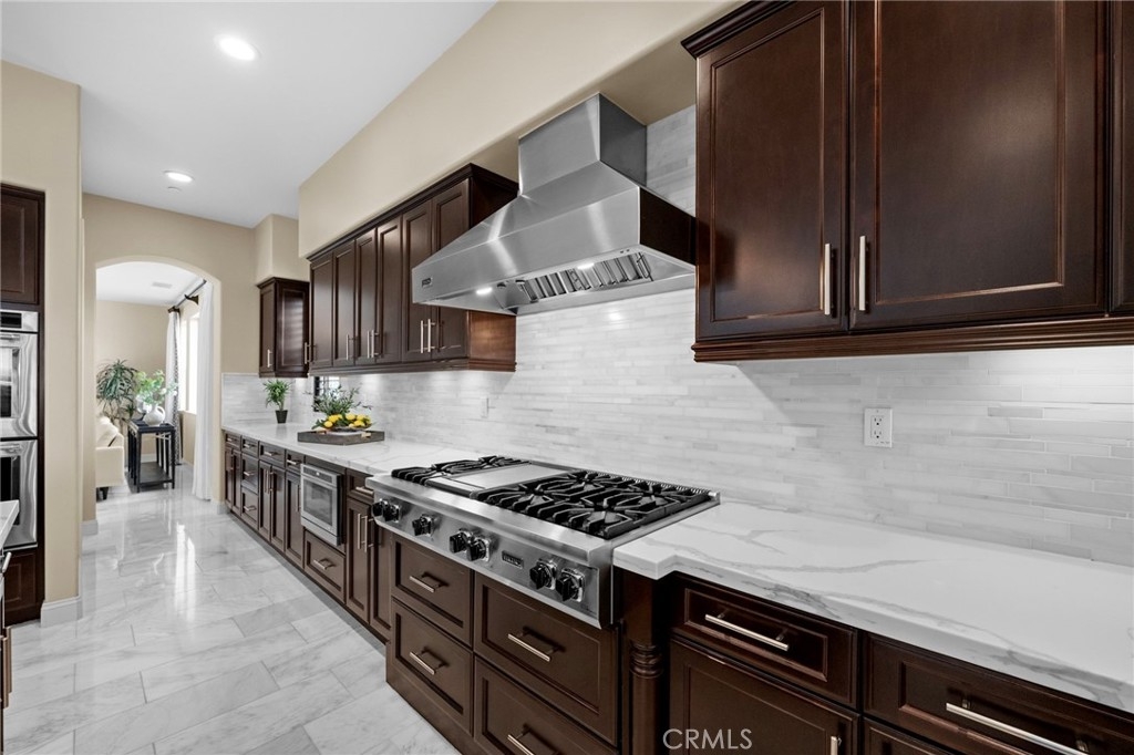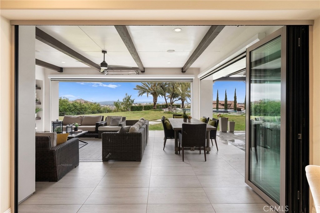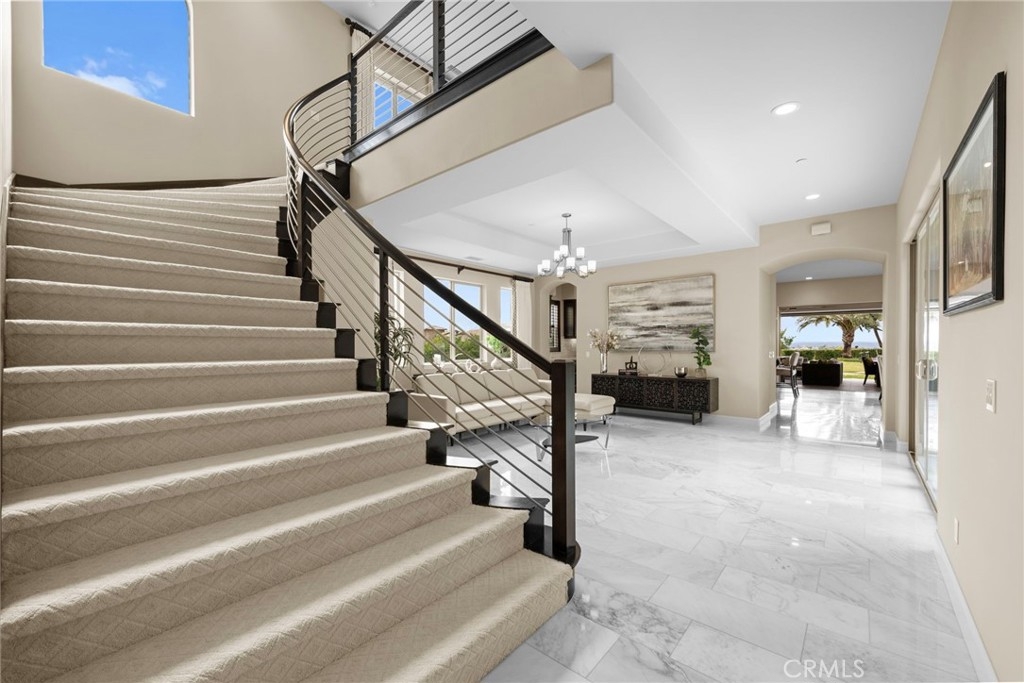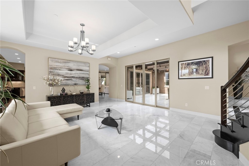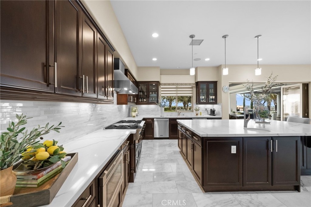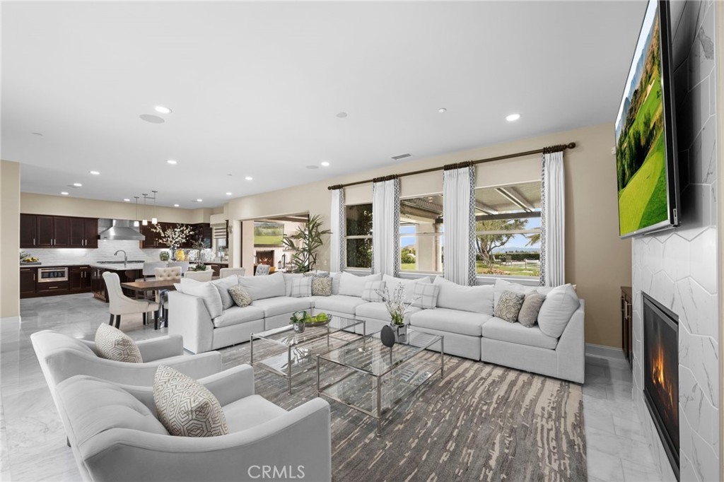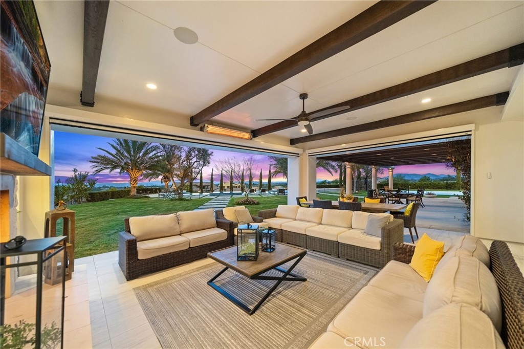 Welcome to luxury living in The Groves, one of Temecula’s most sought-after gated communities with low turnover. This stunning 6-bedroom, 6.5-bathroom estate was built in 2017 and sits on 2.08 acres of usable land, offering the perfect blend of elegance, comfort, and resort-style amenities. As you arrive, a long private driveway lined with stately Italian cypress trees leads you to this magnificent 5,287 sq. ft. home. The backyard is an entertainer’s dream, featuring a near 60-foot infinity-edge pool, a large spa, and elegant pavers with turf inlays, all surrounded by lush cypress trees and palms. The expansive yard includes a sport court, ideal for tennis, pickleball, basketball, and more. A sprawling grass area adds to the home’s outdoor appeal, while a block wall discreetly conceals the pool equipment. The covered California room extends the home's luxurious outdoor living space, complete with a fireplace, outdoor heater, electric shades, and a spacious dining area—all perfectly positioned to take in breathtaking sunset views. Additionally, a large pad on the side of the home is ready for an RV garage with hookups already in place. Inside, the thoughtfully designed floor plan offers a first-floor primary suite with a private retreat and oversized walk-in closet. The master bathroom features an expansive walk-in shower for a spa-like experience. An additional secondary bedroom with an en-suite bath on the main level provides a private space for guests or multi-generational living. The heart of the home is the chef’s kitchen, boasting high-end appliances, two dishwashers, and picturesque backyard views. Oversized stackable glass doors seamlessly blend indoor and outdoor living, while an additional large slider opens to a serene central patio with beautiful tile flooring. A wine cellar and a second kitchen area in the front wing enhance the home’s functionality and style. Upstairs, a spacious loft and additional bedrooms, each with en-suite bathrooms, provide ample privacy and space for family members or guests. Located in a secure, gated community with wide roads perfect for walks and play, this estate offers an unparalleled lifestyle in Temecula Wine Country. With a 5-car garage and ample parking, this property is as practical as it is luxurious.