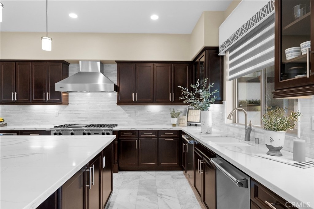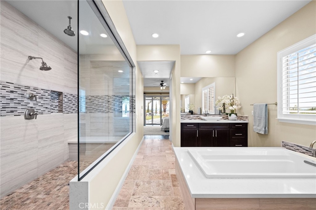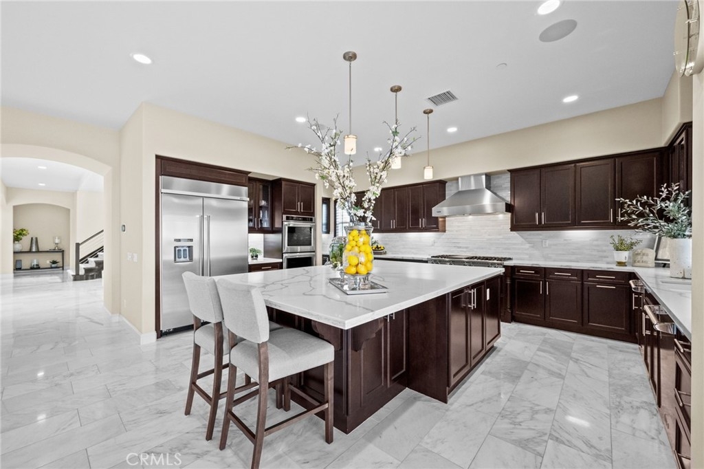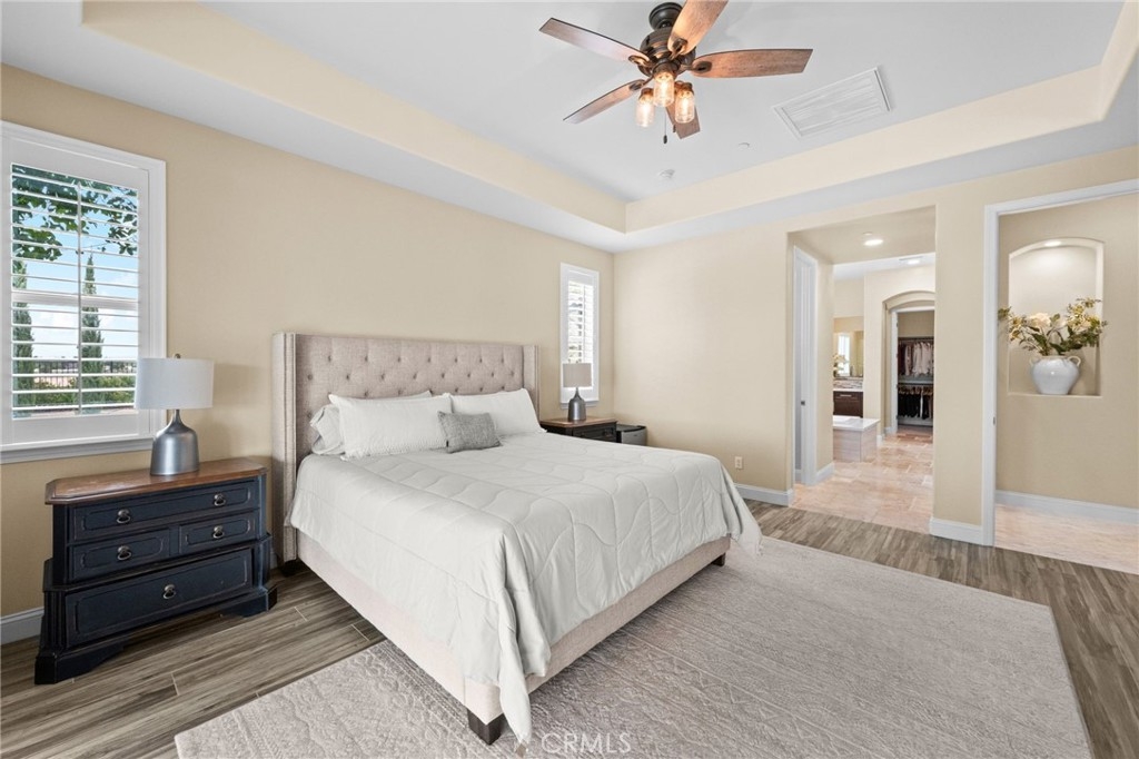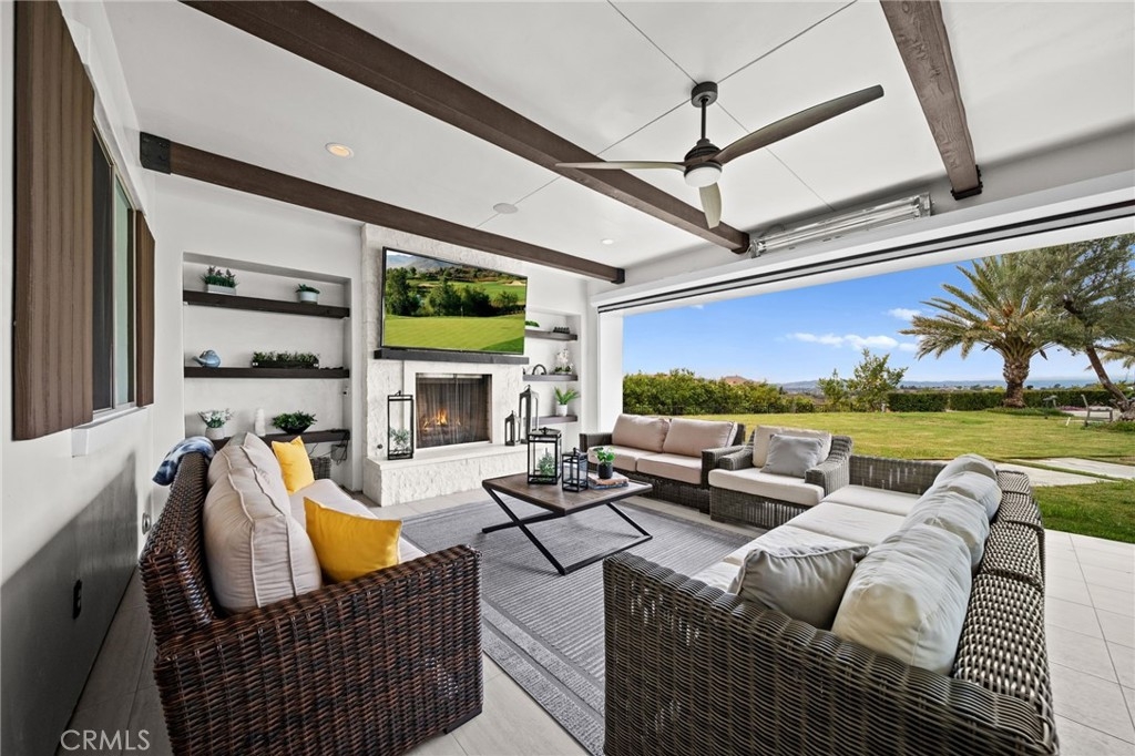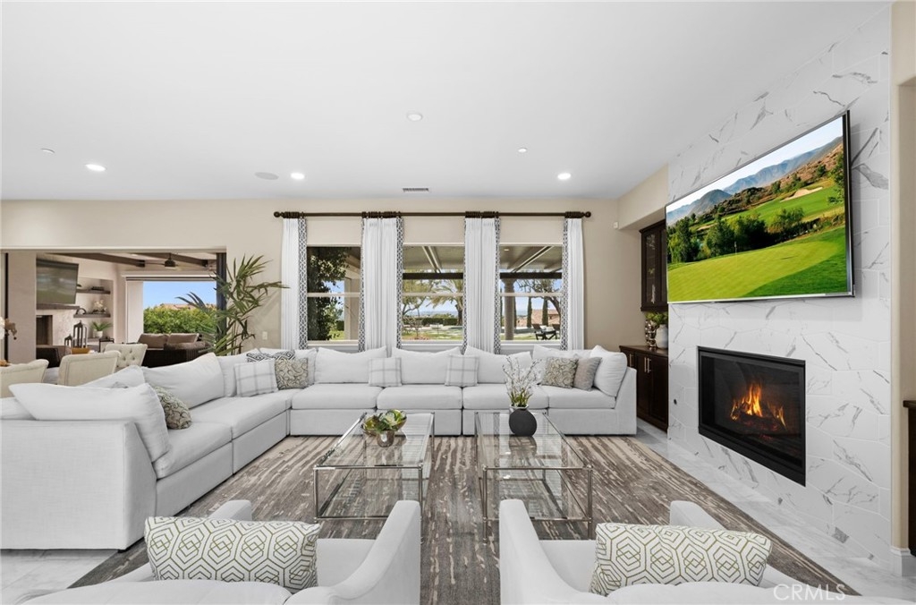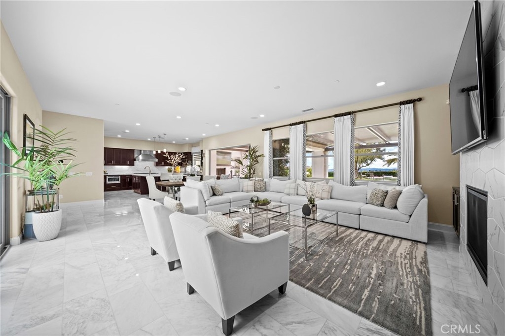 Welcome to luxury living in The Groves, one of Temecula’s most sought-after gated communities with low turnover. This stunning 6-bedroom, 6.5-bathroom estate was built in 2017 and sits on 2.08 acres of usable land, offering the perfect blend of elegance, comfort, and resort-style amenities. As you arrive, a long private driveway lined with stately Italian cypress trees leads you to this magnificent 5,287 sq. ft. home. The backyard is an entertainer’s dream, featuring a near 60-foot infinity-edge pool, a large spa, and elegant pavers with turf inlays, all surrounded by lush cypress trees and palms. The expansive yard includes a sport court, ideal for tennis, pickleball, basketball, and more. A sprawling grass area adds to the home’s outdoor appeal, while a block wall discreetly conceals the pool equipment. The covered California room extends the home's luxurious outdoor living space, complete with a fireplace, outdoor heater, electric shades, and a spacious dining area—all perfectly positioned to take in breathtaking sunset views. Additionally, a large pad on the side of the home is ready for an RV garage with hookups already in place. Inside, the thoughtfully designed floor plan offers a first-floor primary suite with a private retreat and oversized walk-in closet. The master bathroom features an expansive walk-in shower for a spa-like experience. An additional secondary bedroom with an en-suite bath on the main level provides a private space for guests or multi-generational living. The heart of the home is the chef’s kitchen, boasting high-end appliances, two dishwashers, and picturesque backyard views. Oversized stackable glass doors seamlessly blend indoor and outdoor living, while an additional large slider opens to a serene central patio with beautiful tile flooring. A wine cellar and a second kitchen area in the front wing enhance the home’s functionality and style. Upstairs, a spacious loft and additional bedrooms, each with en-suite bathrooms, provide ample privacy and space for family members or guests. Located in a secure, gated community with wide roads perfect for walks and play, this estate offers an unparalleled lifestyle in Temecula Wine Country. With a 5-car garage and ample parking, this property is as practical as it is luxurious.