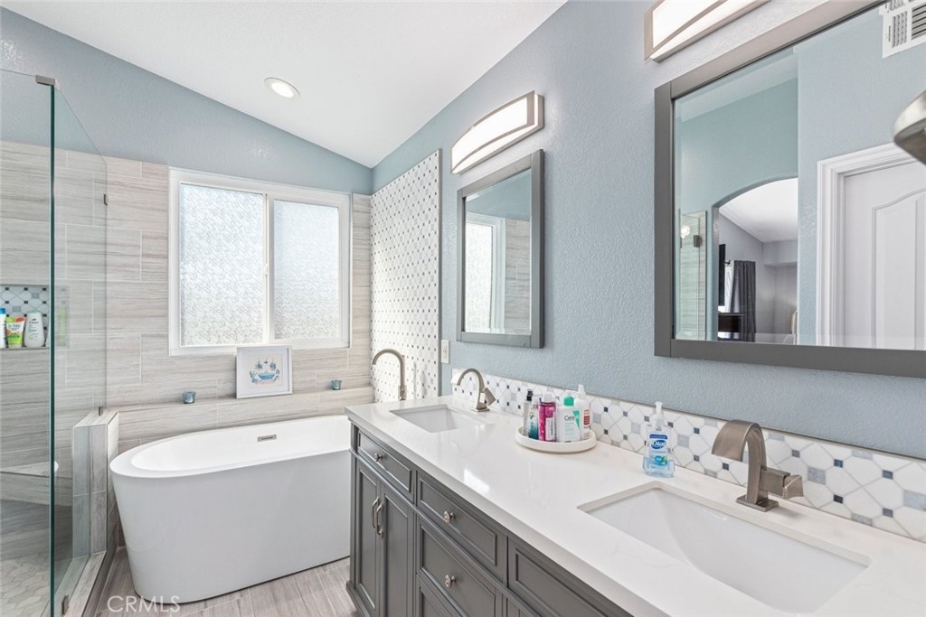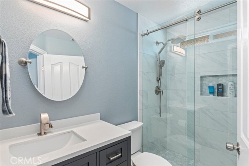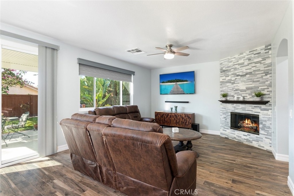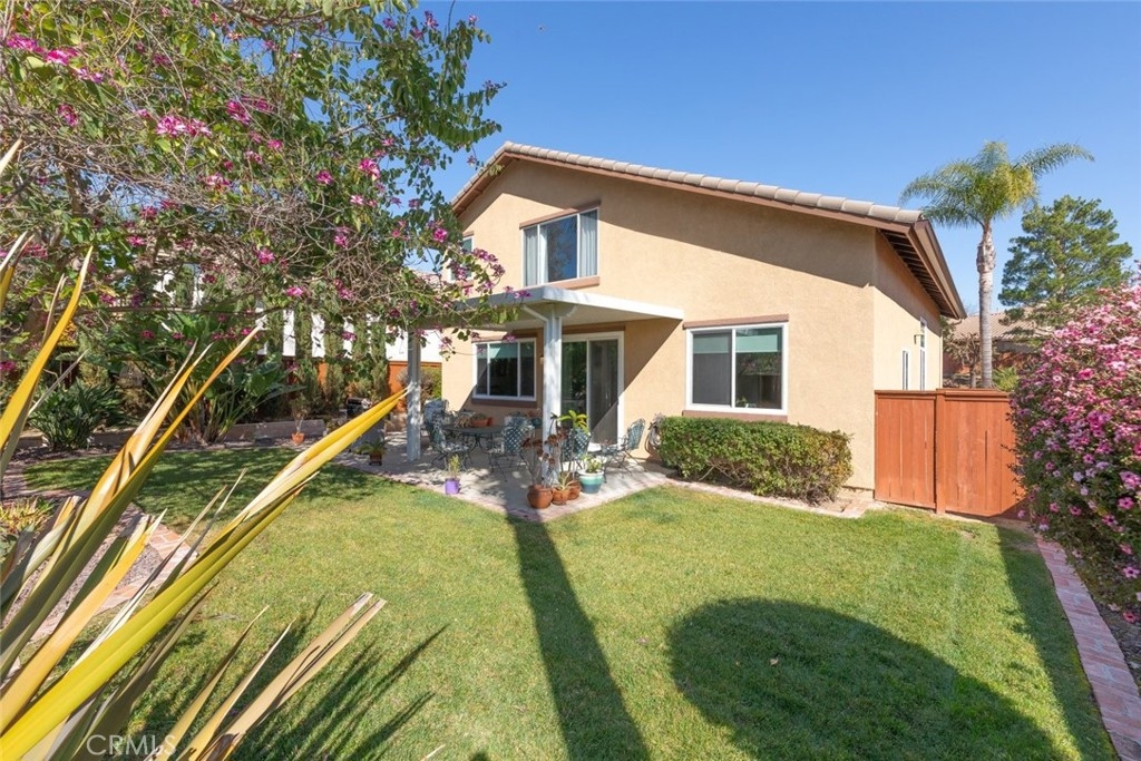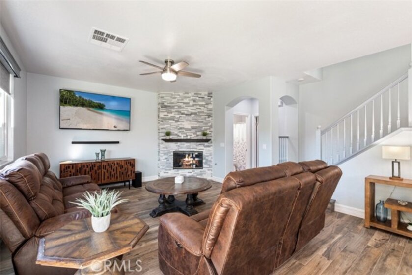 Welcome to resort-style living in the highly sought-after Temeku Hills golf course community, just minutes from world-class Temecula wineries, dining, and the charm of Old Town. This beautifully upgraded two-story home features 3 bedrooms and 3 full bathrooms and has been extensively remodeled since 2023. The first floor showcases porcelain tile flooring with a warm wood-plank look, new windows and sliding door, new interior doors, a security screen entry door, fresh interior and exterior paint, and custom molding and casings throughout. The stunning kitchen offers shaker-style cabinetry, quartz countertops, an attached island with wine refrigerator, and stainless steel appliances including the stove, mounted microwave, dishwasher, and wine refrigerator. Enjoy a formal living room and an open-concept layout flowing into the inviting den with fireplace, abundant natural light, and custom window coverings. A full bathroom and separate laundry room complete the downstairs. Upstairs features Coretec water-resistant plank flooring throughout the hallway and bedrooms, creating a warm, modern feel. Both upstairs bathrooms are fully remodeled with porcelain tile flooring. Additional highlights include new central heating and air conditioning, owned solar, and a water purification system. This exceptional home is truly a must-see to appreciate.