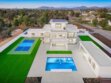 The most modern, sophisticated, and luxurious home in Temecula Wine Country. This opulent Ibiza-style villa was designed after the award-winning Villa Fabulosa—selected by Expedia and VRBO as the top vacation rentals in the U.S., out of 2 million properties. This offers proven prestige and a home you’ll be proud to own. This home may be eligible as a Short-Term rental. Call for details. It features six spacious bedrooms, 6.5 baths, a professional theater room, an expansive gourmet kitchen with a vast pantry, a magnificent walk-in closet, a 4-car garage with glass doors, two balconies, and two roof decks with breathtaking 360° views. Be awed by exquisite modern finishes, a soaring 22-ft family room with a dramatic fireplace, a 20-ft sliding glass door blending indoor/outdoor living, and the most gorgeous sunsets! Resort-style amenities include a pro-sized pickleball court, putting green, large pool & spa, sports area, and more—surrounded by over 55 world-class wineries. Added value 1: A 750 SF outdoor kitchen with everything you can imagine. Plus a bonus room perfect for a game, exercise room, or private office. Added value 2: A second 29,000 SF flat pad with a 1,344 SF manufactured home generating $3,500/month rent. At 4% cap rate, this asset alone adds over $1,050,000 in value. Or build a second residence on this gorgeous pad, with a 360-degree view. Added Value 3: A large flat pad perfect for horse stables, tennis courts, a warehouse, or other custom features. At $5,395,000, this rare turnkey compound in the center of wine country won't last!