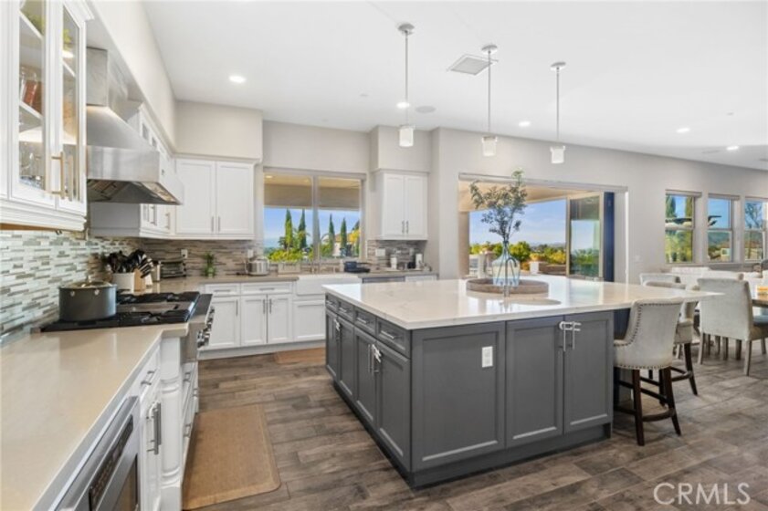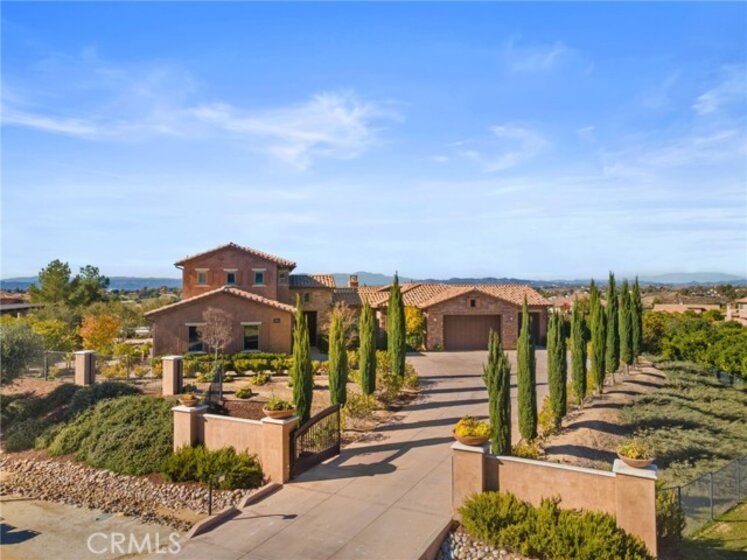 Set behind the prestigious gates of The Groves, this breathtaking 6-bedroom, 6.5-bath Tuscan-style estate embodies the perfect blend of timeless European elegance and modern Wine Country living. Located in the heart of Temecula Wine Country and surrounded by an active, certified organic citrus orchard, the 2.12 acre property offers uninterrupted vistas of rolling groves, vineyards, and glowing sunsets. Olive trees line the streets that lead to the residence, where rich architectural details and refined craftsmanship define every space. Inside, each bedroom enjoys the privacy of its own en suite bathroom, while the primary suite serves as a private retreat complete with a sitting area and a dedicated home gym. The gourmet kitchen features premium Viking appliances, complemented by a wine cellar, formal dining room, and multiple indoor/outdoor living areas ideal for entertaining. An airy atrium brings soft natural light into the home’s core, enhancing its warm, inviting ambiance. Luxury and convenience come standard with paid solar, a whole-home generator, solar pool heater, water softener, reverse-osmosis drinking system, under-counter ice maker, under-counter freezer, custom shutters/blinds, and ceiling fans throughout. The resort-style backyard showcases a sparkling pool and spa, framed by panoramic views of citrus orchards and stunning sunset views. A private casita provides flexible space for guests or multigenerational living. Car enthusiasts will appreciate the expansive 5-car garage, offering ample room for vehicles, storage, or a workshop. Blending Tuscan character with modern sophistication, this exceptional estate captures the essence of luxury Wine Country living within one of Temecula’s most coveted gated communities.