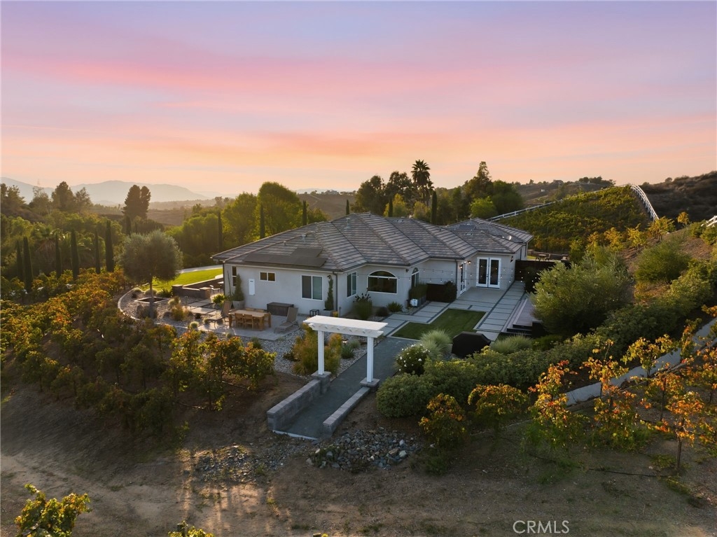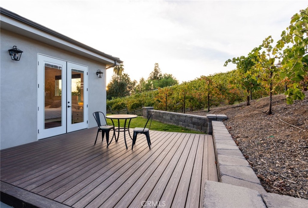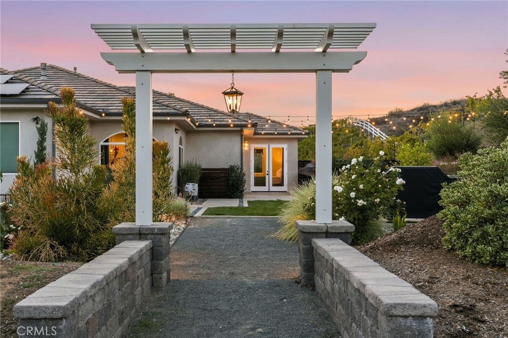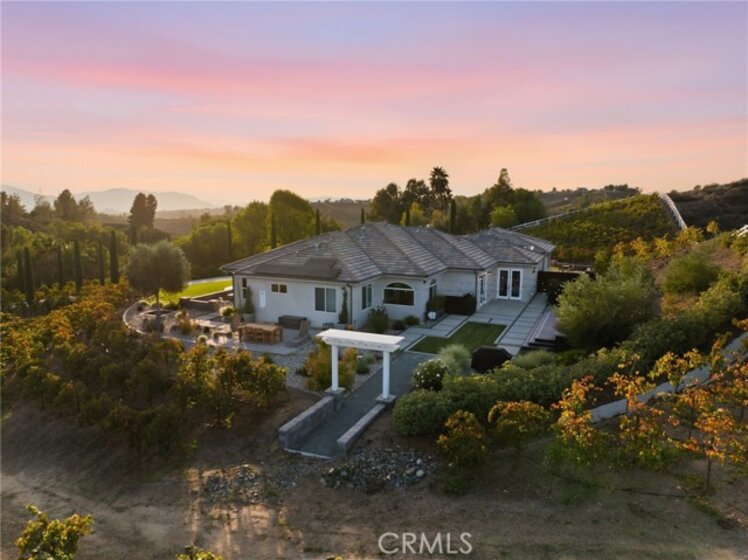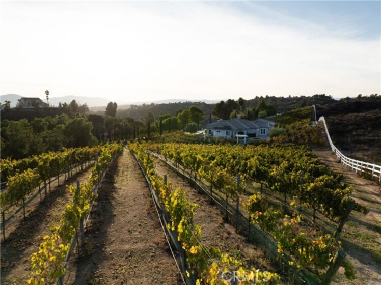 Crafted with a keen eye for detail, this newer-construction custom estate combines high-end finishes, quality craftsmanship, and clean modern lines with a warm, practical feel—all set on 2.5 usable acres in the heart of Temecula’s sought-after Wine Country. The property features a 3-bedroom, 2-bath main residence and a separate 2-bedroom, 1.5-bath guest house, both showcasing a cohesive contemporary design with a smooth Santa Barbara-style stucco exterior finish for a clean, upscale look. Inside the main home, an open-concept layout creates effortless flow between the living, dining, and kitchen areas—ideal for entertaining and everyday living. The designer gourmet kitchen offers high-end finishes, a large center island, and generous storage, all styled with a refined, modern aesthetic. Thoughtful interior design details continue throughout, with curated fixtures, quality materials, and elevated yet comfortable spaces that feel polished without being sterile. The separate guest house includes 2 bedrooms, 1 bathroom, and a full kitchen, making it perfect for multi-generational living, extended stays, or additional income opportunities as an owner-hosted short-term rental in this popular Wine Country destination (buyer to verify STR requirements).Recently installed solar (2025) with Tesla Powerwall enhances efficiency and energy independence. The fully fenced property with privacy gate includes approximately 2.5 acres of land with an organic, income-producing vineyard of mature, healthy vines—ideal for an aspiring or seasoned vintner. For those who simply love the ambiance of the vines without the upkeep, the vineyard can be professionally managed and harvested by a third party, allowing the owner to enjoy the beauty and lifestyle of Wine Country without the maintenance. Temecula Wine Country living at its finest—modern design, custom construction, income potential, and a turnkey vineyard experience all in one exceptional estate.