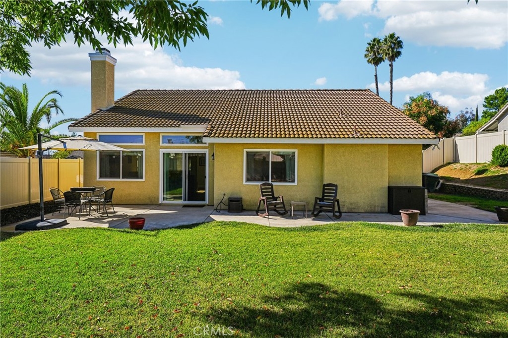 This single-story gem in the highly sought-after Vintage Hills community offers the perfect blend of modern upgrades and spacious outdoor living. Located within walking distance of top-rated Vintage Hills Elementary, this home sits on an expansive nearly 10,000 sq. ft. lot with a charming front porch and professional landscaping. The interior features soaring high ceilings, 5-inch baseboards, and wood-like tile flooring throughout the kitchen, bathrooms, and high-traffic areas. The updated kitchen is a chef’s delight, boasting granite countertops with a peninsula island, custom cabinetry, stainless steel appliances, and a breakfast nook . The kitchen flows seamlessly into the dining area and family room. The cozy family room, anchored by a classic fireplace and ceiling fan, features dual sliders leading to the backyard. The home offers four bedrooms (one without a closet, ideal for an office) and two fully upgraded bathrooms featuring granite counters, new lighting, mirrors, and fixtures. One of the bedrooms includes dual sliding door entry, a ceiling fan, and a wall-mounted TV while the primary bedroom offers a walk in closet. Recent high-value improvements include: New AC, furnace, water heater, all new windows throughout. The garage features an epoxy flooring and a rare pull-through door to the side yard. The backyard is an entertainer’s dream, featuring a built-in BBQ, an above-ground spa, a large grass area for yard games, and a mature shade tree. The entire perimeter is secured with new vinyl fencing. Located in a low-tax area with easy freeway access and just minutes from Temecula Wine Country, this home is move-in ready and ready for new owners to make it their own!