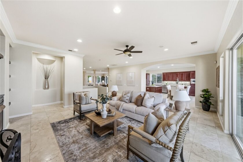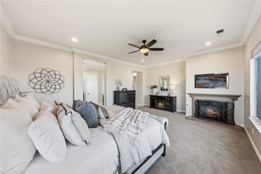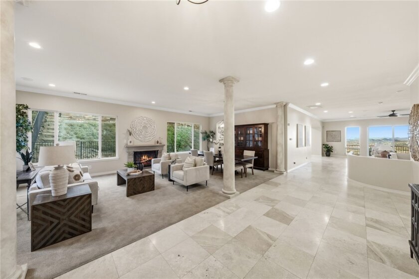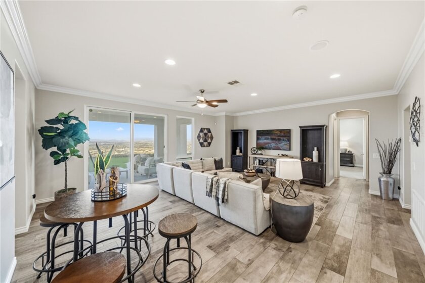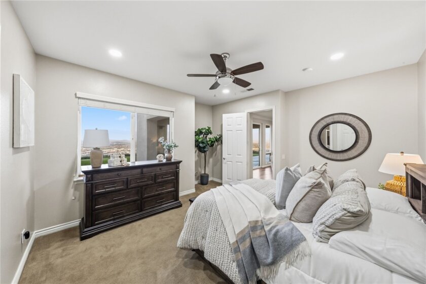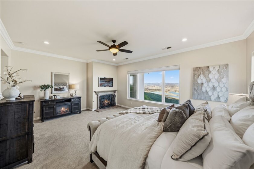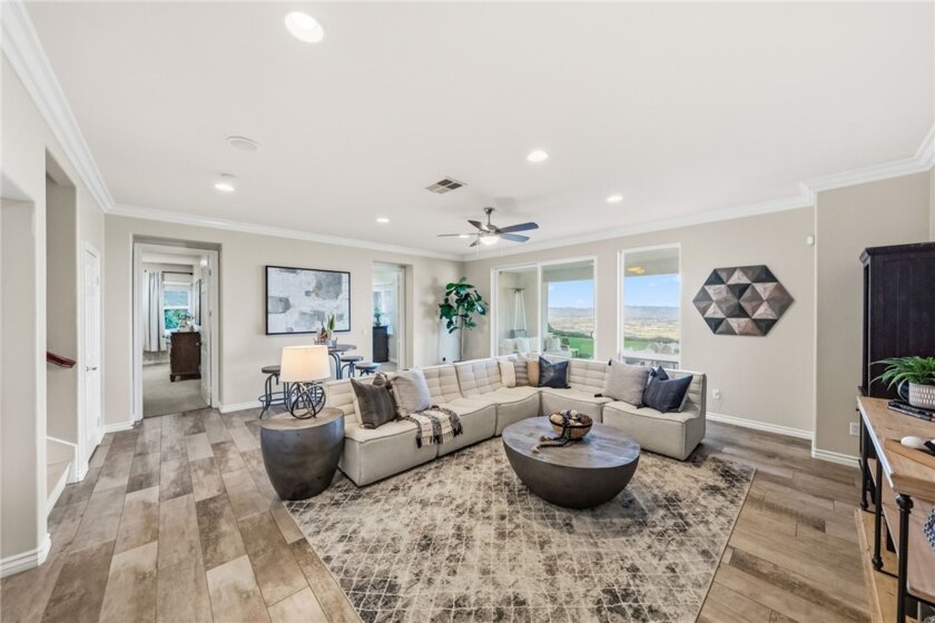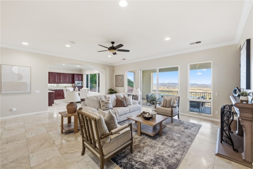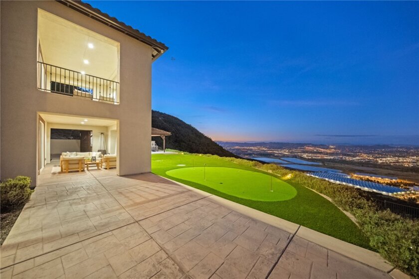 The best location in De Luz, Temecula.. Perfectly situated in a gated community, just five minutes from the freeway, shopping, and dining, while overlooking the entire Temecula Valley. This stunning residence is truly one of a kind. Thoughtfully designed as a two story home that lives like a single story, the primary suite is ideally located on the main level, featuring a spacious bedroom and luxurious bathroom retreat. From the moment you enter through the formal entry, you are welcomed by elegant living spaces including a formal living room, formal dining room, and an inviting family room. At the heart of the home is a chef’s kitchen outfitted with premium Viking appliances, a generous layout, and an adjoining dining area perfect for both everyday living and entertaining. The home offers 4 bedrooms and 4.5 bathrooms, with three bedrooms featuring en suite full baths, and the fourth conveniently located near its own full bathroom. The lower level expands the home’s versatility with an additional family room/bonus room and a flexible space that can be used as an office, game room, or even a potential “casita” kitchen setup. Spanning approximately 4,381 square feet, the home features a beautiful open floor plan filled with natural light and mesmerizing views from nearly every window. Additional highlights include paid off solar and an oversized 3 car garage. Step outside to your private backyard oasis, complete with low maintenance astro turf, a putting green, and lush, mature landscaping with a variety of fruit trees. The highly upgraded outdoor covered patio is designed for year round enjoyment, featuring an outdoor kitchen, pitched wood ceiling, ambient lighting, and a jacuzzi perfectly positioned to take in the stunning city views. Upstairs, a covered patio offers yet another vantage point to soak in the panoramic scenery. The expansive lot provides ample space and opportunity to add a pool and spa, further enhancing this incredible property. Located within one of the only gated enclaves in De Luz with just four homes, this property offers a rare combination of exclusivity, seclusion, and accessibility. Built in 2010 and barely lived in, the home is in immaculate, truly move in ready condition. Just minutes from town and among the first homes in De Luz, this exceptional property delivers luxury living, privacy, and unforgettable views in one of Temecula’s most sought after locations. There is no HOA, low taxes, and no STR restrictions.