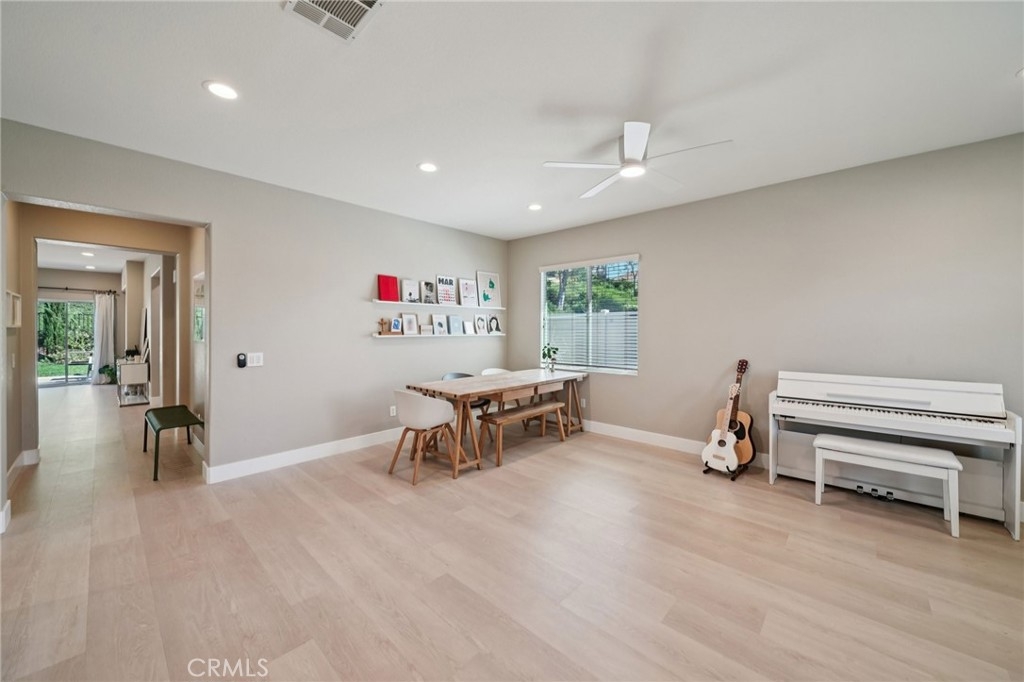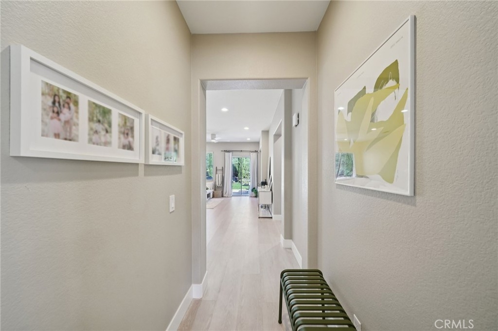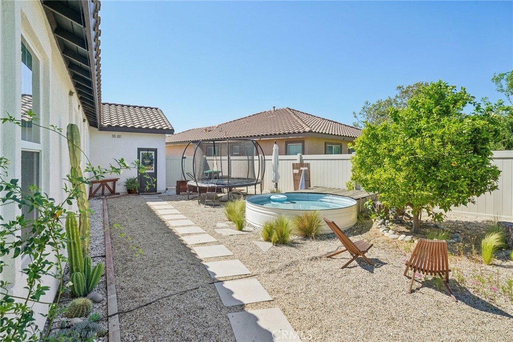 Welcome to this beautifully upgraded single-story home located in the highly sought-after Crowne Hill community. Situated on an expansive 14,810 sq. ft. cul-de-sac lot directly adjacent to a scenic greenbelt, trail, and community park, this property offers both privacy and a prime location. Inside, you’ll find a bright and open floor plan that lives larger than its square footage. The completely remodeled kitchen is a standout feature, showcasing new cabinetry with soft-close drawers and a Lazy Susan organizer, natural quartz countertops, and an expanded island that doubles as a dining table with seating for six—perfect for everyday living and entertaining. The home is enhanced with light-toned, wood-style luxury flooring, neutral interior paint, and tall modern baseboards for a clean, contemporary feel. Updated lighting and ceiling fans throughout add both style and comfort, along with a spacious walk-in closet in the primary suite. Go outside to a truly park-like backyard designed for entertaining and relaxation. Enjoy a unique, custom “cowboy pool,” a 10-foot pool with deck, a beautifully landscaped backyard filled with trees and flowering plants, fruit trees, lush yet low-maintenance landscaping, a dedicated playground area with turf, and a fenced family garden with planter boxes. The exterior has also been recently painted, adding to the home’s excellent curb appeal. Additional features include a spacious 3-car garage that is pre-wired for an EV charger offering easy installation. Located within the boundaries of top-rated schools, including Crowne Hill Elementary School and Temecula Valley High School, and just a short drive to Temecula Valley Wine Country, shopping, and dining, this home offers the perfect blend of lifestyle and convenience. With low HOA dues and access to Crowne Hill amenities including a park, playground, picnic areas, and basketball court, this home truly has it all.