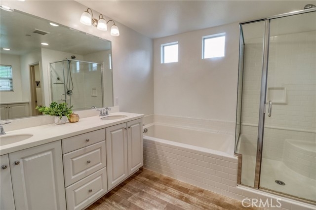 This stunning 3-bedroom, 2.5-bath detached home is perfectly situated on a desirable corner lot in the sought-after Indigo Place community. Designed for modern comfort and style, it showcases engineered hardwood floors, fresh carpet upstairs, a whole-house fan, and elegant top-down bottom-up cellular window coverings that offer both privacy and natural light. Step inside to an open-concept layout where the kitchen, dining, and living areas flow seamlessly—ideal for gatherings or relaxing nights at home. The kitchen is a true centerpiece with crisp white cabinetry, granite countertops, and stainless-steel appliances. Upstairs, the spacious primary suite invites you to unwind with dual sinks, a soaking tub, a separate shower, and a walk-in closet. Two additional bedrooms—both with walk-in closets—plus an upstairs laundry room provide everyday convenience. Further highlights include a private fenced backyard for outdoor entertaining, a two-car garage, and an energy-efficient tankless water heater. Residents of Indigo Place enjoy access to a sparkling community pool, perfect for warm Temecula days. The location couldn’t be better—just minutes from Temecula’s award-winning wineries, hot air balloon adventures, Old Town’s unique shops and dining, Vail Elementary, and Temecula Valley High. Local parks are also close by, offering plenty of outdoor recreation. Move-in ready and impeccably maintained, this home is the perfect blend of style, comfort, and convenience—waiting for you to make it your own.