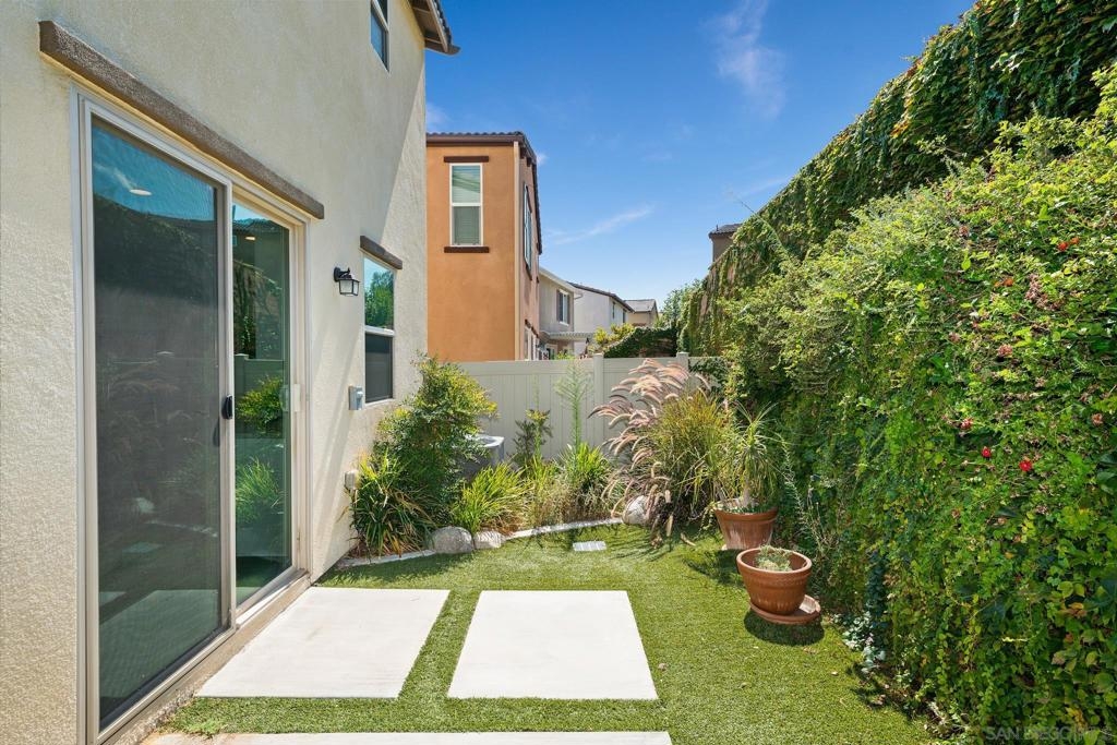 Beautiful, turn-key home in Indigo Place! Back yard is a private oasis with synthetic turf surrounding the entire length of the yard all the way to the back gate, concrete hard scraping and mature garden. Very private! Large great room opens to the gorgeous kitchen with white granite countertops and Frigidaire stainless appliances. Vinyl wood plank flooring throughout the downstairs and plush carpet upstairs. Recessed lighting throughout. Master bedroom is very large with an En-suite spa like bath with dual sinks, extra-large soaking tub and separate shower. Large walk-in closet. 2 additional bedrooms are generous in size. Laundry room is located upstairs for added convenience. Close to major shopping and freeway. Just 3 homes away from the pool! Beautiful, turn-key home in Indigo Place! Back yard is a private oasis with gardens, synthetic turf surrounds the entire length of the yard all the way to the back gate. Very private! Large great room opens to the gorgeous kitchen with white granite countertops and Frigidaire stainless appliances. Vinyl wood flooring throughout the downstairs and plush carpet upstairs. Recessed lighting throughout. Master bedroom is very large with an En-suite spa like bath with dual sinks, extra-large soaking tub and separate shower. Large walk-in closet. 2 additional bedrooms are generous in size. Laundry room is located upstairs for added convenience. Close to major shopping and freeway. Just 3 homes away from the pool! Equipment: Range/Oven, Satellite Dish Sewer: Sewer Connected Topography: LL