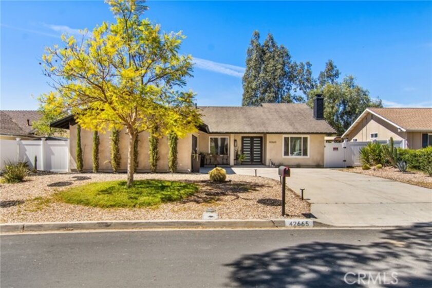 Completely reimagined and move-in ready, this beautifully upgraded, single-story, 4-bedroom, 2-bathroom home in the highly desirable Lake Village Community in Temecula offers the perfect blend of modern design, functionality, and indoor-outdoor living. Situated on a spacious 7,405 sq ft lot and offering 1,645 sq ft of living space, this home stands out from the moment you arrive with its striking curb appeal, highlighted by a sleek, modern garage door, contemporary front entry, and low-maintenance landscaping. Step inside to a bright, open-concept layout featuring luxury plank vinyl flooring throughout, vaulted ceilings, and an abundance of natural light that creates an inviting and airy atmosphere. The living room is both stylish and comfortable, centered around a modern fireplace and seamlessly connected to the dining area—ideal for both everyday living and entertaining. The fully remodeled kitchen is a true centerpiece, showcasing crisp white cabinetry, quartz countertops, stainless steel appliances, and a clean, modern backsplash. With ample storage and counter space, it’s designed to be as functional as it is visually appealing. Both bathrooms have been tastefully upgraded with contemporary finishes, including a spa-inspired walk-in shower, modern vanities, and sleek fixtures that elevate the overall feel of the home. Each of the four bedrooms offers comfortable space and flexibility for families, guests, or a home office setup. Step outside to a private backyard designed for relaxation and enjoyment. The space features a covered patio structure perfect for lounging or entertaining, a grassy area, and plenty of room to customize to your lifestyle. Whether it’s hosting gatherings, adding a pool, or simply enjoying quiet evenings, this yard offers endless possibilities. Additional highlights include upgraded lighting, upgraded dual-pane windows, and a thoughtfully designed floor plan that maximizes both space and flow. The home’s clean, modern aesthetic combined with its practical layout makes it appealing to a wide range of buyers. Located in a desirable Temecula neighborhood, this home offers convenient access to top-rated schools, parks, shopping, dining, and Temecula’s renowned wine country. With no detail overlooked and upgrades throughout, this is a rare opportunity to own a turnkey home that truly stands out from the competition. This is the kind of home buyers are waiting for—modern, upgraded, and ready to go.