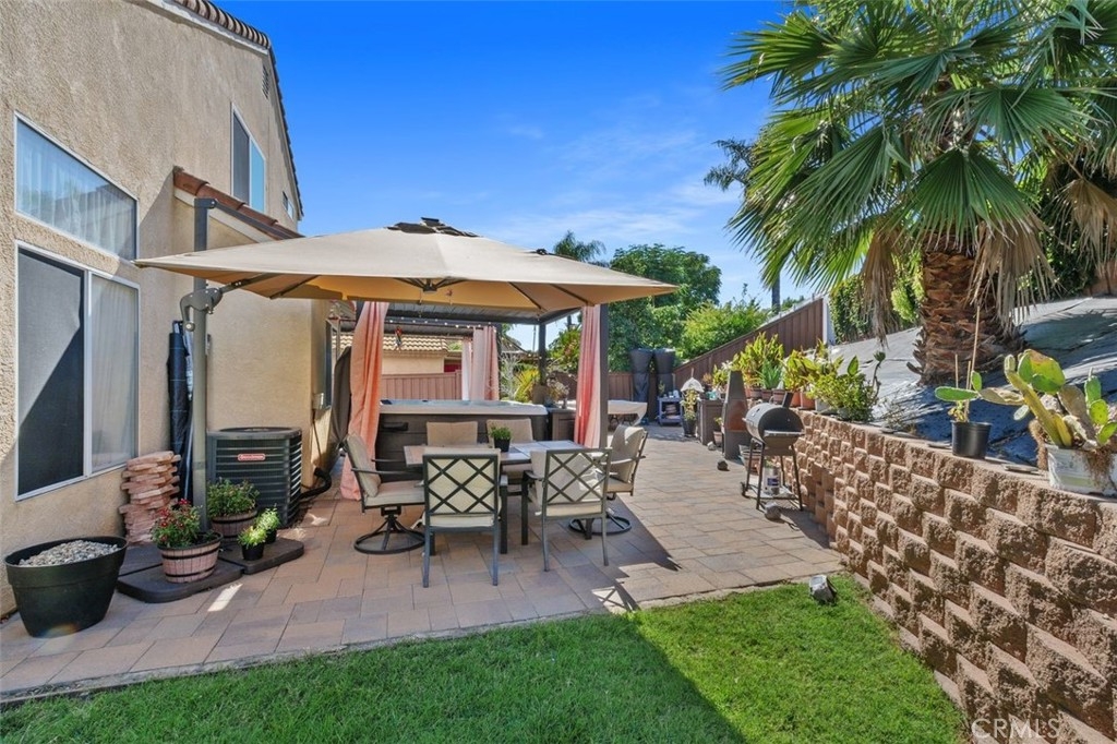 NEW PRICE! Don't miss out on this well priced gem in one of Temecula's most coveted neighborhoods located in highly desirable Paloma Del Sol community. Upon entry this thoughtfully designed living space, includes 3 bedrooms and 3 bathrooms. Step inside to discover a warm and airy floor plan with plenty of natural lighting. The living and family room flow to the functional kitchen, making it easy to entertain. Kitchen features newer dishwasher and new sink aerator. Head upstairs for primary bedroom and two additional bedrooms and two full baths. Perfect for children, guests or a office. Enjoy the extensive amenities throughout Paloma Del Sol: sparkling community pools, lush walking trails, sport courts, parks, playgrounds, and more. All within minutes of top-rated schools and just minutes from shopping, dining, freeway access and Temecula's famed wine country. Added features include new retaining wall in backyard, newer backyard paving with drainage, patio tiling, two covered louvered pergolas, and a six person CalSpa Avalon escape hot tub. Newer AC unit and heater and brand new water heater. Added bonuses include, whole house water filter system, new BHyve orbit irrigation system wifi controlled, newer french patio doors, newly painted fence and upgraded windows upstairs. Front yard has new water saving irrigation and newly painted fence. Custom blinds in primary bedroom and kitchen area. LARGE LOT WITH POSSIBLE ROOM FOR ADU!