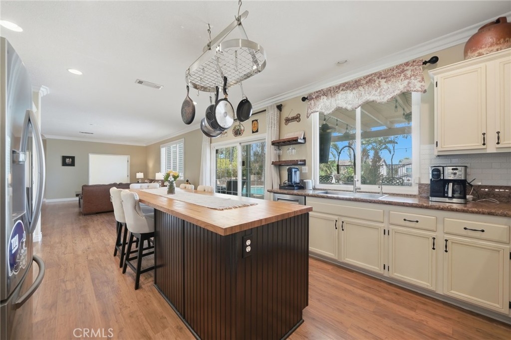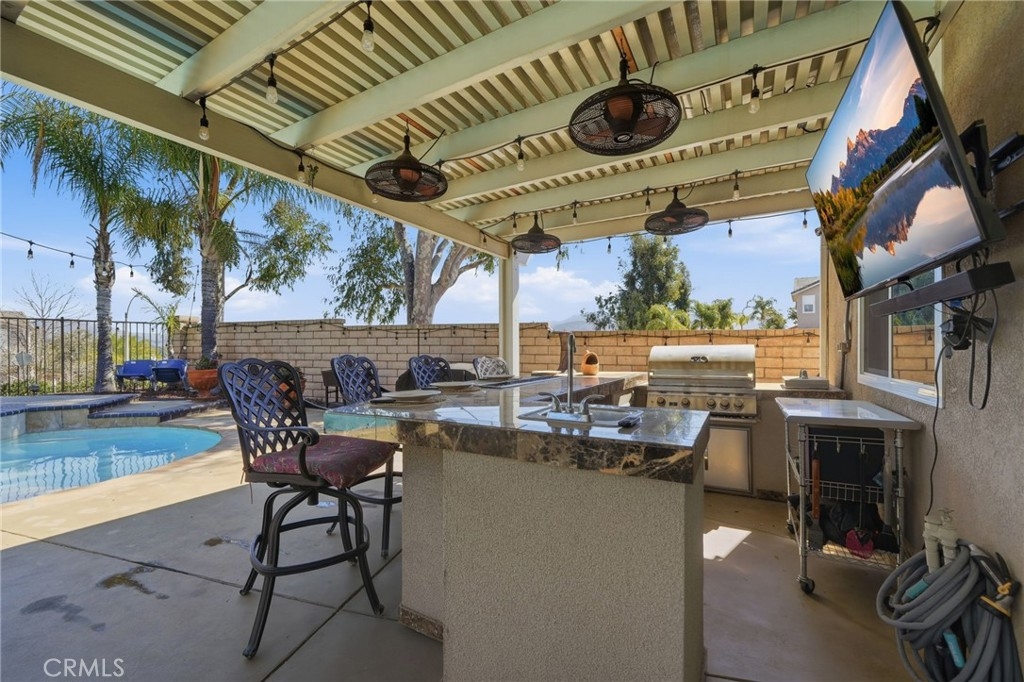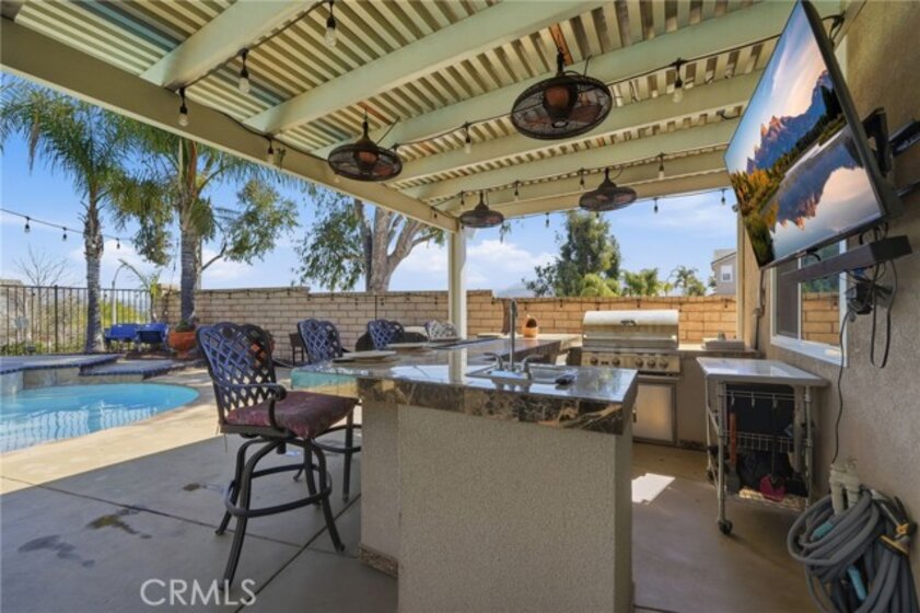 CROWNE HILL, POOL HOME BEAUTY PERFECTLY LOCATED ON A CUL DE SAC WITH PAID SOLAR!! Upgraded windows, floors, AC unit. Situated on a premium corner lot in South Temecula’s highly sought-after Crowne Hill community, this move-in ready 5-bedroom, 3-bath home offers 3,395 square feet of upgraded living space designed for both efficiency and style. At the heart of the home, the kitchen blend’s function and character, highlighted by a 10 ft butcher block island that anchors the space, ideal for prepping, gathering, and everyday connection. The open flow into the main living areas create a sense of warmth and comfort. The versatile downstairs den provides the perfect space for a private office, guest retreat, or flex room to fit your lifestyle. Upstairs, a generous loft creates versatile living space ideal for entertaining or relaxing, complemented by spacious secondary bedrooms and a stunning primary retreat complete with a cozy fireplace, private patio, and spa-inspired ensuite bath with a large walk-in closet. Step outside to your private backyard retreat, complete with a saltwater pool and spa, updated pool equipment, and a fully built-in outdoor kitchen with BBQ, grill top, refrigerator, and sink - all designed for effortless entertaining. Additional highlights include paid solar, upgraded windows and slider, new AC, new flooring in bedrooms and den, and a Nest system for modern efficiency. Located minutes top-rated schools, shopping, dining, wine country, and Pechanga Casino, this home delivers the space, upgrades, and lifestyle today’s buyers are looking for. Don’t miss your opportunity!