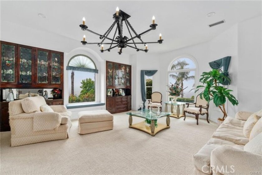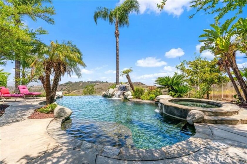 Set alone at the top of a hill, this Mediterranean-style 4-bedroom, 5-bathroom home offers unmatched privacy and breathtaking panoramic views of Temecula and Murrieta. With no neighboring homes above, the property features an infinity-edge pool and spa that appear to spill into the valley below — a truly unique and serene backdrop. Inside, you'll find a spacious layout with marble flooring, a large kitchen, formal living and dining areas, a dedicated office, and a 4-car garage. The upstairs balcony off the primary suite provides a peaceful spot to soak in stunning sunsets and sparkling city lights. The home is move-in ready with its original elegance and thoughtful upkeep, or ready for those who wish to personalize it with contemporary updates. With ample space both inside and out, it’s an ideal setting for entertaining or raising a family — all while enjoying one of the most scenic and private view lots in Temecula.
