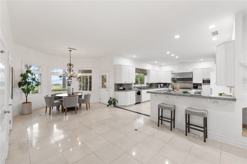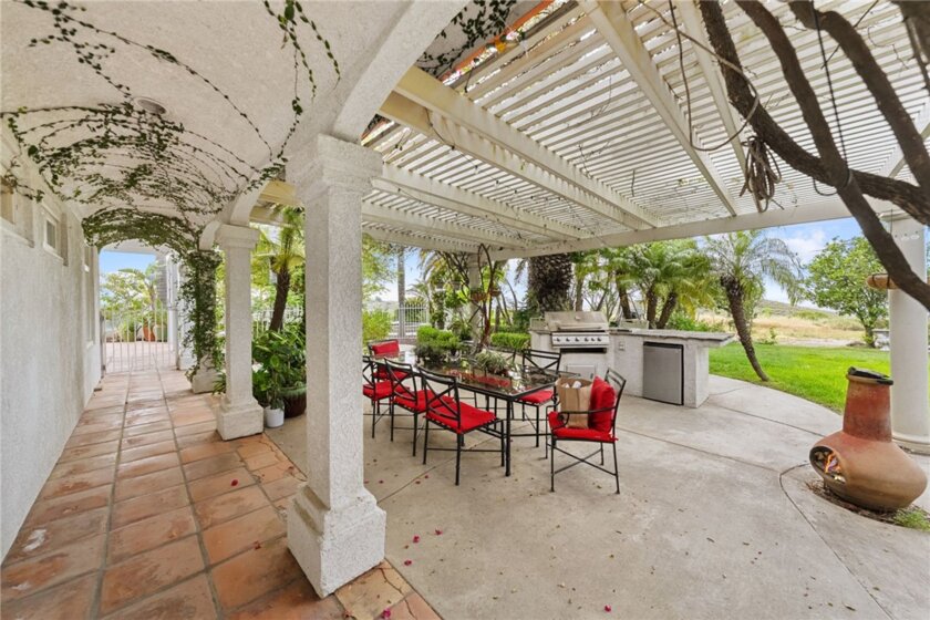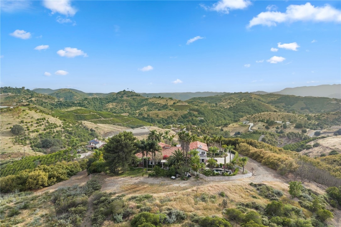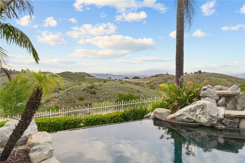 Perched at the top of the hill with breathtaking views, this Mediterranean-style estate is all about privacy and that “wow” factor the second you pull up. With 4 bedrooms and 5 bathrooms, the home takes full advantage of its setting with sweeping panoramic views across Temecula and Murrieta. The backyard is the showstopper as it sits on 5 acres with an Avocado Grove. An infinity-edge pool and spa that feel like they disappear right into the valley, creating a backdrop you just don’t come across often. It’s quiet, private, and built for those sunset evenings Temecula is known for. Inside, the layout is spacious and functional with marble flooring, a large kitchen, formal living and dining areas, and a dedicated office. The 4-car garage gives you plenty of room for cars, toys, or storage. Upstairs, the primary suite has its own private balcony where you can take in the city lights at night and unwind at the end of the day. You wouldn't believe you're only 10 minutes from town, which makes it a breeze to run errands. Whether you’re entertaining, hosting family, or just want space and privacy, this is one of those rare view properties that really delivers.
