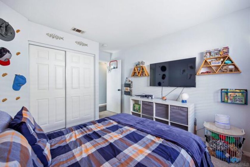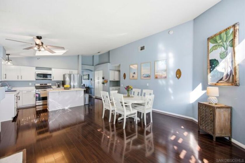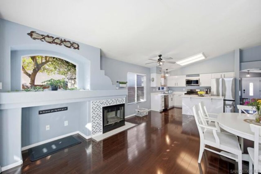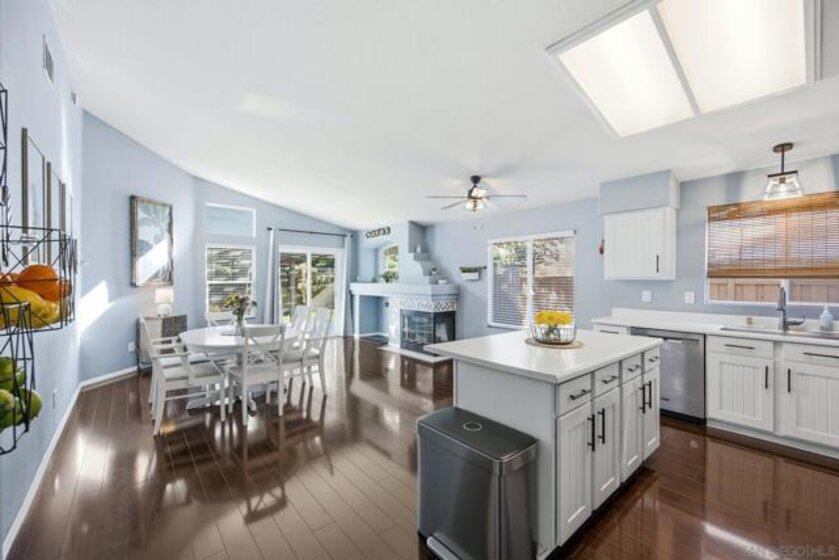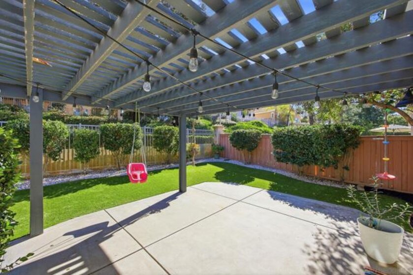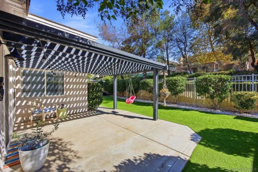 This stunning 1,572 sq/ft single-story home in the highly desirable Paloma Del Sol community features a bright, open floor plan with three bedrooms, two bathrooms, and soaring vaulted ceilings. The interior boasts a modern kitchen with refaced soft-close cabinets and stainless steel appliances, stylish laminate and tile flooring, and a primary suite with a custom closet system. Tesla charging station in the garage! The exterior is equally impressive, offering a private backyard with low-maintenance turf, lush landscaping, and a patio cover that backs onto a quiet, association-maintained greenbelt. Complete with a leased solar system for only $98/mo and access to premium community amenities like five pools, spas, and sports courts, this turnkey residence offers the perfect blend of comfort and efficiency.