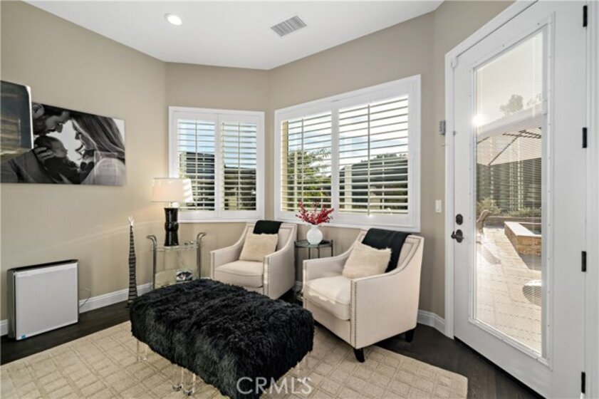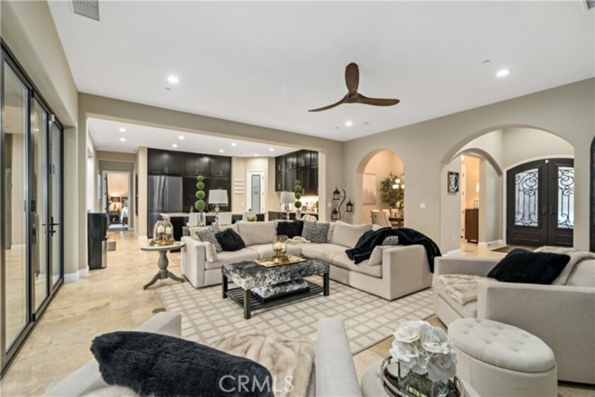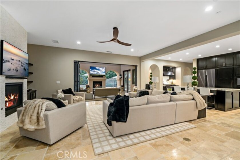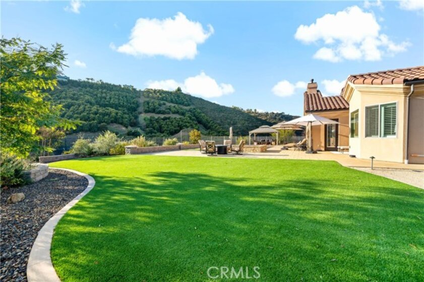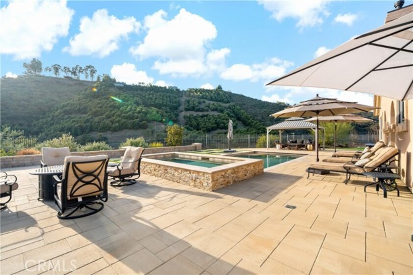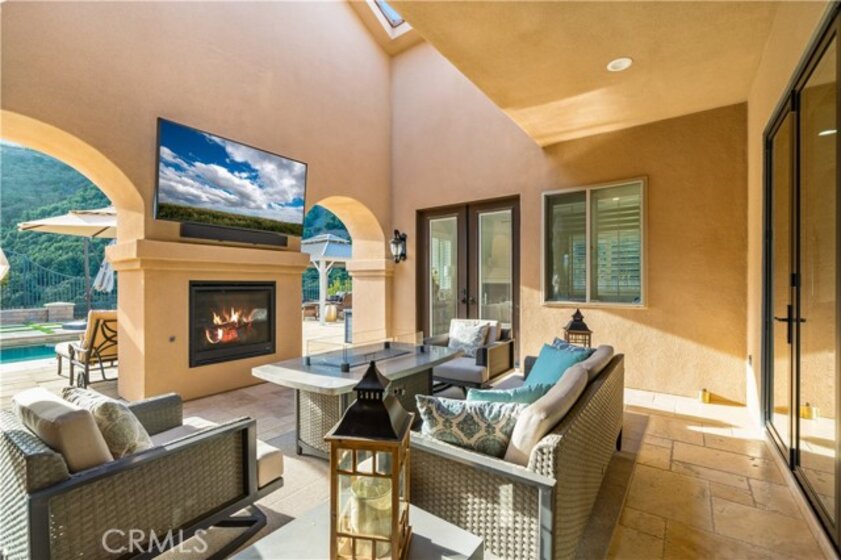 Welcome to this private gated Sanctuary located in De Luz “where the sun breaks through the mist”, located approximately 10 miles from the Pacific Ocean. This exquisite property seamlessly blends sophistication with the tranquility of its surroundings, creating a captivating, welcoming & serene retreat. Enter through private custom gates to cool breezes, on this four acre estate. Landscaped grounds lead to an architectural masterpiece that effortlessly marries contemporary design with timeless charm. Upon entering this Mediterranean Tuscan the foyer unveils the impeccable craftsmanship & meticulous attention to detail. The open floor plan bathes the interiors in natural light, accentuated by the 12-foot ceilings & Versailles laid travertine floors, complemented by wood floors in the bedrooms. The gourmet kitchen is a culinary haven where functionality meets aesthetics. Custom cabinetry & high-end Decor appliances, including a built-in refrigerator, freezer, microwave, warming drawer, dishwasher, & a 48-inch built-in 7-burner cooktop with dual ovens, beckon culinary creativity. The residence boasts spacious living areas, including a cozy family room with a fireplace for unwinding after exploring nearby wine country. Elegant formal dining & intimate living rooms provide an ideal setting for hosting memorable gatherings. A private office space caters to modern lifestyle demands & can easily convert into a 4th bedroom. The master suite is a haven of luxury, featuring a dual-sided fireplace, a private sitting area, & a spa-like bathroom that beckons for relaxation. There are 2 more bedrooms each w/ensuite baths. Stepping outside through accordion glass doors, merging indoors with the outdoor seating, fireplace, outdoor kitchen & bathroom, creating the perfect setting for al fresco entertaining. The saltwater pebble sheen pool, equipped with a retractable cover & a spa accommodating 20 people promise ultimate relaxation. Beyond the pool, a bocce ball court with its crushed oyster shell playing field, providing a unique & engaging recreational space. The property features an small orchard with a variety of fruit trees, while the expansive yard boasts drought-tolerant landscaping with native plants & trees. Multiple areas could serve as a location for an ADU or additional agriculture. This property invites you to experience the epitome of gracious living in the heart of Temecula's scenic beauty. Welcome home to a lifestyle of sophistication & serenity.