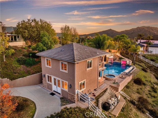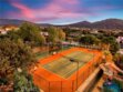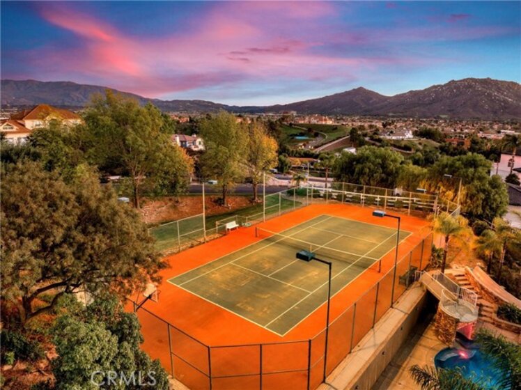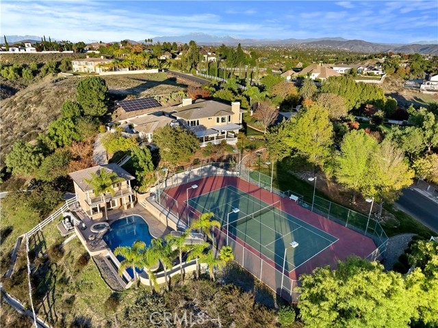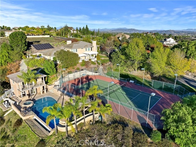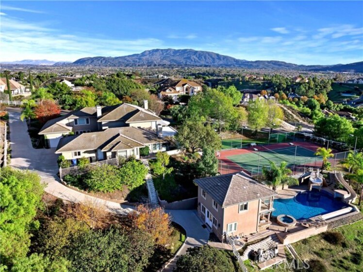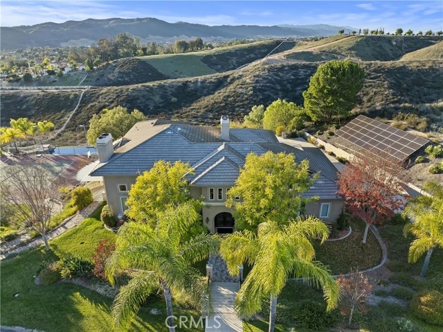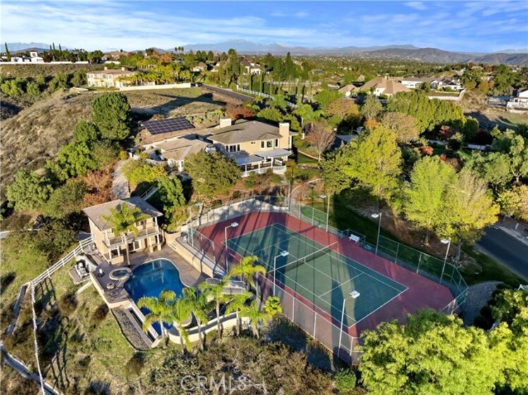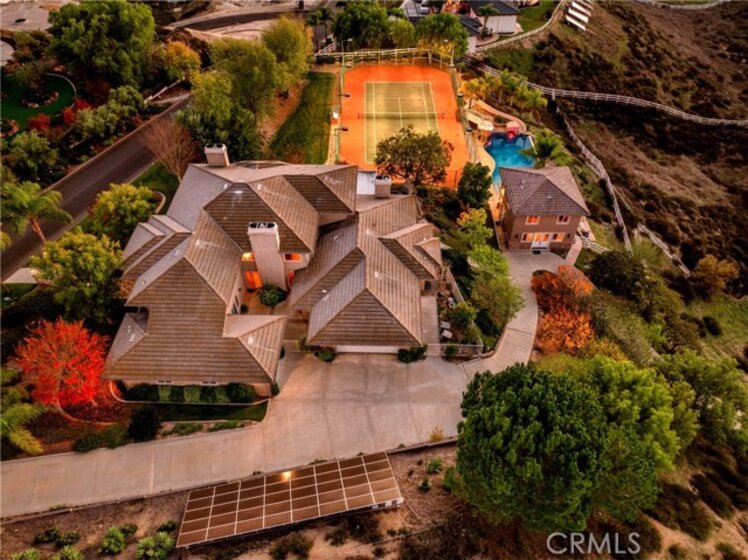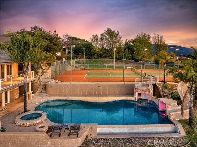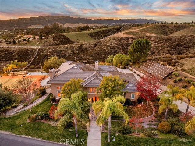Prestigious Santiago Estates — Temecula’s premier address. Ideally positioned along “Millionaire Row,” this refined estate spans nearly 4 private, usable acres, offering serene views, exceptional privacy, and an elegant residence designed for luxury living. The home showcases 5 spacious bedrooms, including a main-floor primary suite, along with a sophisticated formal living room, formal dining room, and a private executive office. Light-filled interiors, high ceilings, and three wood-burning fireplaces create an atmosphere of warmth and timeless style. The gourmet kitchen features granite countertops, double ovens, stainless steel appliances, and an inviting breakfast nook that opens seamlessly to the estate’s outdoor living spaces. The grounds are nothing short of resort-caliber. Enjoy a lighted tennis court, expansive entertaining patios, and a dramatic infinity-edge pool enhanced by waterfalls, a slide, and a diving platform—an entertainer’s paradise and a true retreat. A beautifully designed guest house provides exceptional versatility with a full kitchen, bathroom, and an upstairs family room with a private balcony—ideal for extended stays, multi-generational living, or a high-end studio. With abundant additional land for horses, vineyards, orchards, or future enhancements, plus paid-for solar, this estate offers both luxury and long-term value. Perfectly located just minutes to town, shopping, dining, and Temecula’s renowned Wine Country—this is an extraordinary offering in one of the valley’s most prestigious and sought-after communities.