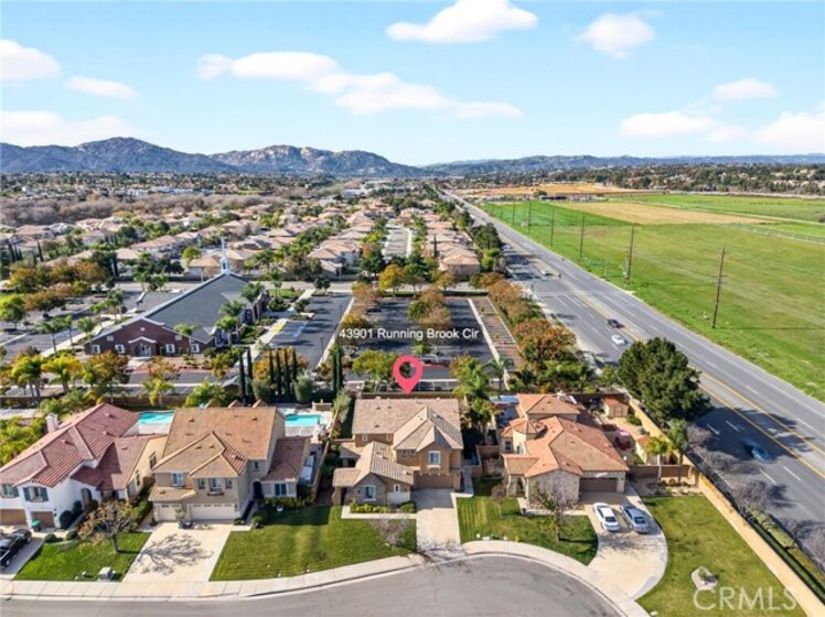 MODERN, UPGRADED, and ideally located, welcome to 43901 Running Brook in desirable South Temecula. Tucked away on a quiet cul-de-sac, this beautifully maintained home offers the perfect balance of style and location. The property also features a spacious 3-car garage, providing ample parking and storage in a highly desirable South Temecula location. The home features a bright, open floor plan with a modern, upgraded interior designed for effortless everyday living and entertaining. The downstairs showcases beautiful porcelain tile flooring, adding durability, elegance, and a clean contemporary look throughout the main living areas. The chef’s kitchen is a true highlight, featuring white shaker cabinetry, quartz countertops, a large waterfall center island, stainless steel appliances, open shelving, and recessed lighting, all flowing seamlessly to the backyard and ideal for indoor-outdoor living. The stylish dining room includes a tray ceiling, modern statement lighting, and custom wall sconces, while a built-in bar and beverage area with wine storage adds both function and character, making it perfect for hosting and everyday dining. The primary bedroom serves as a true retreat with a tray ceiling, abundant natural light, and a spacious, calming layout designed for comfort. Upstairs, the massive loft offers incredible flexibility and can be used as a media room, game room, home office, gym, or additional living space, making this home perfect for a large or growing family. Step outside to a beautifully well-maintained backyard with no rear neighbors, providing added privacy and a peaceful setting for relaxing or entertaining. The location truly sets this home apart, with walking distance to Vail Ranch Middle School, just minutes from Great Oak High School, nearby parks, and all that South Temecula has to offer, including shopping, dining, the famous Temecula wineries, and Pechanga Resort Casino just minutes away. This is a rare opportunity to own a move-in-ready home in one of Temecula’s most sought-after neighborhoods.