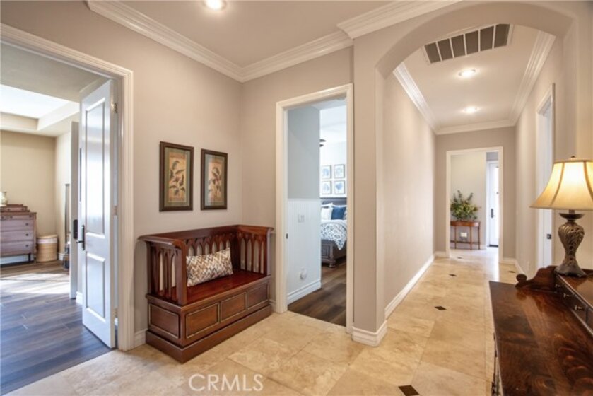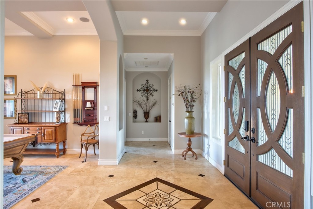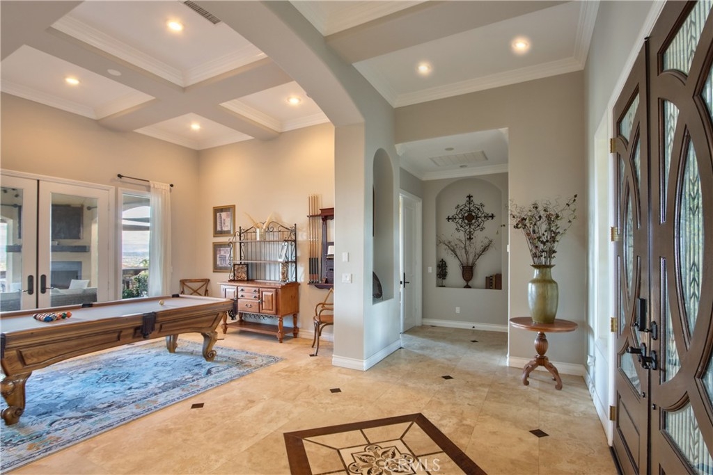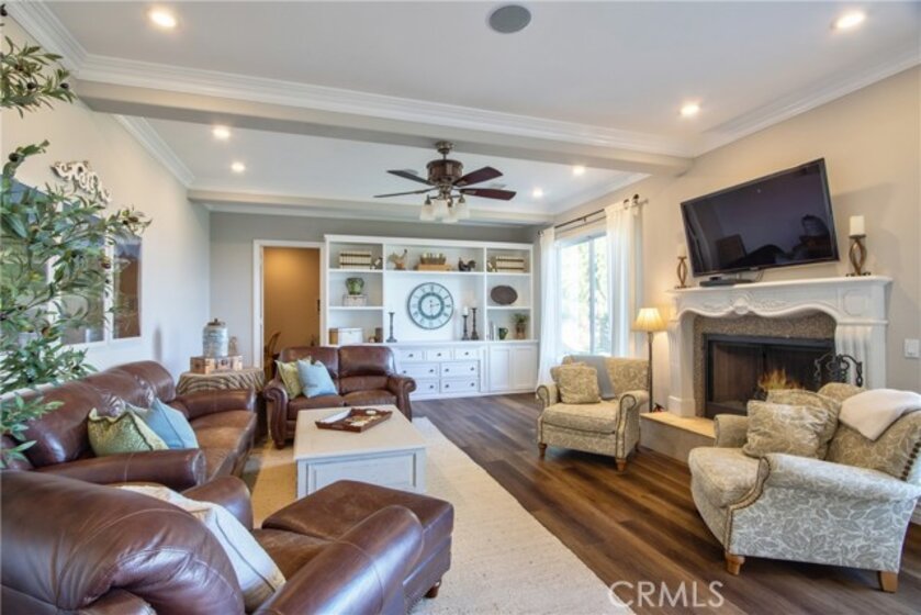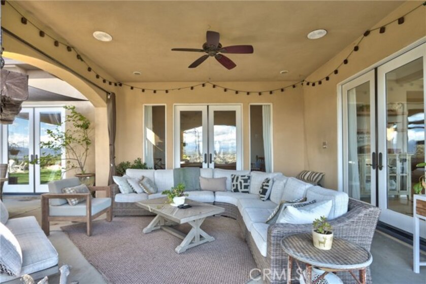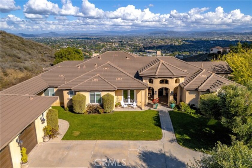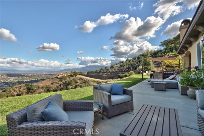 COUNTRY LIVING WITH INCREDABLE VIEWS ONLY 8 MINUUES TO THE FREEWAY, SHOPPING AND RESTAURANTs AND 15 MINUTES TO THE WINERIES. Beautiful 4 Bedroom 3-1/2 Bath 4,386 sq. ft. in the prestigious De Luz community of Temecula offers a light & bright home with an open feel. Breathtaking views city lights, views of Big Bear, Idyllwild & Palomar Mountain. Step through the beautiful double front doors, you'll notice the entire home is filled with natural light. Featuring elegant travertine flooring, a formal living and dining area with ceilings over 10 feet high. The home offers tall ceilings throughout including 8 foot doors throughout, wide hallways, 5 inch base boards, crown molding, beautiful coffered and tray ceilings. A spacious primary suite boasts 12-foot ceilings, French doors to the backyard, a luxurious bath with a walk-in shower, soaking tub, sitting area, large walk in closets and custom wood cabinetry. The gourmet kitchen is truly a chef’s delight, featuring granite countertops, custom wood cabinetry, stainless steel built-in KitchenAid refrigerator, dishwasher, double wall ovens & microwave including a professional grade Thermador stovetop on natural gas, a very rare find in De luz, wine fridge, a large island, and a walk-in pantry. The family room is open to the kitchen and is equally bright, featuring a cozy fireplace and a flexible adjoining room that can serve as a media or game room. The kitchen, eating area and family room are lined with windows to enjoy the views. The 3 secondary bedrooms are very spacious with two of the bedrooms offering walk in closets and a jack in jill bathroom. The third bedroom boasts a private ensuite bathroom and bedroom with private entrance and patio area would be a perfect multi-generational living. Outside is the perfect with an relaxing entertaining area with a TV, & fireplace. Enjoy a large, built-in barbecue entertaining area with a flat top gill, built-in BBQ, sink and sitting area. An outdoor fire pit, providing the perfect setting to take in those magnificent mountain & city views. With travertine flooring through out the home and new luxury vinyl plank flooring in the bedrooms, enjoy no carpet in the home. The oversized three-car garage is extra deep and could be converted into a ADU. This home is a perfect blend of elegance and functionality. There is room to build another garage, ADU and pool. Home is private and perfect location to enjoy walks or biking with no car traffic.