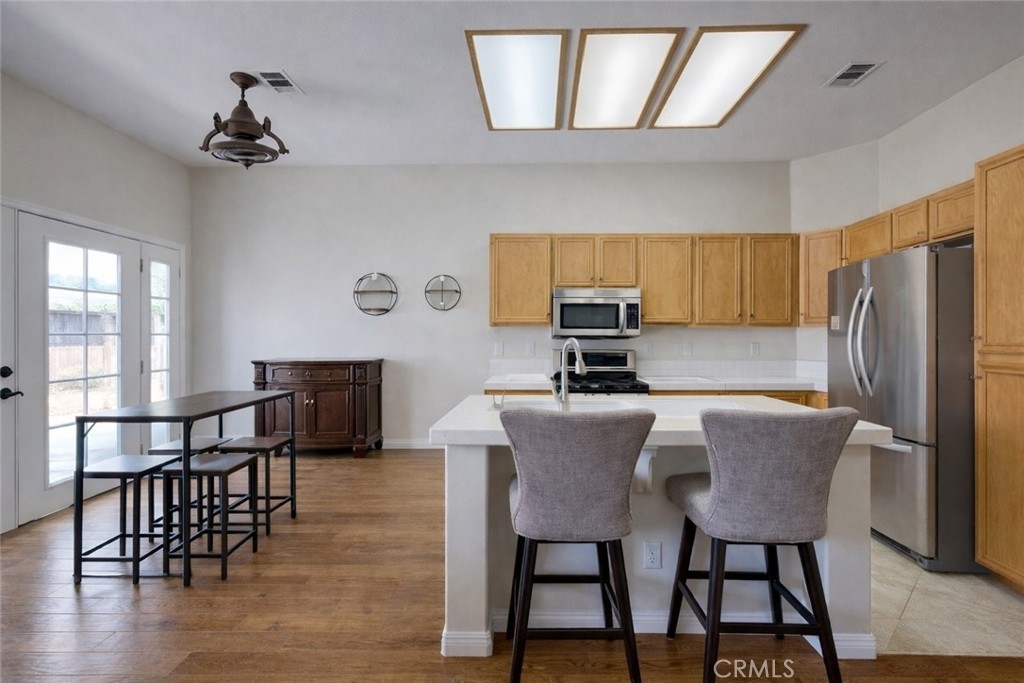 Welcome to this charming 3-bedroom, 2-bathroom home tucked away on a quiet cul-de-sac in one of Temecula’s most sought-after neighborhoods. Designed with both comfort and functionality in mind, this residence offers a spacious and well-balanced floor plan featuring a formal living room and a separate family room complete with a cozy gas fireplace—ideal for relaxing evenings or entertaining guests. The expansive primary suite is a true retreat, showcasing vaulted ceilings, a generous walk-in closet, and an en-suite bathroom with dual sinks. The open-concept kitchen is the heart of the home, offering warm wood cabinetry, a center island, breakfast bar, ceramic tile flooring, and a charming breakfast nook with French doors that lead to the backyard. Additional interior highlights include hand-scraped maple wood flooring, plantation shutters, dual-pane windows, and a convenient indoor laundry room. The attached two-car garage provides direct access for everyday ease. Step outside to a private backyard with a covered patio—perfect for outdoor dining, weekend gatherings, or peaceful morning coffee. With its inviting layout, thoughtful upgrades, and prime location, this home delivers the perfect blend of comfort, style, and convenience. SOME PHOTOS HAVE BEEN DIGITLY ENHANCED.