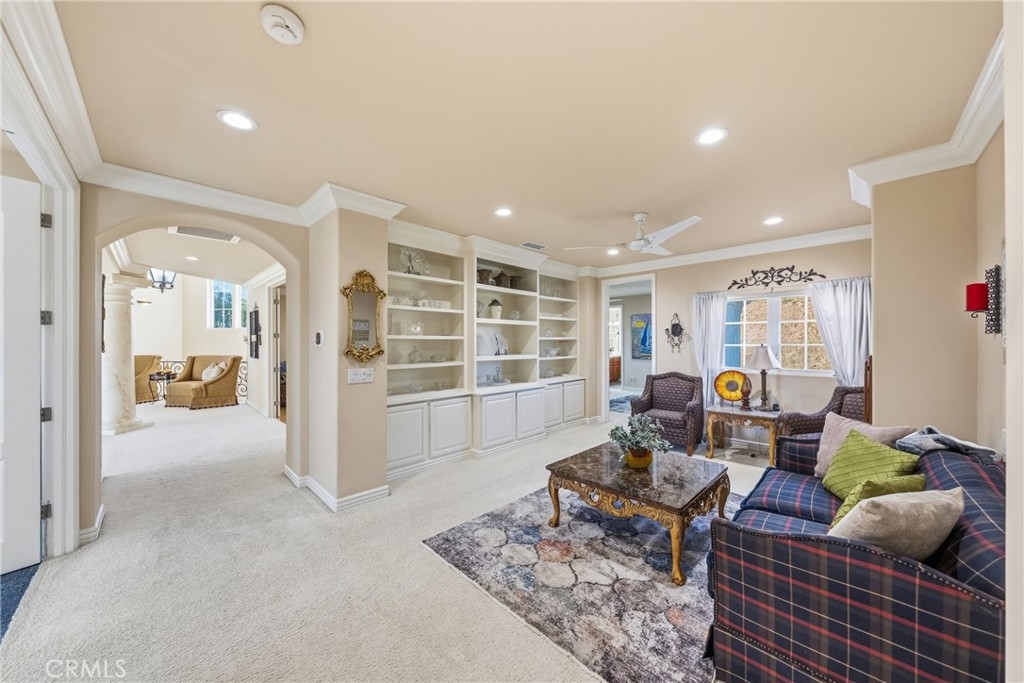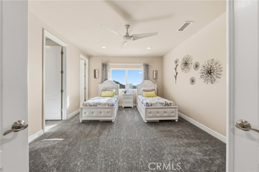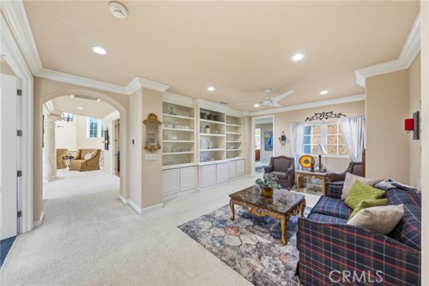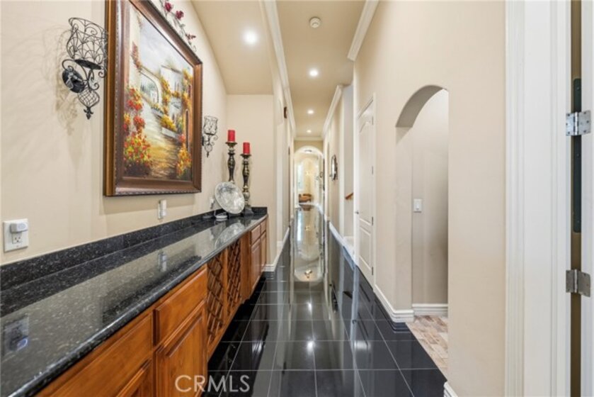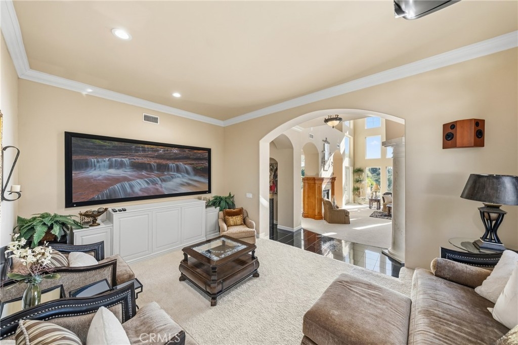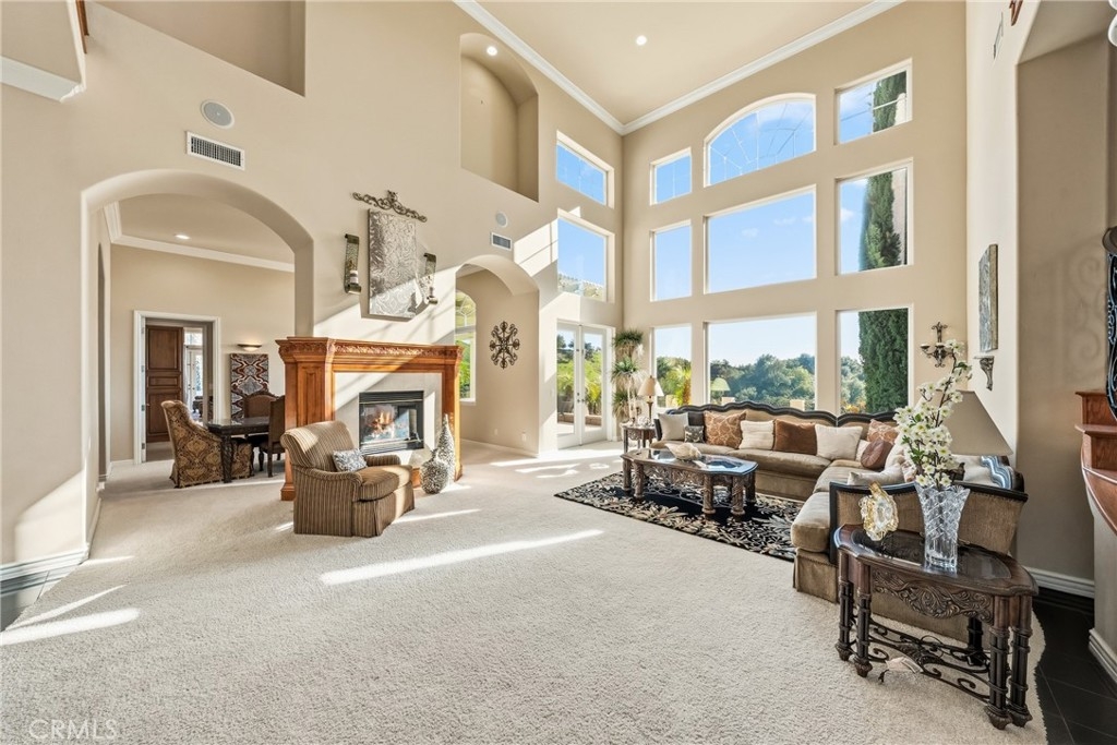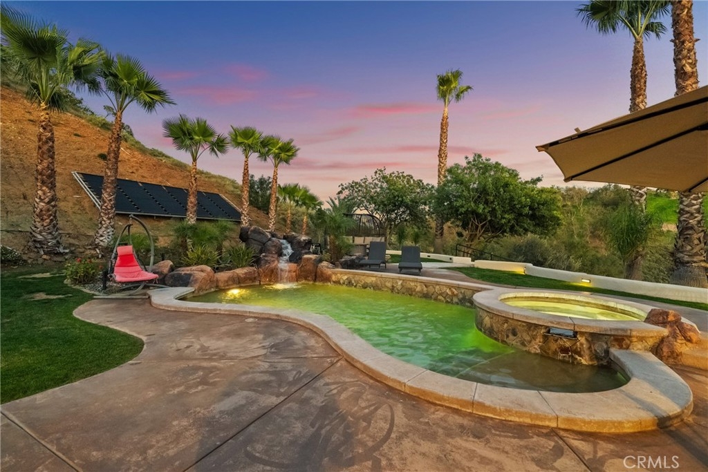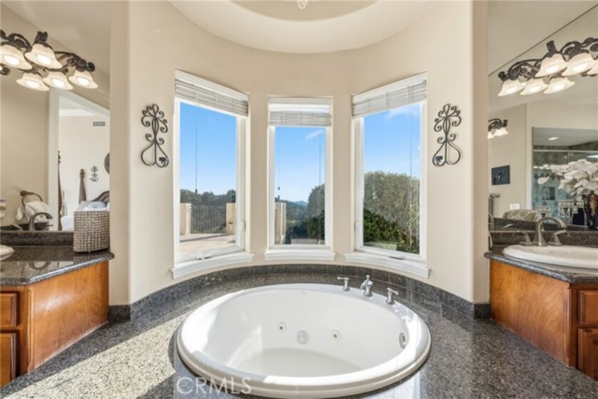 A breathtaking luxury estate in the prestigious gated Renaissance Estates community where timeless architecture converges on five acres and over 7,000 square feet of living space. Masterfully built, this residence has panoramic picturesque views of surrounding hills and valleys, tranquility and privacy. Experience high-end living, impeccably maintained landscapes, and various fruit trees, creating an atmosphere that elevates daily living just minutes from Old Town Temecula. The main residence welcomes you through glass double doors and cathedral ceilings with clerestory windows, illuminating the living room with Temecula’s stunning sunrise. Downstairs unveils a unique theater space and a ready-to-install elevator that makes this home stand out from all the rest. A formal dining room with a fireplace is adjacent to the gourmet kitchen that includes a center island with granite countertops, wine rack, butler's kitchen, high-quality milled wood cabinetry, reverse osmosis water system, and top of the line Bertazzoni six burner stove top with electric griddle. In the right wing, you’ll find the primary spa-like suite, which includes a jetted tub, double vanities, oversized closets, and double doors leading to the sweeping terrace overlooking majestic hills. The left wing offers another commodious guest suite with its own entry doors to the home. As you pass through corinthian marble pillars and walk up the grand staircase, you’ll find five spacious ensuite bedrooms with generous closet spaces, bathrooms, and a bonus room with built-in shelving. Additional home features include thirteen foot ceilings, a laundry chute, and lots of storage space. Entertain with ease when you step into the outdoor living space where you’ll find a spa, pool with its own paid-off solar, and a winding path leading you down to multiple fruit trees and vines. The separate guest house above a two car garage offers multi-generational living and includes a full kitchen, living room, one bedroom, and a full bath. Outdoors you’ll also find an additional car garage, comprehensive security system, and a brand new Generac generator with wifi. This home is a rare opportunity to own a private luxury residence in the heart of De Luz with close access to the 15 freeway.