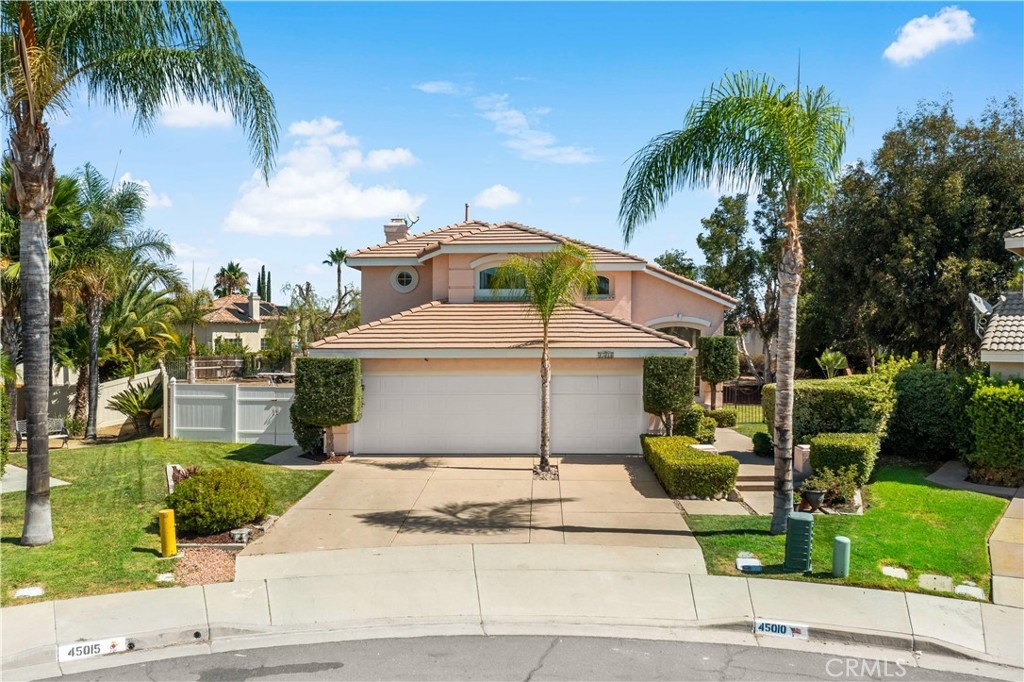 Welcome to the highly sought after Redhawk community featuring top rated schools (including Great Oak High School), low taxes and low HOA. This lovely POOL home situated on a cul-de-sac features nearly 1/2 an acre of usable land. Just imagine morning coffee from your upstairs deck basking in the gorgeous VIEW of Palomar Mountain in the distance! Enjoy the freshly painted exterior and interior of this home, too. White painted kitchen cabinets and walk-in pantry. Guests will enjoy the downstairs bedroom this home offers including tasteful glass French door entry. There is also a downstairs bath with step-in shower. Impressively open, tall ceilings at point of entry. The great room fireplace is ideal for enjoying our chilly TEMECULA winter evenings. The sizable primary suite includes walk-in closet, dual vanity sinks, separate soaking tub and shower. The pool was resurfaced and refreshed just a couple of years ago. Plenty of side and backyard space so bring your toys! 3-car garage. Conveniently located near TEMECULA wineries, restaurants and interstates.