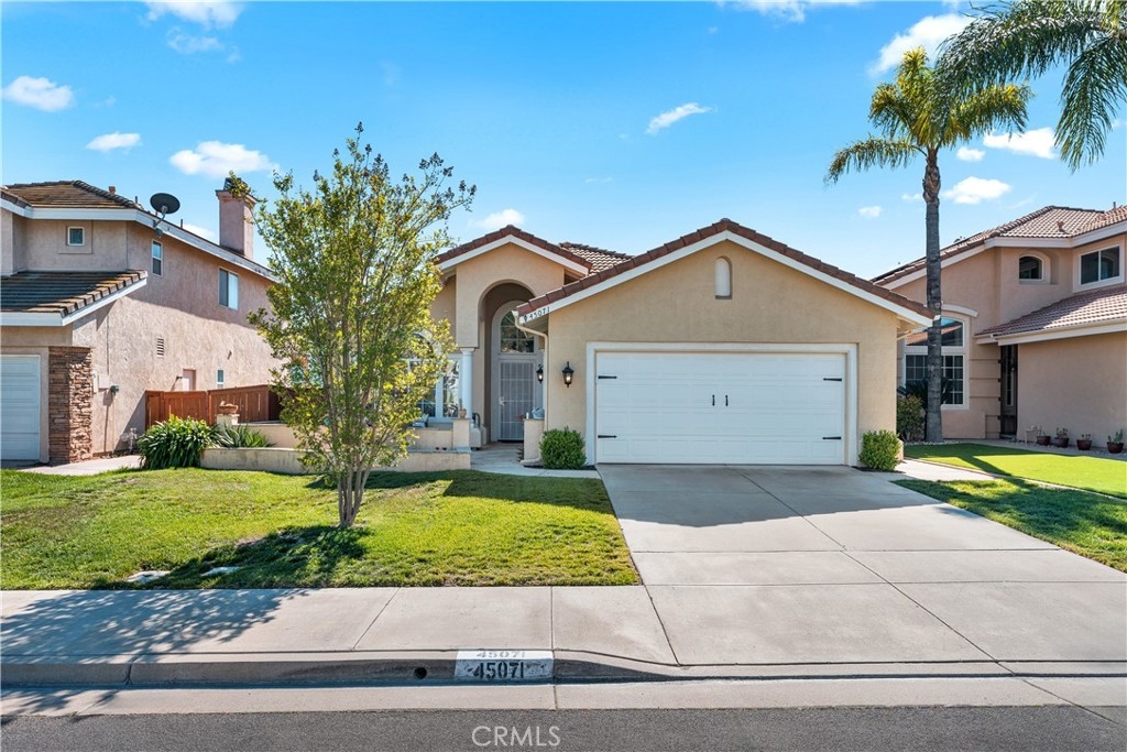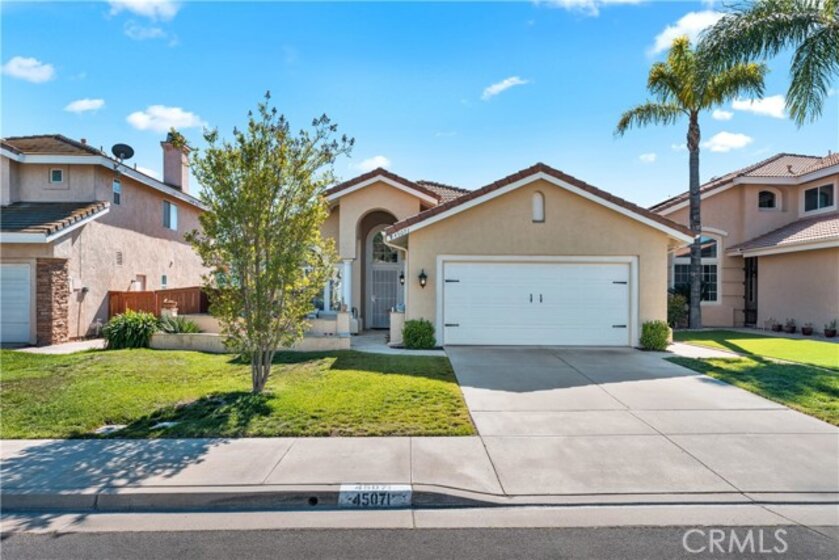 Welcome to 45071 Corte Bravo – A Charming Single-Story Gem in the Heart of Temecula Nestled in a serene and well-maintained neighborhood of Bridlevale, this beautifully appointed single-story home offers the perfect blend of comfort, style, and energy efficiency. Featuring a classic Mediterranean exterior with beige stucco walls and a red-tiled roof, the property boasts excellent curb appeal and a welcoming front porch framed by elegant white columns. Step inside to discover a spacious and light-filled interior with central air and electric cooling, ceiling fans, and tasteful finishes throughout. The open-concept layout includes a modern kitchen equipped with a dishwasher and gas dryer hookup, ideal for everyday convenience. The living areas are thoughtfully designed for both relaxation and entertaining, with large arched windows that invite natural light and offer scenic views of the surrounding mountains. Outdoors, enjoy a private backyard oasis complete with a covered patio, pergola, and lush landscaping—perfect for hosting gatherings or unwinding under the stars. Solar panels add eco-friendly value, reducing energy costs while embracing sustainable living. Located near top-rated schools, shopping, and dining, this home is a rare find in one of Temecula’s most desirable communities. Don’t miss the opportunity to make it yours!