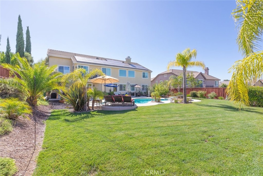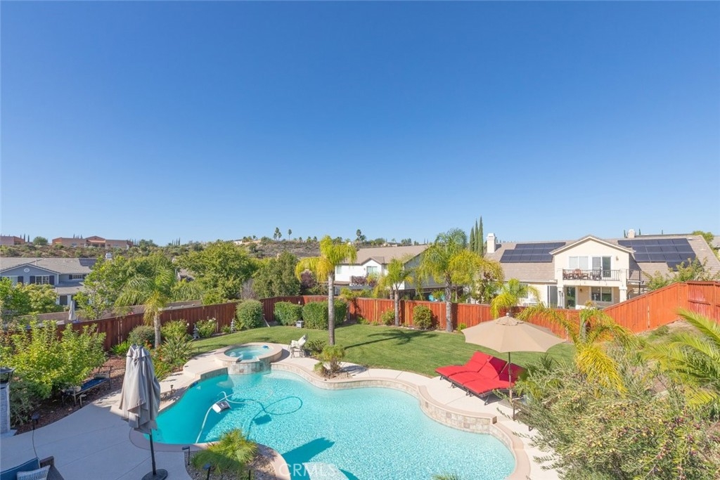 Picture yourself in this stunning two-story home that truly checks every box for comfort, style, and functionality. This home has over $200K in upgrades throughout and offers a spacious 4 car garage. From the moment you step inside, you’re greeted by elegant formal dining and living areas that seamlessly flow into an expansive family room. The heart of the home is the modern kitchen, showcasing brand-new light and bright quartz counters, top-of-the-line appliances, and an oversized pantry designed and custom wine bar to make both everyday living and entertaining effortless. Sitting on a rare quarter-acre lot, the backyard is your personal retreat. Whether you’re hosting family gatherings, watching kids play, letting pets roam, or simply unwinding, you’ll love the sparkling pool and spa with plenty of space left over for entertaining. The thoughtful floor plan includes a private downstairs bedroom with its own full ensuite bathroom—ideal for guests, in-laws, or multi-generational living. Abundant storage options, a spacious laundry room, and multiple closets ensure the home is as practical as it is beautiful. Upstairs, the oversized primary suite offers its own balcony overlooking the pool, a true sanctuary with a completely remodeled spa-like bathroom featuring a state-of-the-art shower, freestanding tub, and sophisticated lighting. Additional bedrooms are generously sized with brand-new carpet, while a Jack-and-Jill suite and a large bonus room provide even more flexibility for family or work-from-home needs. Located just minutes from Temecula’s award-winning Wine Country, this exclusive neighborhood is highly sought after for its charm, privacy, and convenience. This home is more than a place to live—it’s a lifestyle investment offering luxury, space, and lasting value.