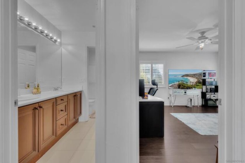 Located in The Fairways community of South Temecula’s highly desirable Redhawk neighborhood, this stunning 4-bedroom, 3-bath home offers luxury, comfort, and exceptional indoor-outdoor living.The thoughtfully designed floor plan features a main-floor bedroom with a private bath, perfect for guests or multigenerational living. The gourmet kitchen has been beautifully remodeled with quartz countertops, premium Thermador stainless steel appliances, a double oven, farmhouse sink, and designer finishes throughout. The spacious family room showcases a custom-built wall unit, cozy gas fireplace, and elegant plantation shutters. Upstairs, you’ll find a versatile loft area and a dedicated laundry room with washer and dryer. The primary suite offers breathtaking VIEWS, a spacious ensuite bathroom, Beautiful new walk-in shower and a generous walk-in closet. Two additional upstairs bedrooms provide ample space and comfort. Step outside to your private backyard oasis — truly an entertainer’s dream — featuring a brand-new outdoor kitchen, a private saltwater POOL with three waterfalls, and a gas-fired fireplace perfect for relaxing on cool evenings. Conveniently Temecula’s renowned wineries, shopping, dining, and top-rated schools.