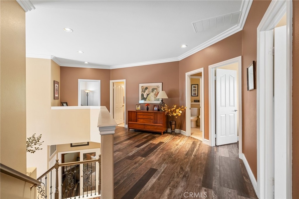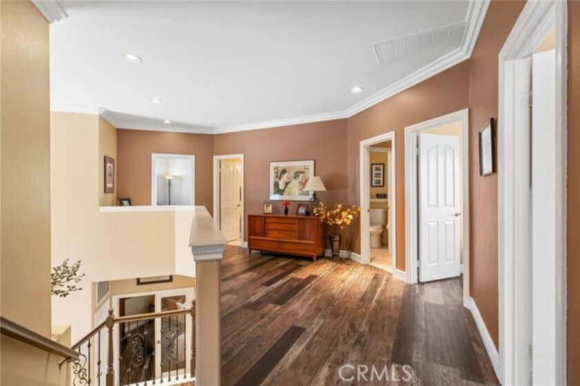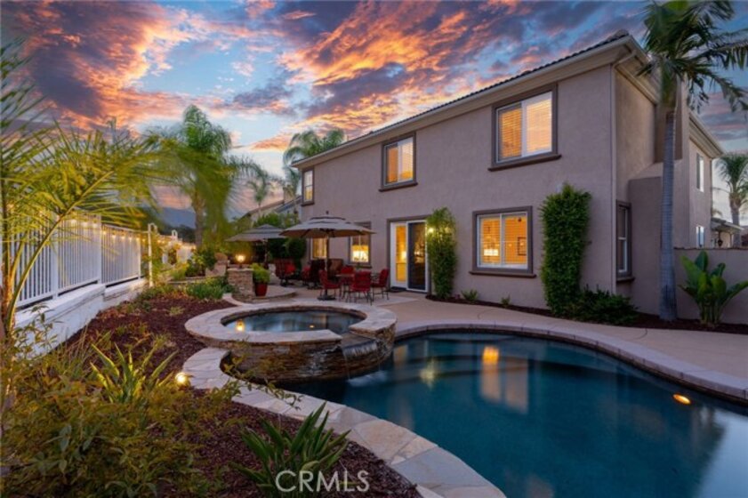 PRICE ADJUSTMENT!! Welcome to the Secured Gated Community of Vintage in Redhawk. This BEAUTIFULLY UPGRADED Home is a private oasis on a stunning cul-de-sac at the highest point of the neighborhood! The home showcases a unique floor plan and is ready for the perfect family! Come through the front gate and into the serene courtyard and enjoy the private sitting area between the single (perfect mancave) and double garages. Inside the stunning custom front door is a formal entry that opens to a grand living room. Crown molding is the perfect accent along with plantation shutters throughout. The family room features a surround sound system, stacked stone wall, media niche with shelves and a raised hearth with gas log fireplace. The remodeled kitchen offers beautiful white cabinets with pull out cabinets, stainless steel appliances, granite slab counters, walk in pantry, and opens to the nook area and family room. One bedroom, with a walk-in closet and full bath will be found on the main floor. Up the stunning remolded staircase, you will find the remaining bedrooms and laundry room. The oversized spacious primary suite has a walk-in closet, granite vanity counters, soaking tub and walk in shower with beautiful frameless glass. The jack and jill style secondary bath also features granite vanity counters. The backyard oasis offers a pebble sheen pool and spa with an in-floor cleaning system, fire pit, built-in BBQ and bar area with extensive use of stacked stone. It is the perfect way to entertain your family and friends. Situated in the highly sought-after Temecula Unified School District—zoned for award-winning schools. Enjoy the best of Temecula living with nearby wineries, charming shops and restaurants in Old Town, world-class golf, hot air balloon rides, wine festivals, Lake Skinner fishing, and more. Low HOA fees, Low Taxes!
