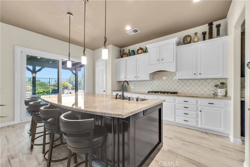 Nestled behind the Security Gates of the coveted "Rancho Madera" Community is 69 of the most exquisite private residences in South Temecula! This hard to find single story offers over 2600 sq ft of the ultimate blend of elegance and tranquility. A gorgeous home, with Spectacular Views that sits above the scenic practice putting greens at Redhawk Championship Golf Course. Walk right out your back gate ! The spacious floor plan features 5 bedrooms ( or 4 plus office ) with one bedroom having it's own private entrance, and a large ensuite with dual sinks, soaking tub, separate shower and walk in closet . An open concept family room and kitchen with upgraded tile, quartzite counters, center island, farm sink, stainless steel KitchenAid double oven, cook top , and a butler's pantry. Situated on a large lot ,the backyard with mature landscaping, a beautiful outdoor fireplace, swimming pool,/spa, viewing deck, and direct access to the golf course, is pure Paradise. Whether enjoying your own private retreat, or hosting backyard barbecues, this is outdoor living at it's finest! Just minutes away from award winning schools, including the highly acclaimed Great Oaks High School, Shopping, Old Town Temecula, Pechanga Resort/Casino and Temecula's world-renowned wineries! One of Redhawk's Hidden Treasures, this is a Jewel. But hurry, as homes like these don't come on the market very often and when they do....... they don't last!