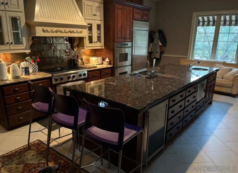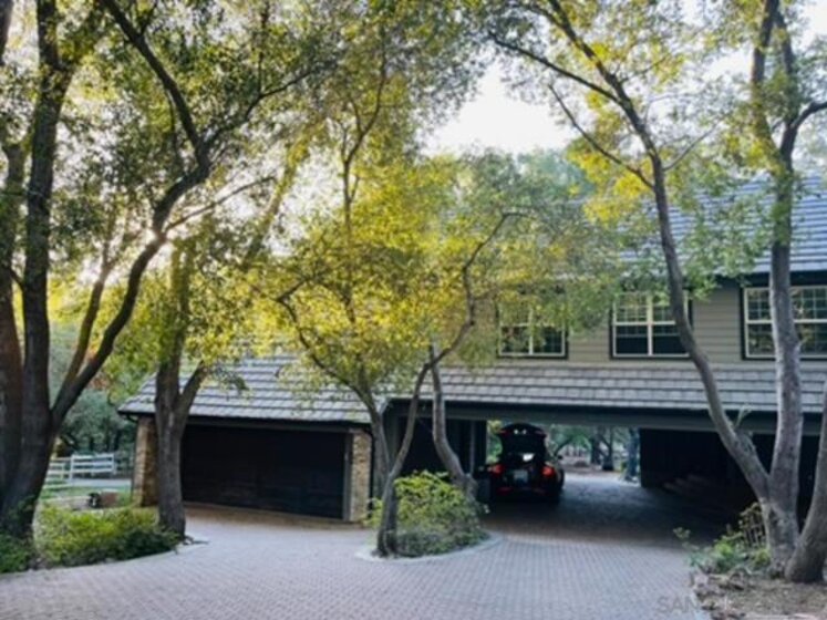 Experience refined living and ultimate privacy in this custom-designed 4,303 sq. ft. Country French estate, perfectly set on 4.52 serene acres bordering the prestigious De Luz community. Surrounded by 200+ mature oak trees, this stunning 4-bedroom, 5-bath residence combines timeless craftsmanship with modern luxury. Step inside to find elegant brick and stone architecture, hand-scraped oak floors, and French doors throughout. The gourmet chef’s kitchen features custom cabinetry, stainless steel appliances, and an impressive 12-foot granite island—a dream for both everyday living and entertaining. The spacious great room offers a cozy fireplace, built-in entertainment center, wet bar, and sound system. The main-level primary suite provides a private retreat with a fireplace, French doors to the patio, a luxurious Carrara marble bathroom with steam shower, soaking tub, and expansive his-and-hers dressing areas. A second bedroom or office and a large laundry room complete the first floor. Upstairs, a private guest wing includes two ensuite bedrooms, two full baths, a kitchenette, and a living area—ideal for extended family or visitors. Outdoors, enjoy an entertainer’s paradise with a covered back porch, Argentine-style outdoor kitchen, wood-fired Italian pizza oven, and room to add a pool, horse barn, studio, or workshop. The gated entry, stamped concrete driveway, and ample parking for 7 vehicles plus RV enhance both convenience and curb appeal. Located just minutes from Old Town Temecula, Promenade Mall, and top wineries, this exceptional estate blends French-