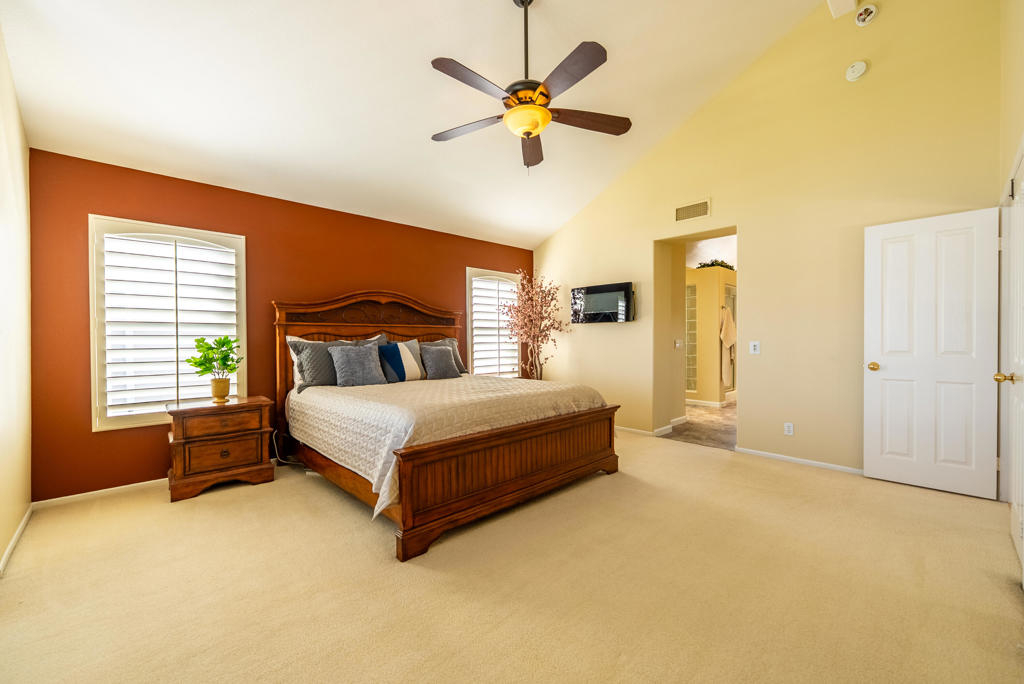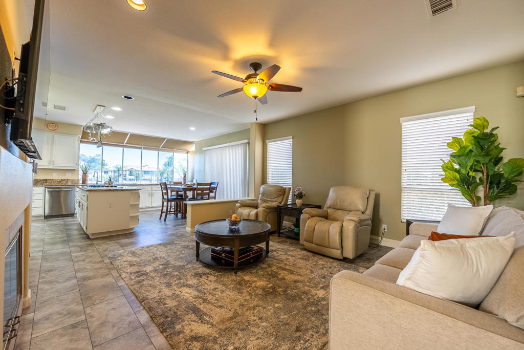 Located in the gated Rancho Serrano community within Redhawk, this beautifully maintained golf course home offers fairway views, flexible living space, and energy efficiency -- all priced to sell at $819,000. Featuring 4 bedrooms and 3 full baths, including a main-level bedroom and bath, this layout is ideal for guests or multigenerational living. Formal living and dining rooms are separate from the open-concept kitchen and family room, creating both elegant and functional spaces. The chef's kitchen offers granite countertops, ample cabinetry, a breakfast nook, and opens to the family room with an electric fireplace and vaulted ceilings. Upstairs, the spacious primary suite includes a large walk-in closet and an ensuite bath with double vanity, soaking tub, separate shower, and wall-mounted electric fireplace. LVP flooring enhances the main living areas, with carpet upstairs and in bedrooms. Indoor laundry room with storage. Finished 3-car garage. Refrigerator, washer, and dryer convey. Paid solar panels provide energy efficiency. Enjoy golf course views from the backyard patio featuring a pergola with awnings -- perfect for relaxing or entertaining. Clean, move-in ready, and located near top-rated schools, shopping, dining, and freeway access.