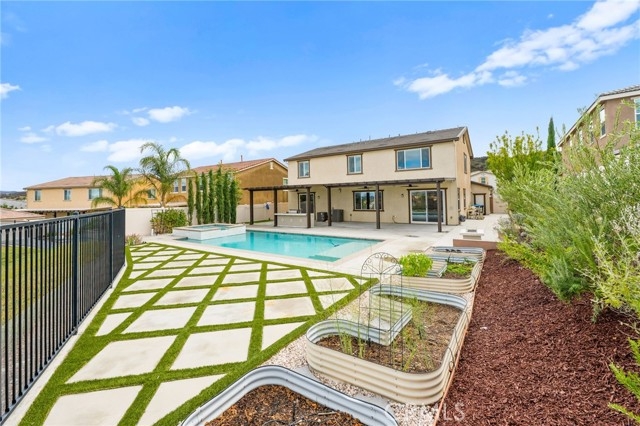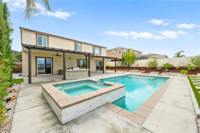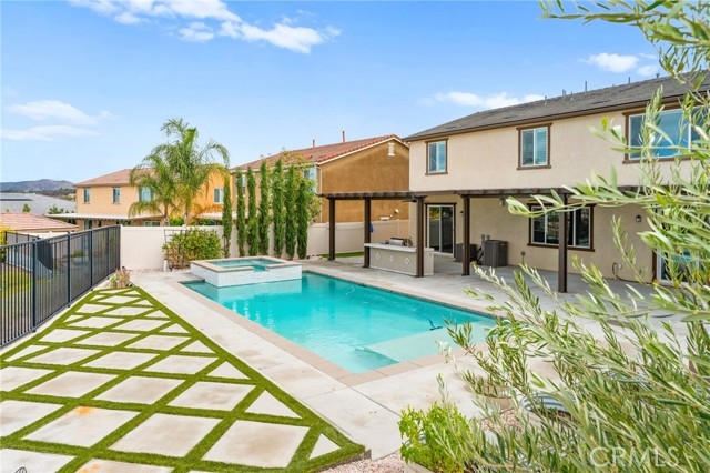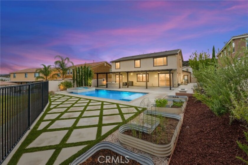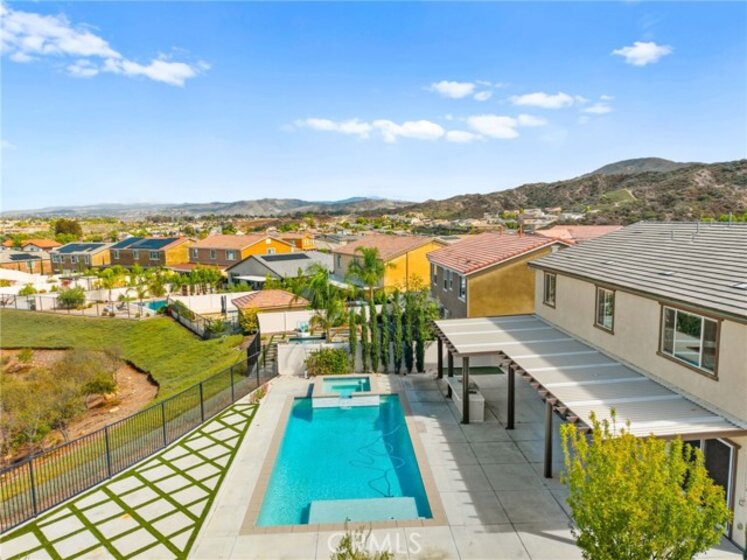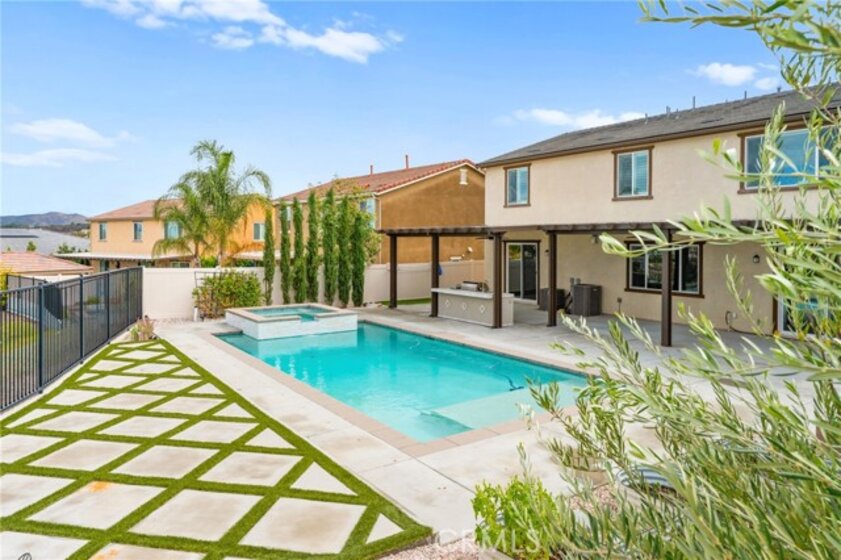 Welcome to 45745 Altree Ct, a stunning Next Gen luxury home nestled in the rolling hills of South Temecula. With over 4,100 sq ft of thoughtfully designed living space, this 7-bedroom, 4.5-bathroom estate offers flexibility, elegance, and comfort for multi-generational living or growing households. Step into the bright, open great room filled with natural light and immediately feel at home. The gourmet kitchen is the heart of the space, featuring an oversized island, quartz countertops, stainless steel appliances, and a gas cooktop. It seamlessly flows into the dining and living areas, complete with a cozy fireplace and picture-perfect backyard views. The main floor also includes a separate, private suite with its own secure entrance. This versatile space offers two large bedrooms, a full bathroom, a dedicated living area, a kitchenette with fridge, sink, and microwave, plus its own laundry room, perfect for in-laws, guests, or extended stays. Upstairs, you'll find a spacious loft, ideal for a media room, home office, or cozy hangout space. The serene primary suite offers breathtaking valley views and a sense of quiet escape at the end of the day. Its luxurious ensuite features dual sinks, a vanity, soaking tub, glass shower, and a generous walk-in closet. Four additional bedrooms are located on the second level, including one with an ensuite bath, plus a full hall bathroom with dual sinks, and an upstairs laundry room. The backyard is your private resort: a sparkling pool and spa take center stage, offering a refreshing escape and the perfect setting for both relaxing afternoons and weekend gatherings. Relax under the expansive covered patio with recessed lighting and ceiling fans, or enjoy outdoor cooking at the built-in BBQ island featuring a fridge, sink, and single burner stovetop. A cozy firepit, raised garden beds, a plumcot and a pomegranate tree, low-maintenance turf, pavers, and expansive views of the Temecula Valley complete this incredible outdoor retreat. Additional highlights include PAID solar, shutters throughout, motorized blinds in the living room and primary bedroom, a water softener, a reverse osmosis system, epoxy garage floors, a security door, and an extended driveway. Situated in a peaceful cul-de-sac in one of Temecula's most desirable neighborhoods, just minutes from award-winning wineries, top-rated schools, parks, shopping, and dining, this home offers elevated living with every convenience at your doorstep.