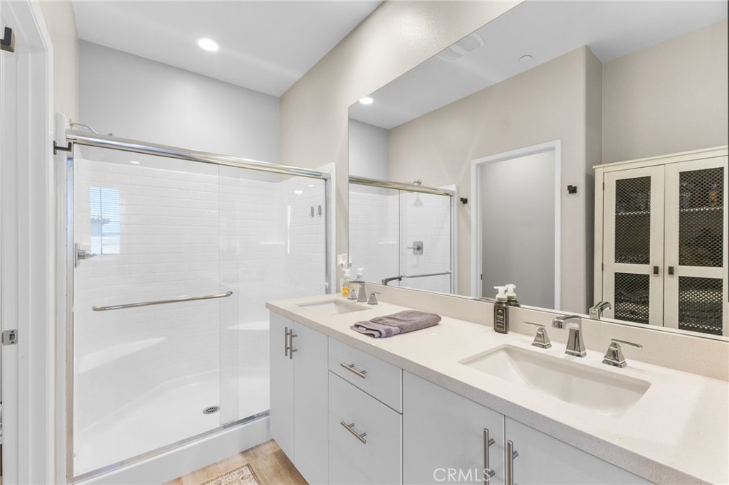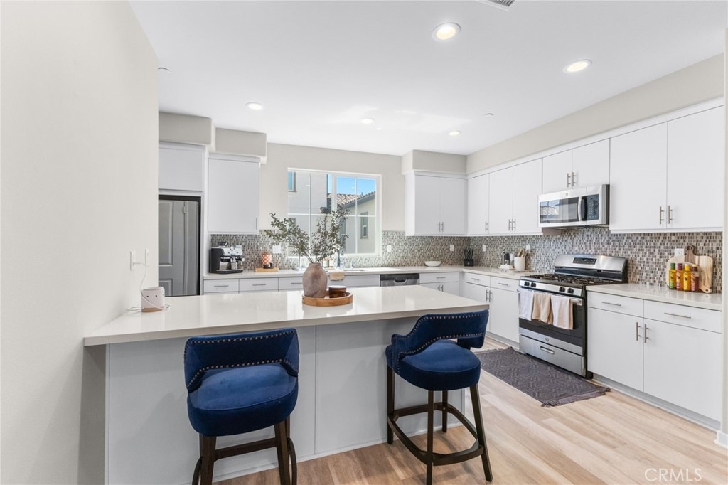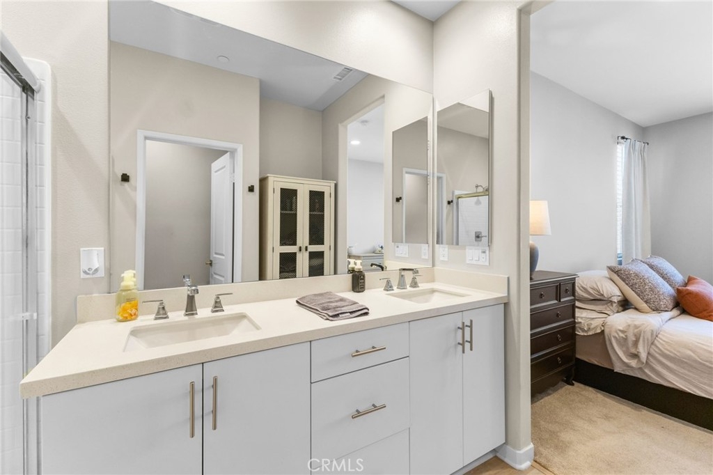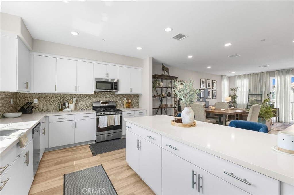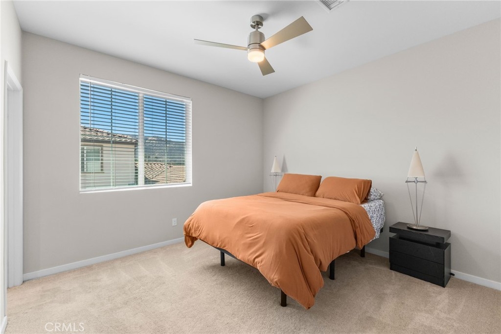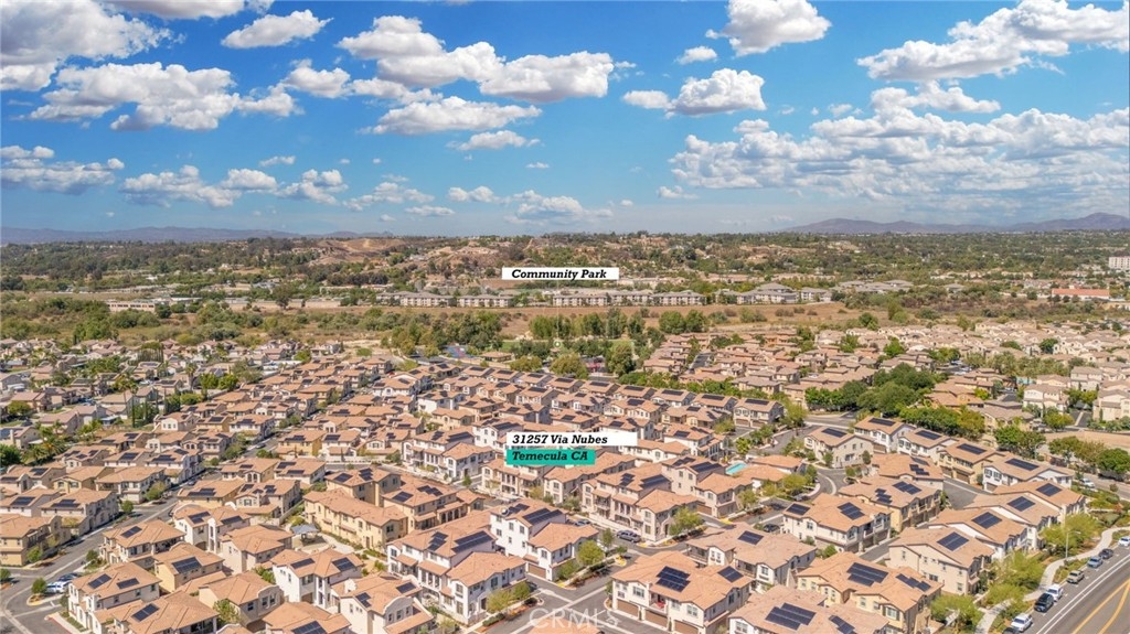 Welcome to Via Nubes, where modern meets smart living in this beautifully maintained 2 bedroom, 2.5 bath condo with a versatile flex space in South Temecula. Featuring fully paid solar, a two-car garage and all appliances included, this home feels larger than many 3 bedrooms thanks to its open-concept the main second level features quartz kitchen counter with designer backsplash, light filled living and dining areas with direct access to a private balcony. The first floor flex room with its own patio is ideal as an office, gym or guest retreat, while the third floor offers two spacious primary bedrooms with en-suites one with two walk-in closets and second with spacious closet. Located in the sought after gated Rancho Soleo community, residents enjoy resort-style amenities including a pool, spa, clubhouse with outdoor kitchen and BBQs, playgrounds, walking paths and a dog park all within minutes of Great Oak High School, Pechanga, Old Town Temecula and Wine Country. With thoughtful upgrades and a prime location, this home is the perfect blend of comfort, style and convenience.