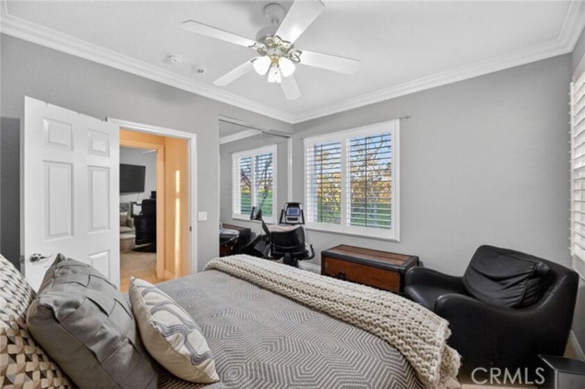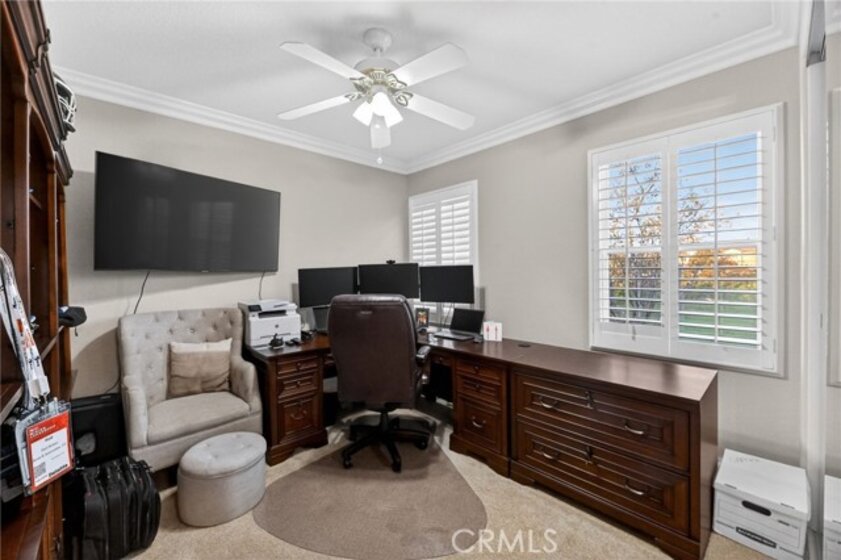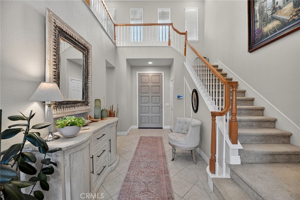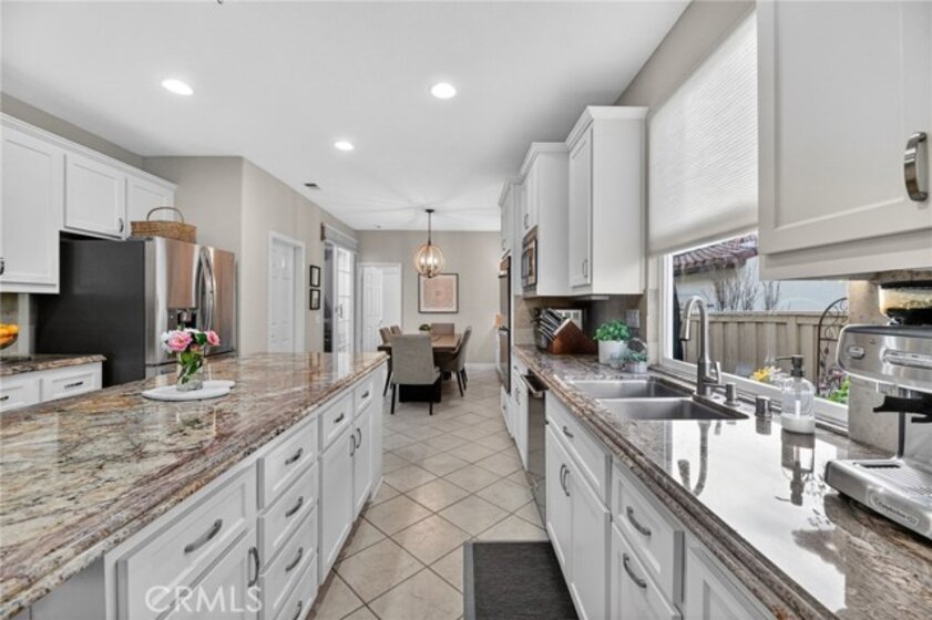 Welcome to this beautifully appointed 4-bedroom, 3-bathroom home with an option for a 5th bedroom, offering 2,849 sq ft of spacious living in the highly sought-after Redhawk community of Temecula. Ideally situated near the Redhawk Golf Course and within the boundaries of award-winning Great Oak High School, this home blends comfort, functionality, and timeless style. From the moment you enter, you’re greeted by soaring ceilings, expansive windows, and a seamless open-concept layout designed for both everyday living and entertaining. The formal living and dining areas connect effortlessly and are filled with natural light, enhanced by inviting golf course views. The chef’s kitchen is the heart of the home, featuring slab granite countertops, abundant cabinetry, a walk-in pantry, stainless steel appliances, recessed lighting, and a 6-burner Viking cooktop, all opening to the spacious family room with a cozy gas fireplace and custom built-in entertainment center. The home has been thoughtfully updated with roughly $75,000 in recent upgrades, including refreshed kitchen cabinetry, a remodeled upstairs bathroom, fresh interior paint, updated landscaping, elegant chandelier lighting, electronic window shades, new retractable door screens, and added security lighting and cameras. The main level includes a full bedroom and bath, ideal for guests or a home office, along with a laundry room offering a sink and extra cabinetry. The 3-car garage provides ample storage plus a dedicated workshop area with built-in cabinets. Upstairs, a versatile loft offers space for a media room or optional bedroom conversion. The expansive primary suite captures peaceful golf course views and includes dual closets, granite vanities, and a relaxing soaking tub. The secondary bedrooms are generously sized and filled with natural light. Outside, enjoy a covered patio perfect for relaxing or entertaining, surrounded by drought-tolerant landscaping with turf in the front and back yards for low-maintenance living. Conveniently located near top-rated schools, shopping, dining, Pechanga Resort & Casino, and Temecula Wine Country, this home offers an exceptional lifestyle in one of Temecula’s most desirable communities.