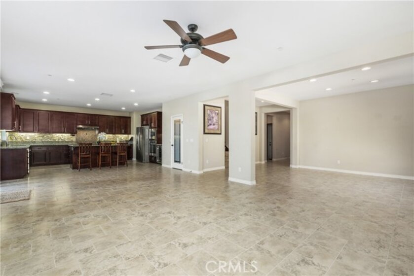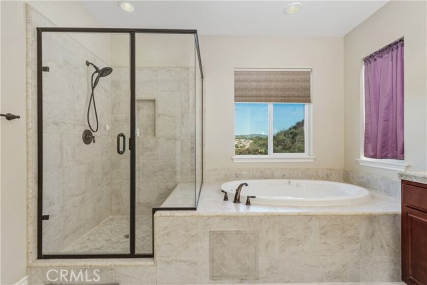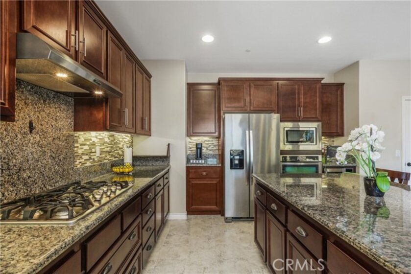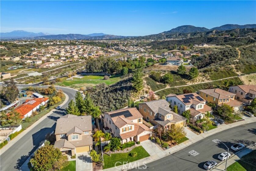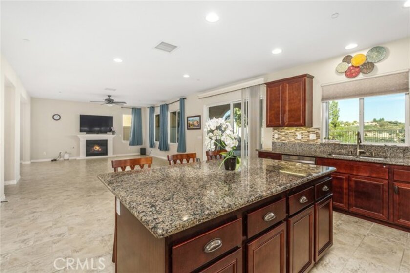 Beautiful and meticulously maintained home in the desirable Redhawk area of Temecula with breathtaking mountain views and frequent hot air balloon sightings from the backyard. Located in a quiet neighborhood of newer Hemingway homes, this property sits on a premium lot offering privacy with no neighbors in front and endless views behind. A covered porch entry welcomes you into a spacious and open home with 10 ft ceilings. The main floor features a bedroom with a full bathroom, ideal for guests or in laws. Entertaining is effortless in the large open kitchen with an oversized granite island, Espresso wood cabinetry, stainless steel appliances, wine refrigerator and a glass walk in pantry. There is an additional eating area in the kitchen that opens to the great room with a gas fireplace, sliding doors to the patio and also a separate dining room. Enjoy football games and movie nights in the bonus theater room featuring tiered flooring, soundproofed walls, and rear speakers. Upstairs offers four generously sized bedrooms, a laundry room with a deep sink and a large built-in tech center. The open and bright primary suite features dual closets, a private second floor deck with a retractable awning makes it perfect for morning coffee or sunset views. The spa like primary bath includes a large walk-in shower, jetted tub, and vanity seating area. The bonus is an oversized bedroom with a walk-in closet or may be used as a game room, craft room or home gym. The backyard is designed for entertaining with upgraded stone hardscaping, an Islands with a built in Weber gas barbecue, a gas fire pit with blue glass, circular seating, planters and a covered patio. Additional features include owned solar system, tankless water heater, a Halo whole house water treatment system, rain gutters, enhanced drainage, drip irrigation, and 2 storage sheds. The garage offers epoxy coated floors, a Level 2 EV charger, and overhead storage. This exceptional home combines privacy, comfort and resort style living an is in the award-winning Temecula School District including highly-sought after Great Oak High School! Located near the golf course, parks, shopping, Pechanga Resort Casino, wineries, low HOA, and easy freeway access so hurry to see this beauty!