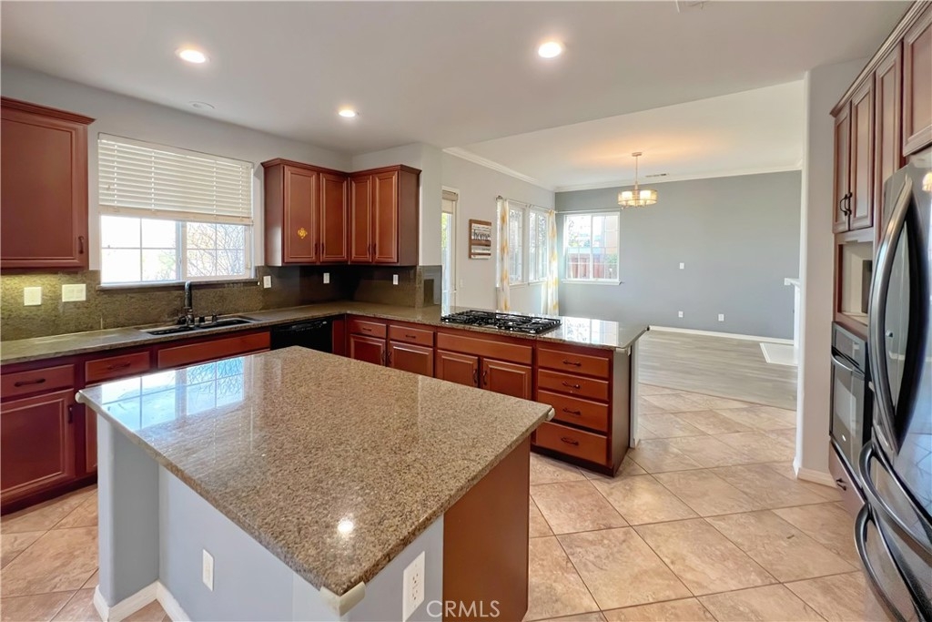 This elegant two-story home features 4 bedrooms, 4 baths, and 3,393 sq ft of living space. A grand entry with vaulted ceilings leads to a spacious formal living and dining area. The open-concept kitchen flows into the family room with a cozy fireplace and large windows showcasing scenic hillside views. Upstairs includes a luxurious master retreat with soaking tub and walk-in closet. The backyard offers a tranquil waterfall feature and peaceful ambiance—perfect for relaxing or entertaining.