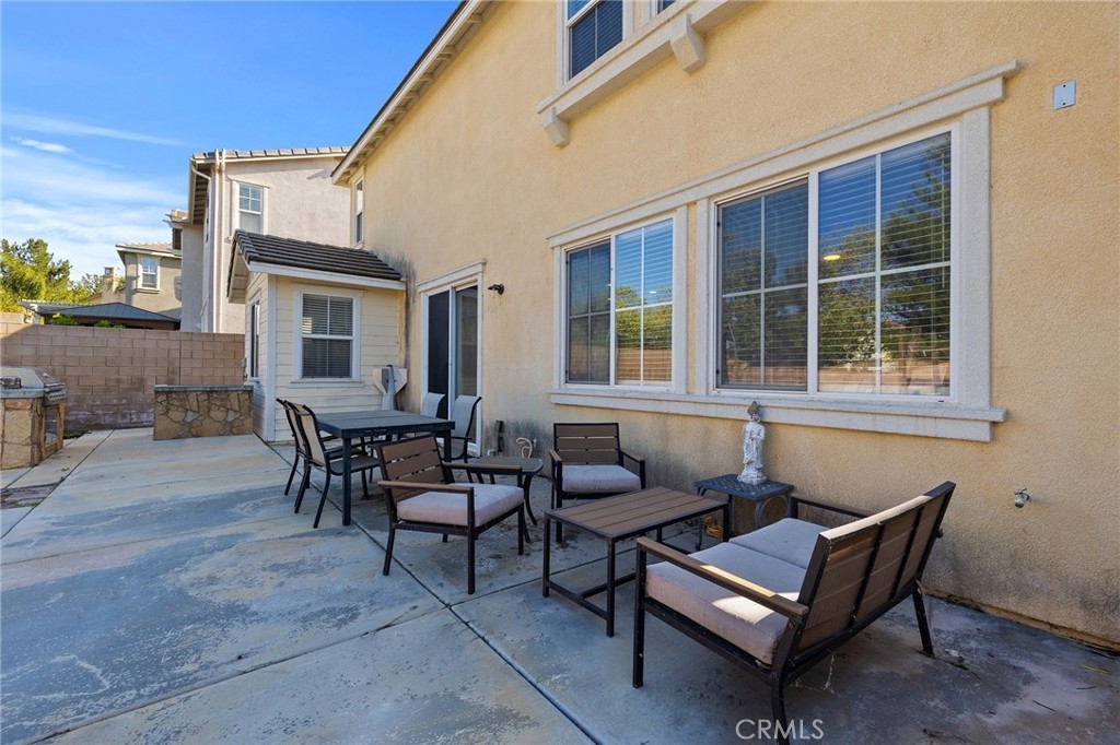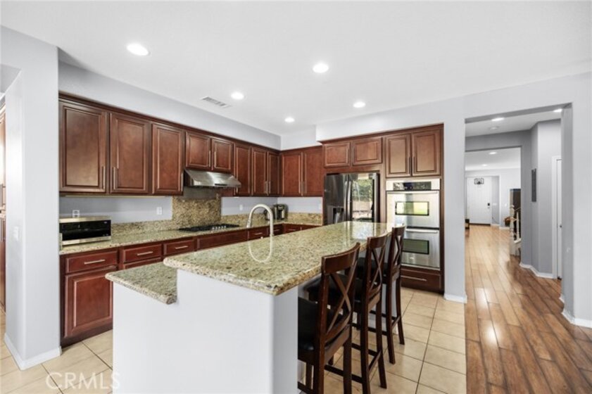 Beautifully upgraded 3-bedroom home with a downstairs flex room offering the potential for a 4th bedroom, office, or optional prep kitchen. Ideally located on a quiet cul-de-sac in the highly sought-after Wolf Creek community, just walking distance to top-rated Great Oak High School. From the moment you arrive, the charming front porch sets the tone. Inside, you’ll find a spacious formal living and dining area leading into an oversized family room with a cozy fireplace—perfectly connected to the show-stopping kitchen. Designed for both everyday living and entertaining, the kitchen features granite countertops, a stainless steel double oven, a custom stainless steel oven hood, and an abundance of cabinetry, creating a true centerpiece of the home. Just off the kitchen, the versatile flex room offers endless possibilities to fit your lifestyle. Upstairs, a built-in study/reading nook provides the perfect quiet workspace. The spacious primary suite offers dual closets and a well-appointed bathroom with dual sinks, a soaking tub, and a separate shower. Two additional bedrooms, a full bathroom with dual sinks, and a convenient upstairs laundry room with sink and ample cabinetry complete the second level. The backyard is built for entertaining, featuring a hot tub, firepit, BBQ island, and expansive concrete patio, with plenty of room to add a pool. Enjoy added privacy with durable block wall fencing—no maintenance, no fading, and built to last. Additional highlights include a 3-car tandem garage and a desirable cul-de-sac location.