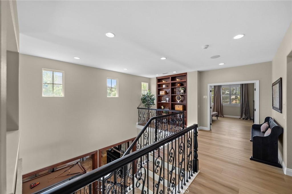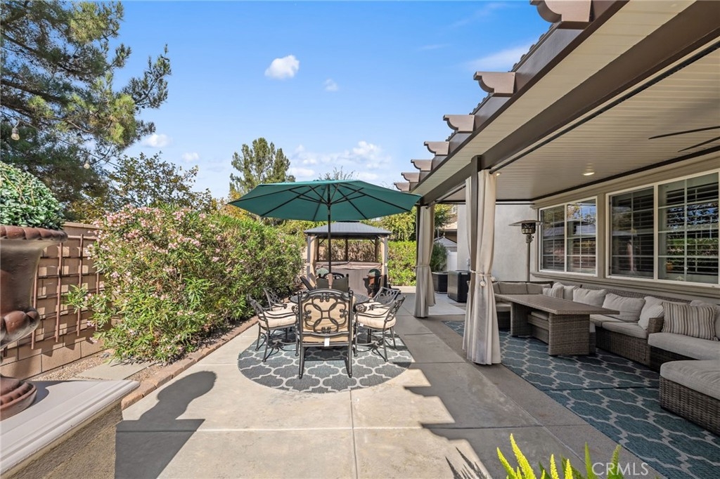 Welcome to 46331 Hunter Trail, a beautifully maintained former model home in the highly sought after Wolf Creek community of South Temecula. This spacious 5-bedroom, 3-bath, 3,506 sq ft residence offers refined finishes with sophisticated comfort. Step inside to a grand entry featuring vaulted ceilings, tumbled travertine tile flooring throughout the main living areas, and stylish beams setting a tone of timeless elegance. This open-concept layout includes a formal living room and formal dining room that flows right into a fantastic family room centered around a beautiful gas fireplace, surrounded by wood shutters, custom built-ins, and surround-sound wiring. This gourmet kitchen features granite countertops and backsplash, stainless steel appliances including double oven and gas cooktop, an oversized center island with bar seating, and abundant cabinet space—perfect for gatherings and everyday living. Upstairs, enjoy wood-look luxury vinyl plank (LVP) flooring throughout, leading to a spacious primary suite with his and hers walk-in closets, dual vanities, a jetted tub, and a separate shower. Four additional bedrooms provide ample space for family, guests, including a home office. Step outside to your private backyard retreat featuring artificial turf, mature landscaping, and a covered above-ground spa—the perfect spot to relax and enjoy Temecula’s beautiful evenings. The covered patio provides additional space for outdoor dining and entertaining, all with low-maintenance appeal. Additional highlights include a downstairs bedroom and full bath, custom wrought-iron staircase, and a three-car garage. Located within the award-winning Temecula school district, this home is just minutes from Old Town Temecula, Pechanga Resort, local parks, several golf courses, and Temecula Wine Country. This immaculate former model home offers the perfect balance of comfort, style, and everyday livability in one of Temecula’s premier neighborhoods. All furniture is negotiable in the offer.