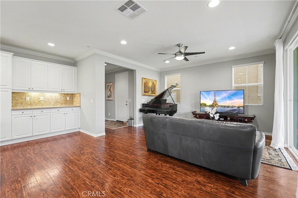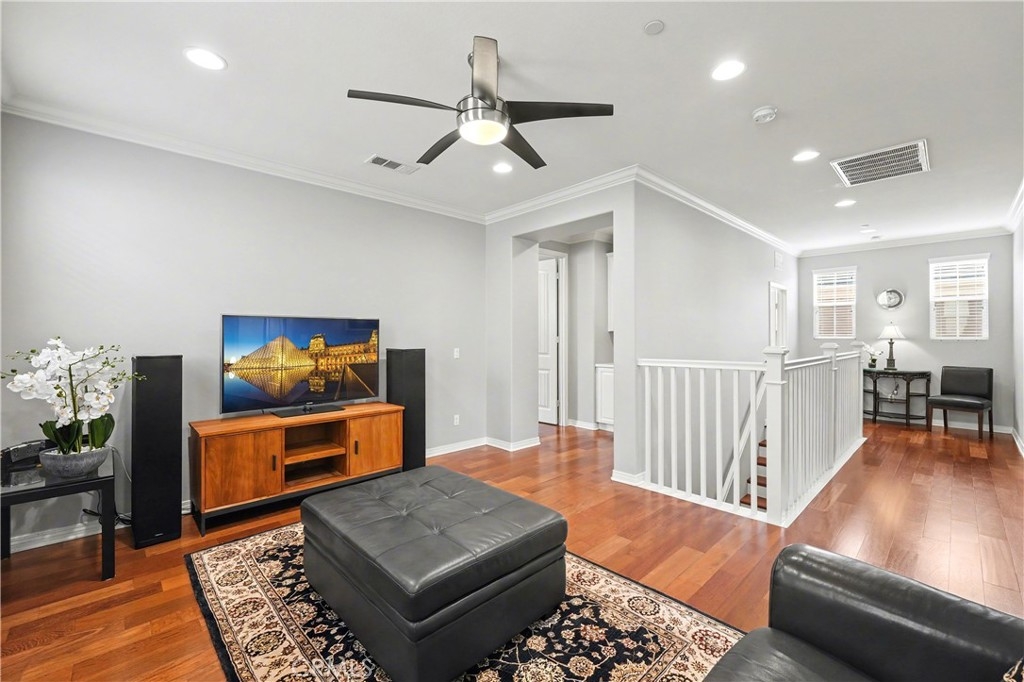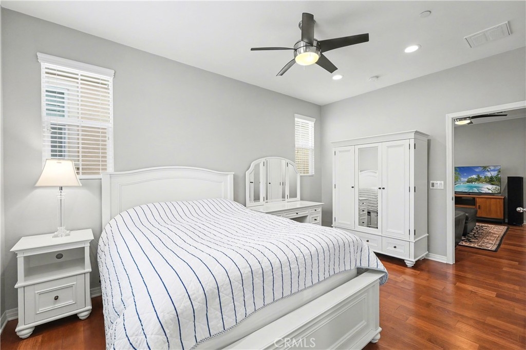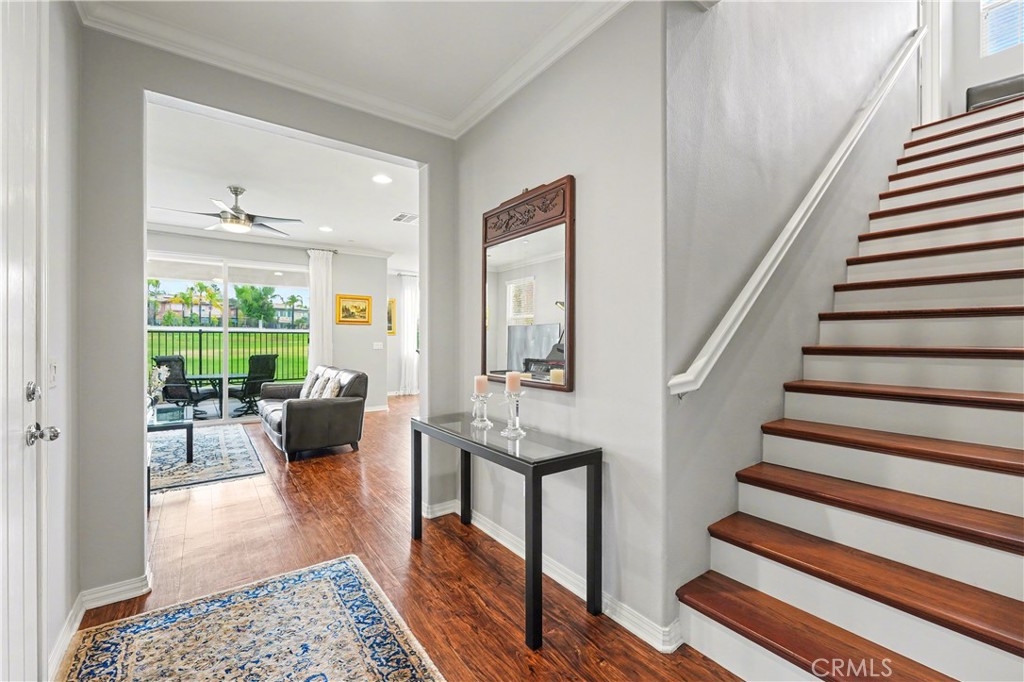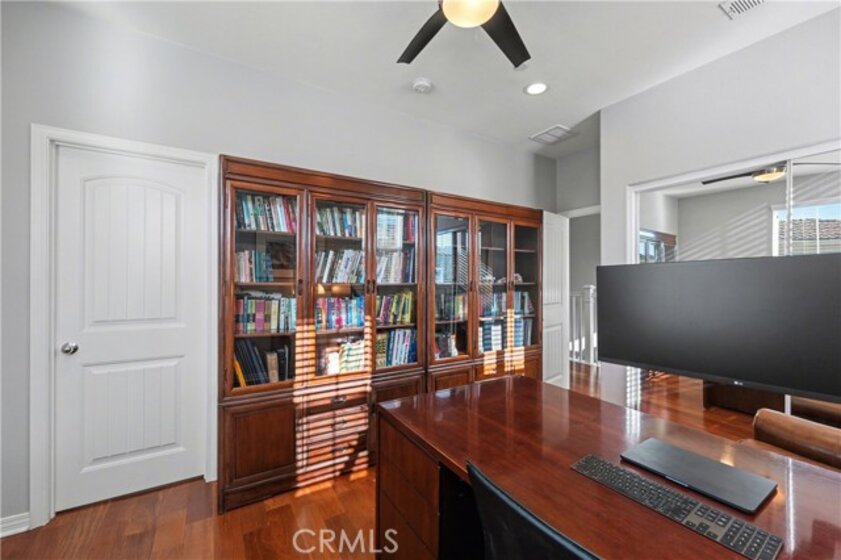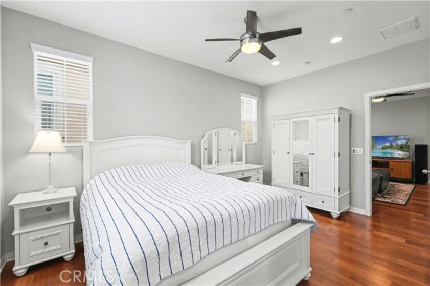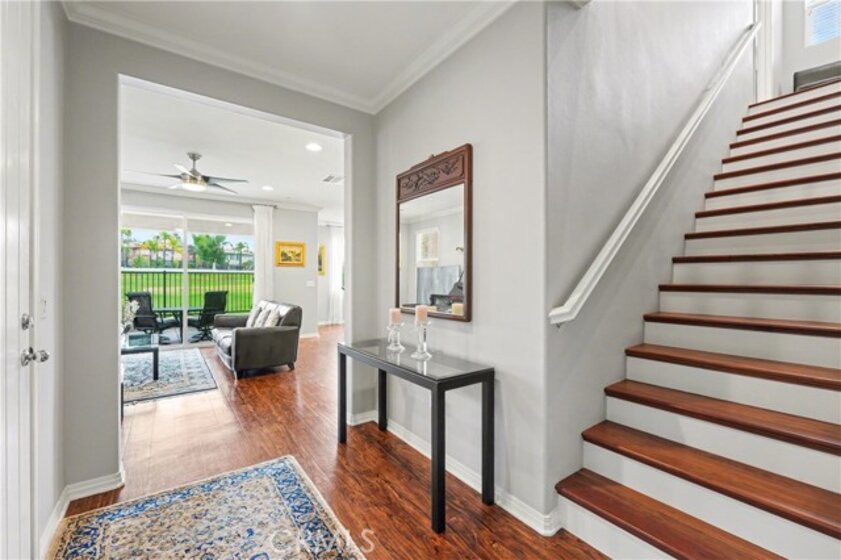 Welcome Home to unobstructed Redhawk Golf Course Views! Nestled with its backyard directly facing the scenic 13th hole. This 2554 sqft 2 story fabulous home has 4 bedroom, 3 bathroom plus a loft. This detached home offers a lot of upgraded, from front courtyard step into open concept main living area. Entertain effortlessly as upgraded sliding glass door seamlessly connects the great room to the spacious California room over looking the fairway. The designer kitchen shines with Urban Safari Caesarstone large countertops, white cabinetry, stylish tile backsplash, stainless steel appliances. Downstairs bedroom and full bath-featuring durable LVP flooring- ideal for guests or muti-generational living. Upstairs, premium Brazilian Cherry Hardwood Floor flows throughout the second level and stairs, a rare upgrade within the community. The large primary suite is true retreat with a private covered balcony offering panoramic golf course views, and a barn door leading to upgraded in- suite bathroom featuring a walk-in shower, soaking tub, dual sink, bathroom mirrors with LED touch buttons. Two additional well-sized bedrooms share a spacious bathroom with a dual vanity, while one bedroom features a walk-in closet, offering both comfort and functionality. A versatile loft provides the perfect extra living space for family, play, or work. Additional highlights include whole house recess lights, crown molding, water softener and whole house filtration system and many more. Low property tax. Located walking distance to the award wining Great Oak High School, sports park, close to the Pechanga Casino and Redhawk Golf Course, Oldtown Temecula, shopping, dining. Easy access to the 15 Freeway. This turnkey golf course living at its finest-schedule your tour today!
